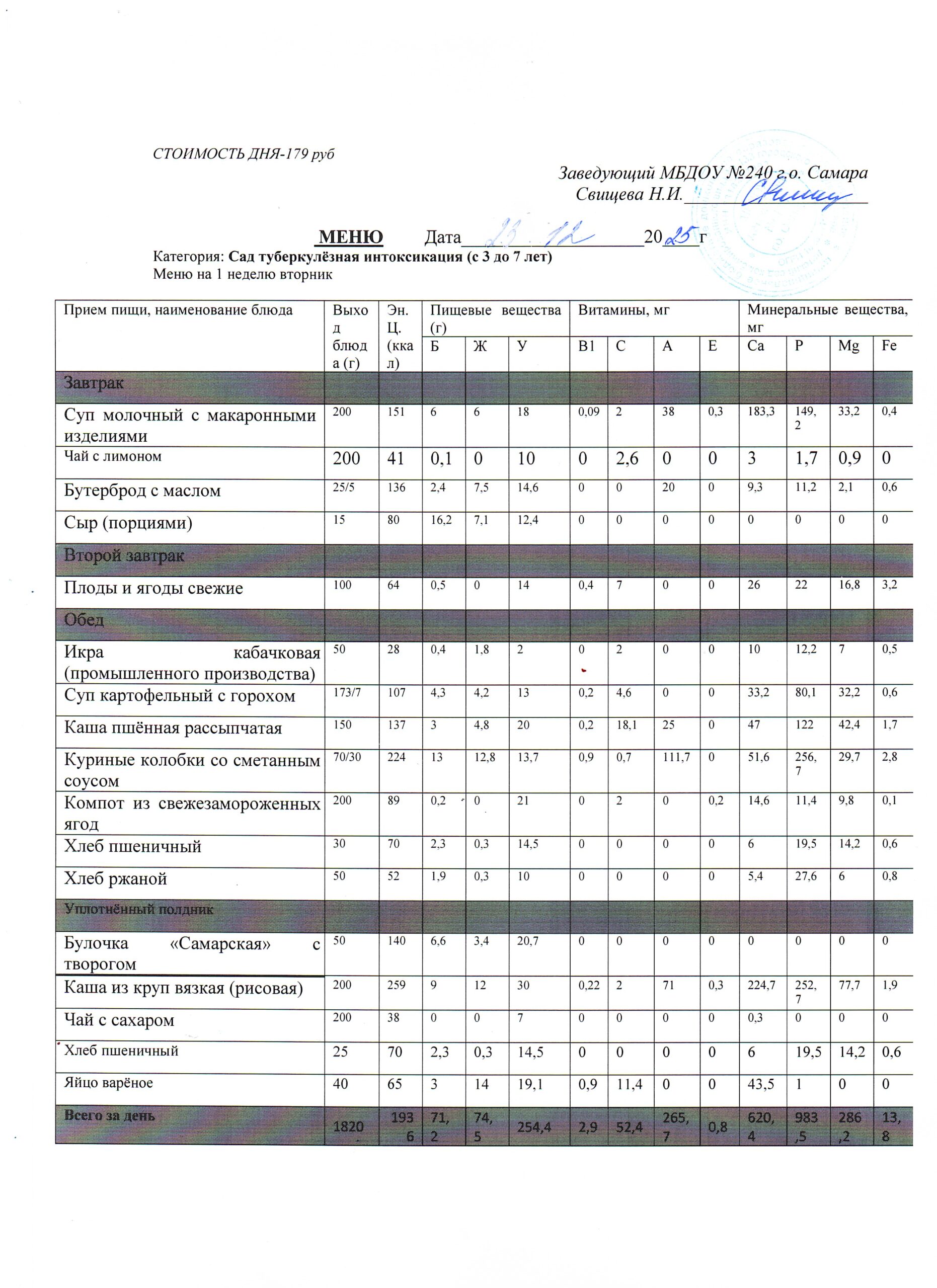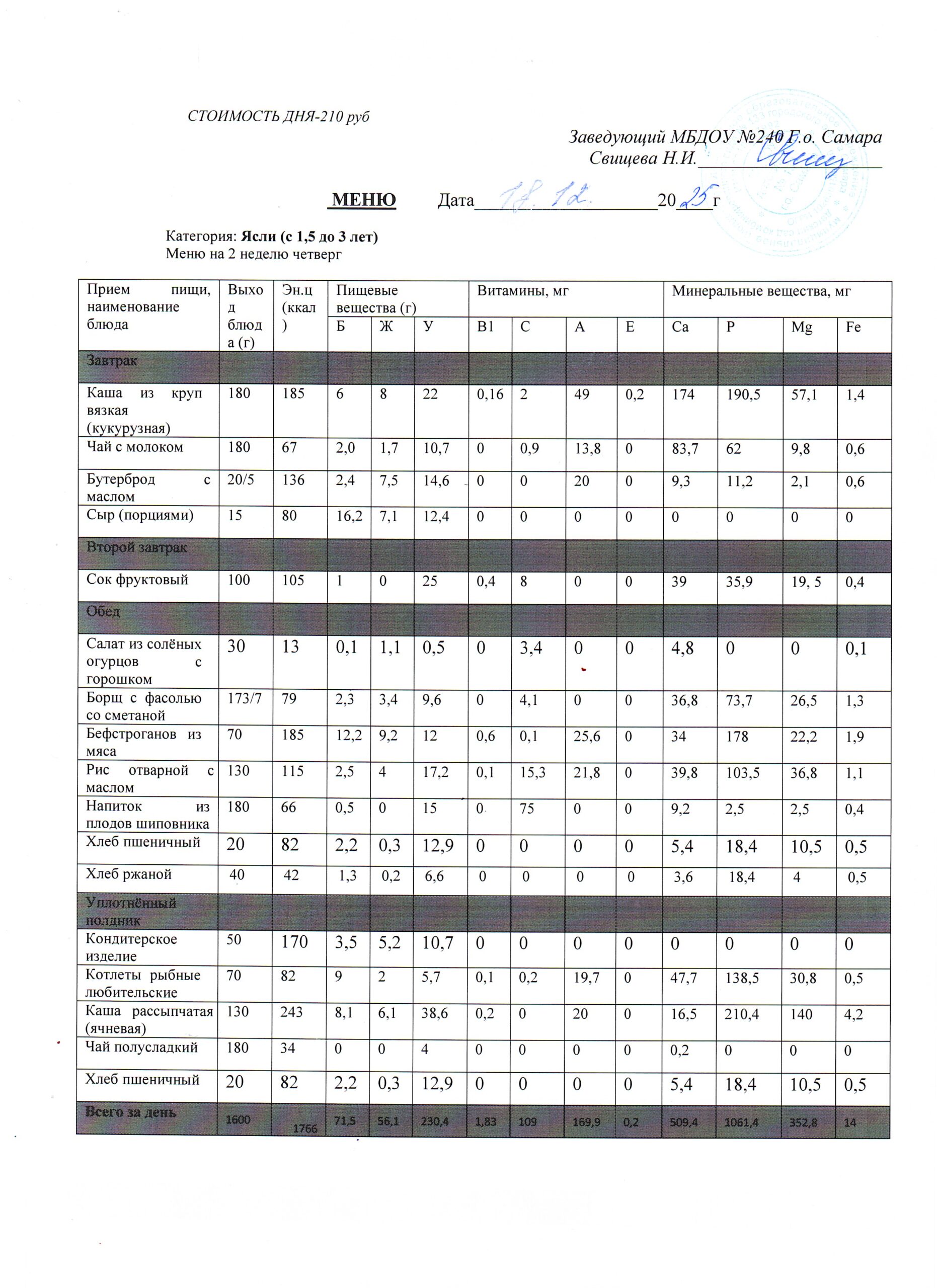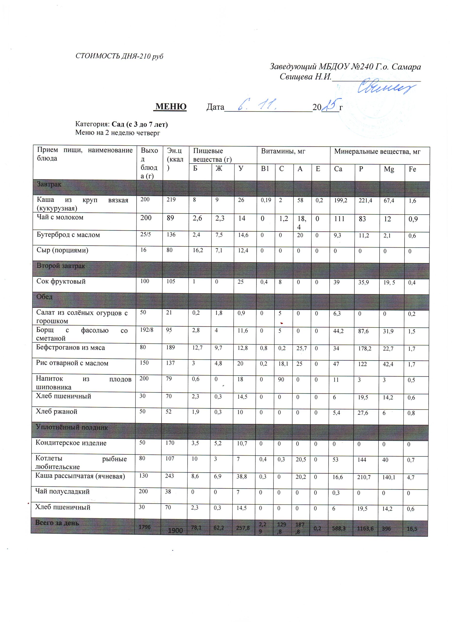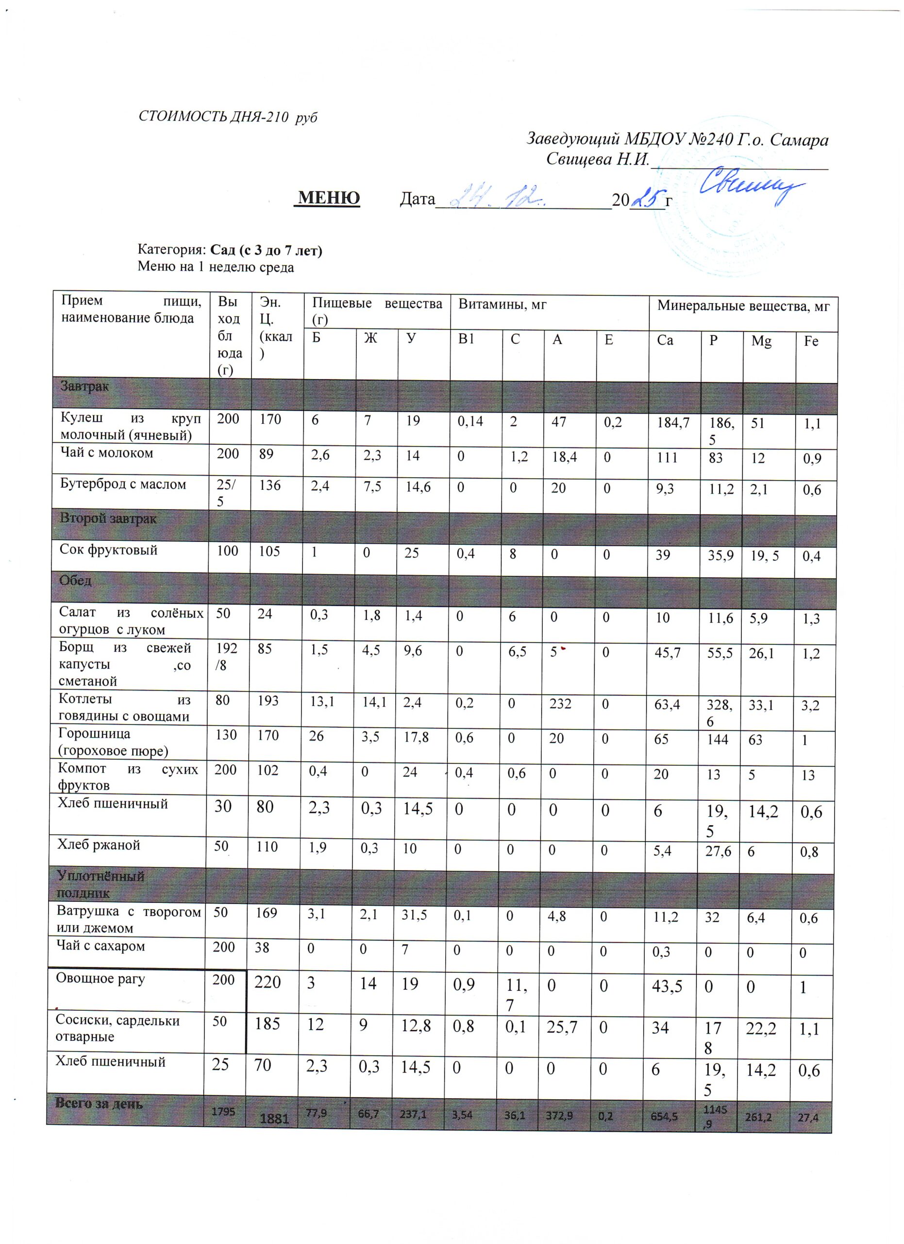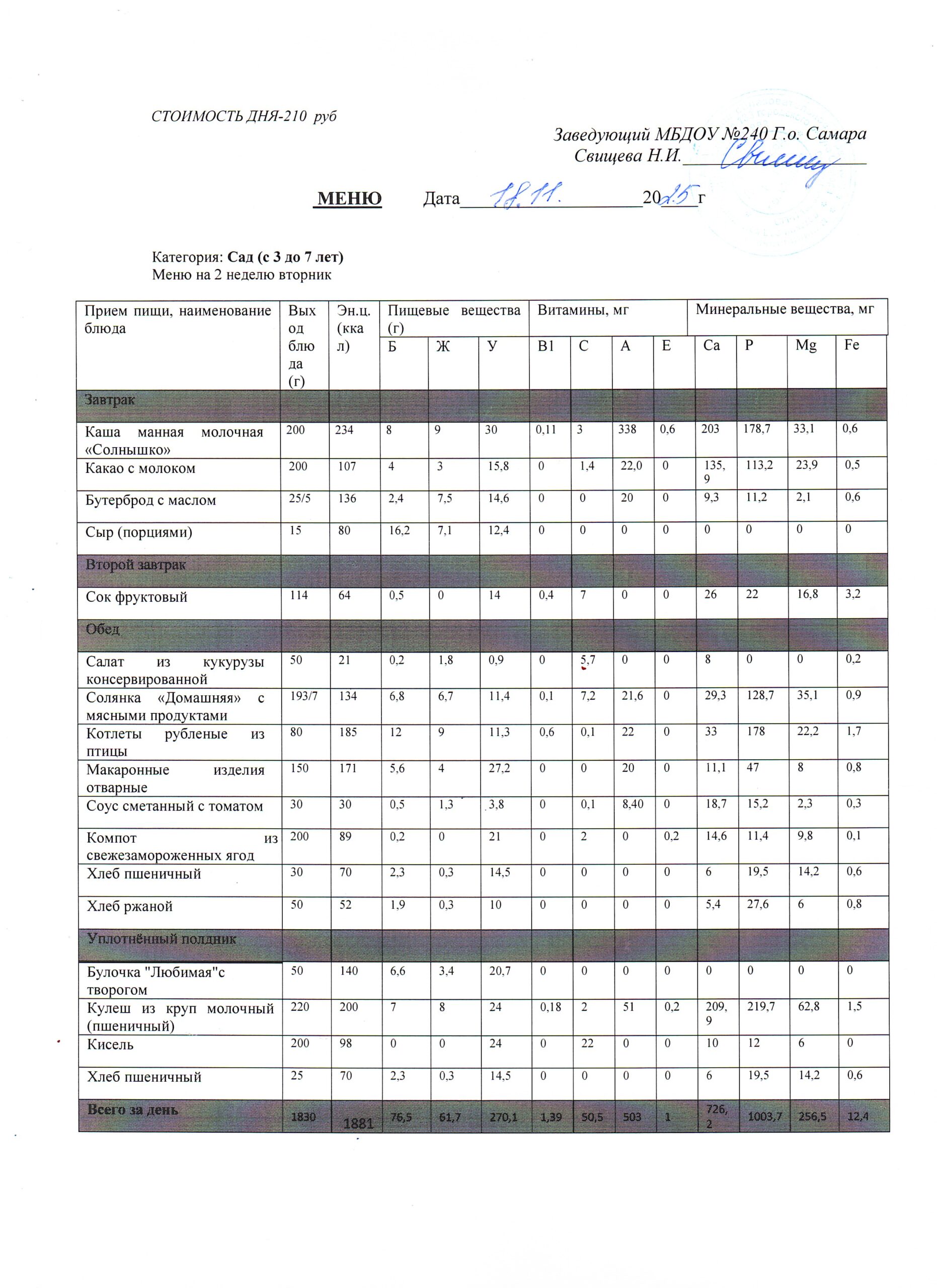 Актуальное утверждённое меню (примерное по сезонам в соответствии с возрастной категорией обучающихся)