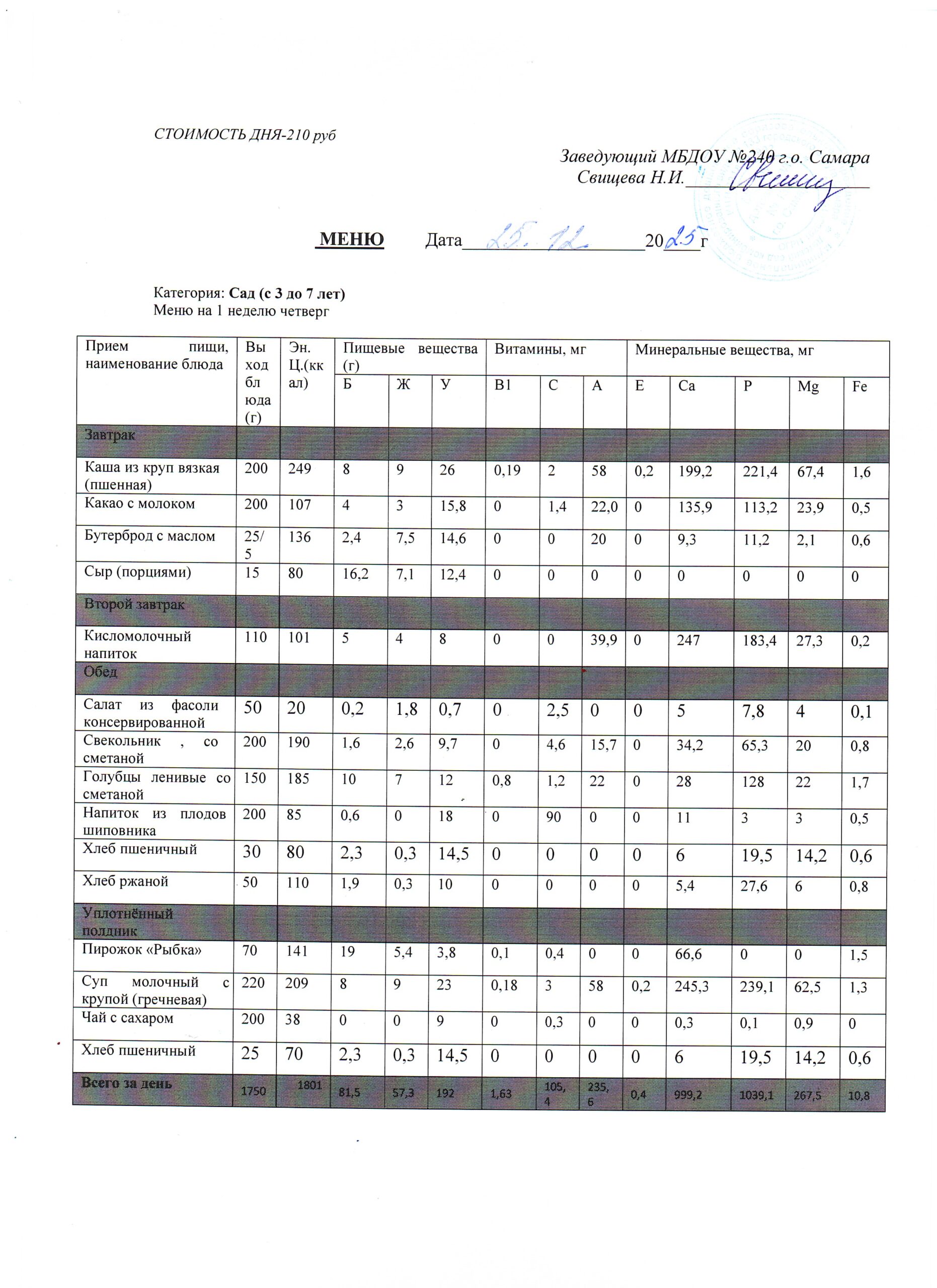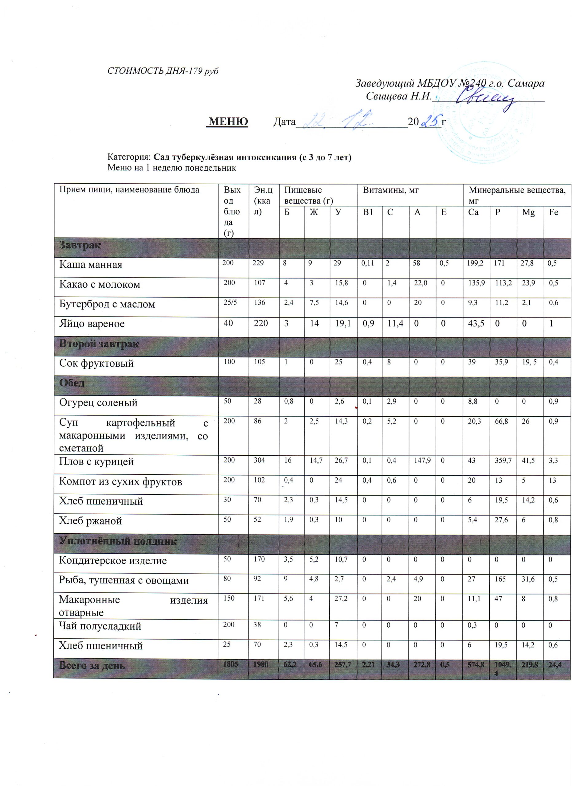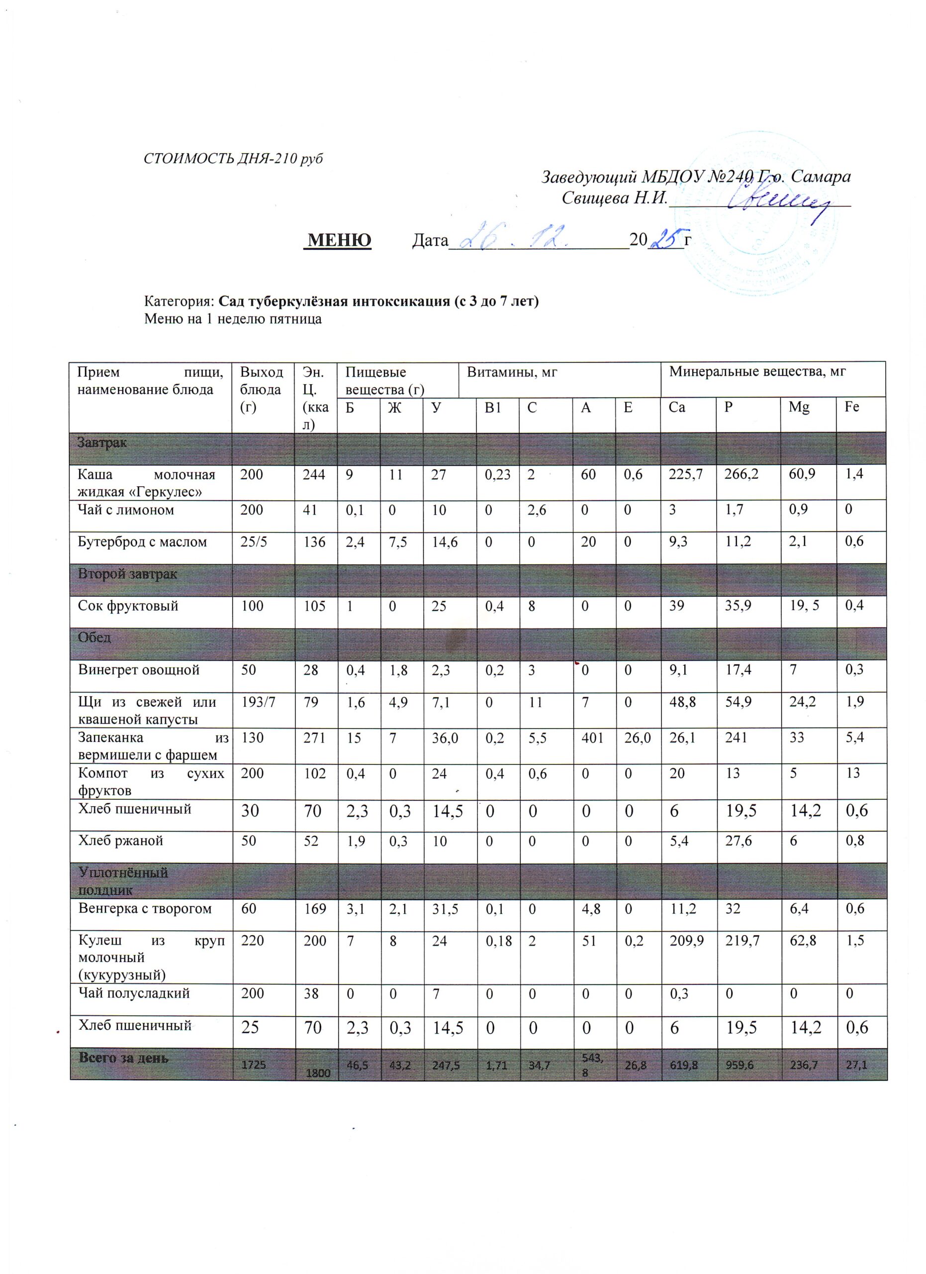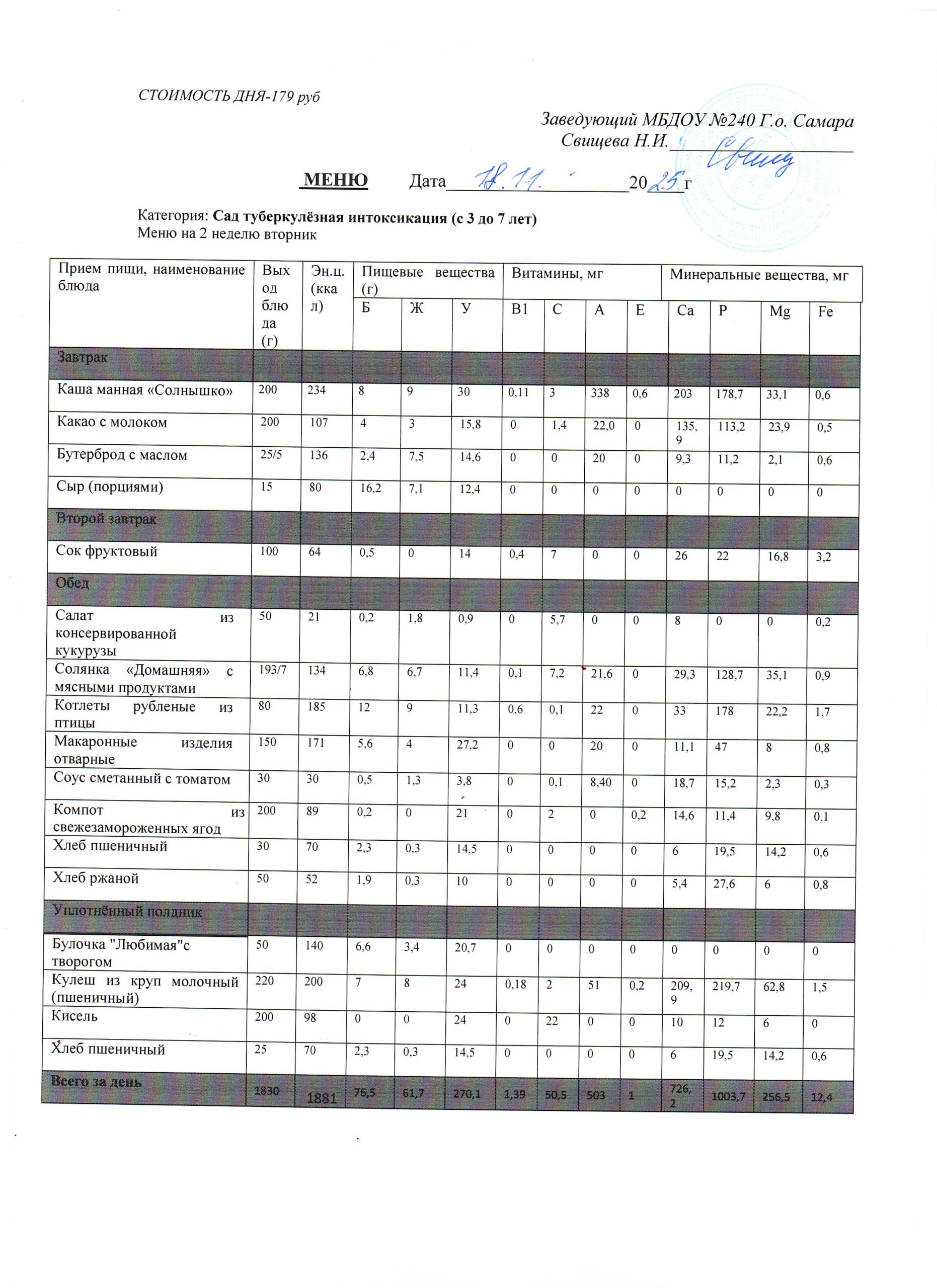 Актуальное утверждённое меню (примерное по сезонам в соответствии с возрастной категорией обучающихся)