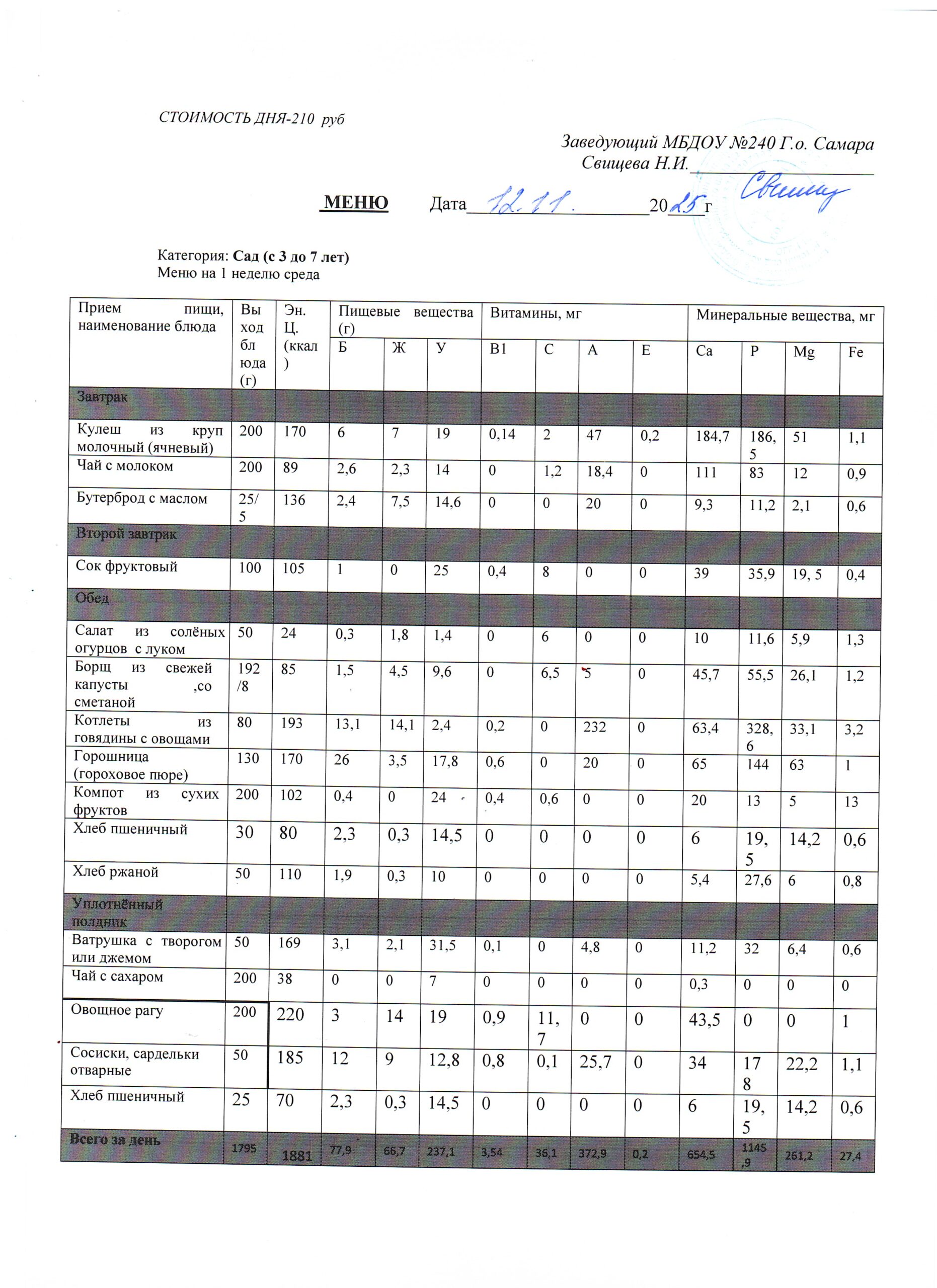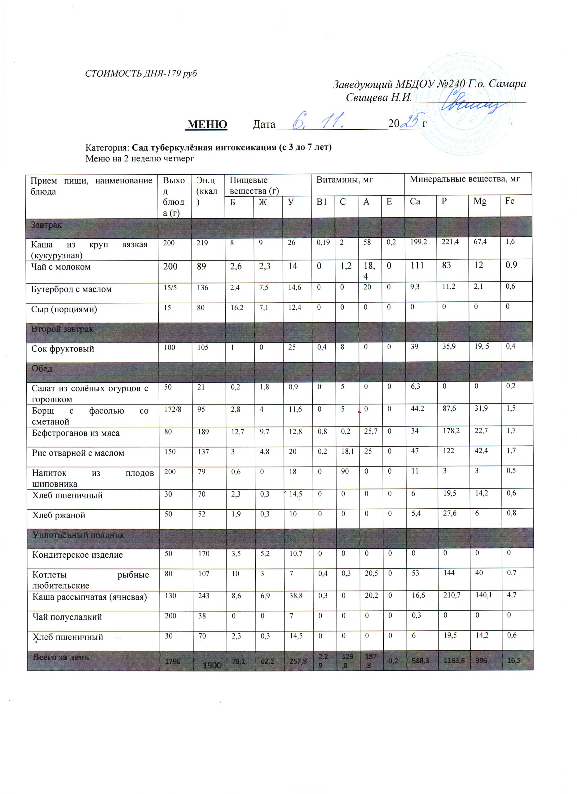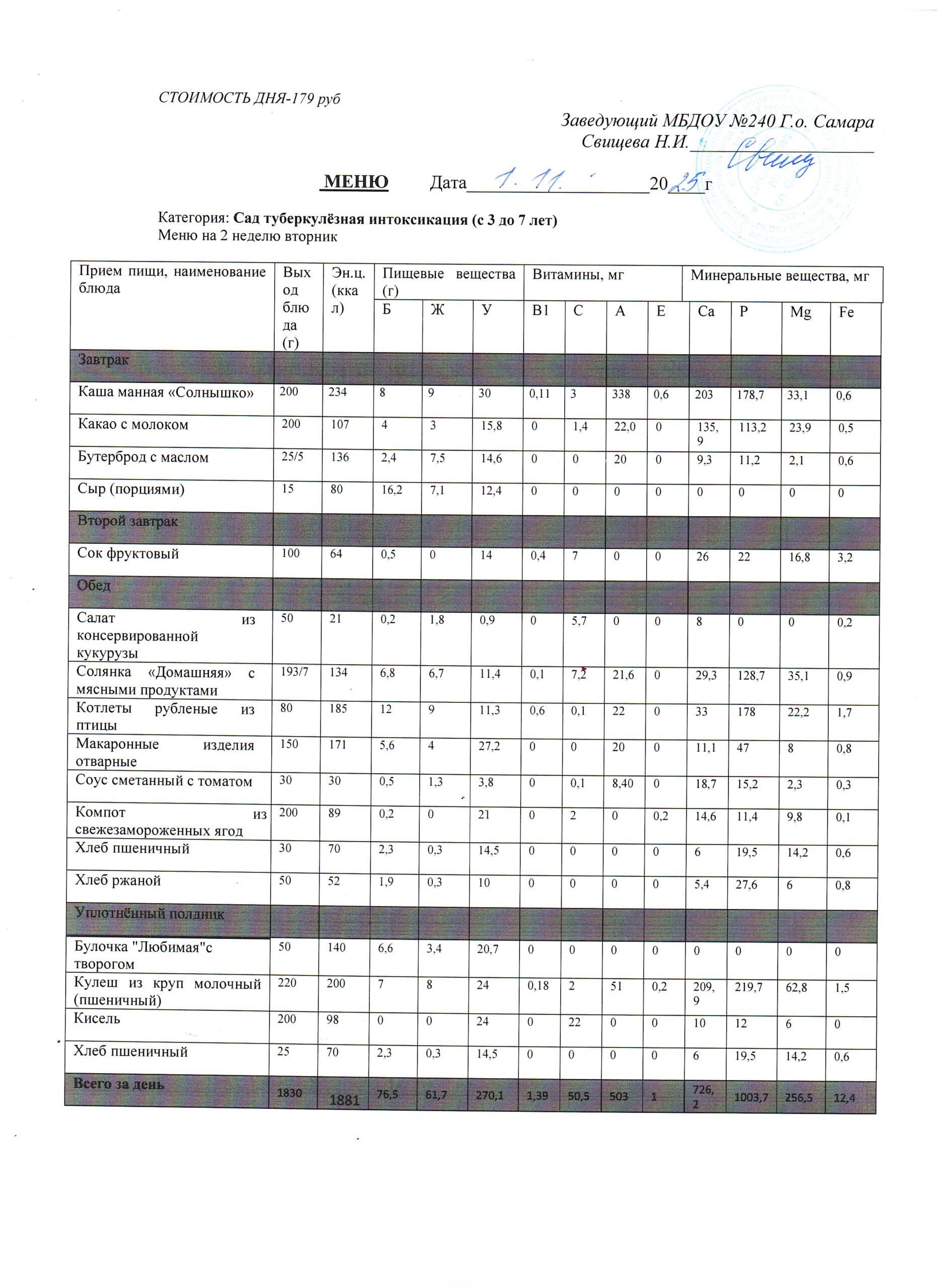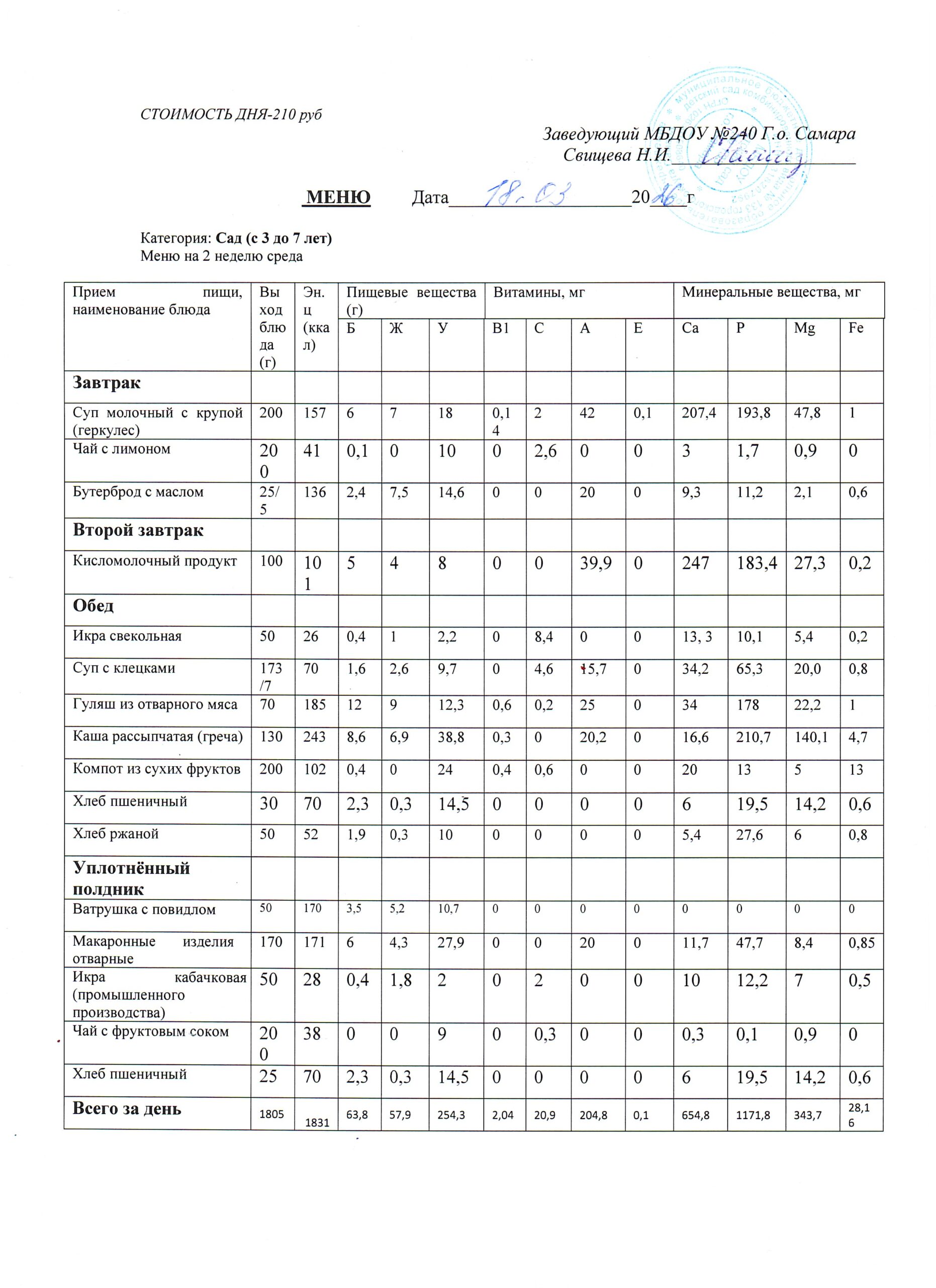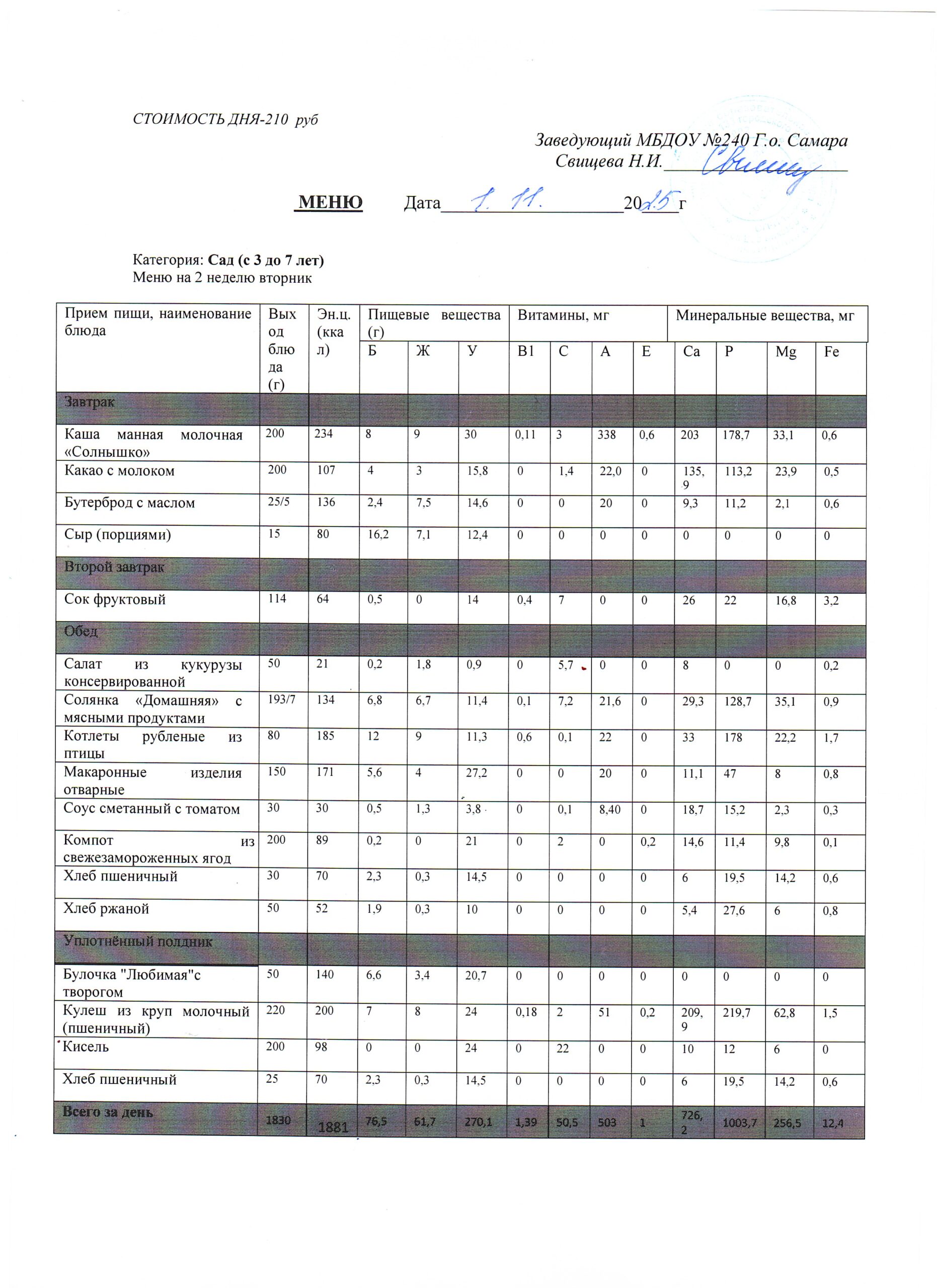 Актуальное утверждённое меню (примерное по сезонам в соответствии с возрастной категорией обучающихся)