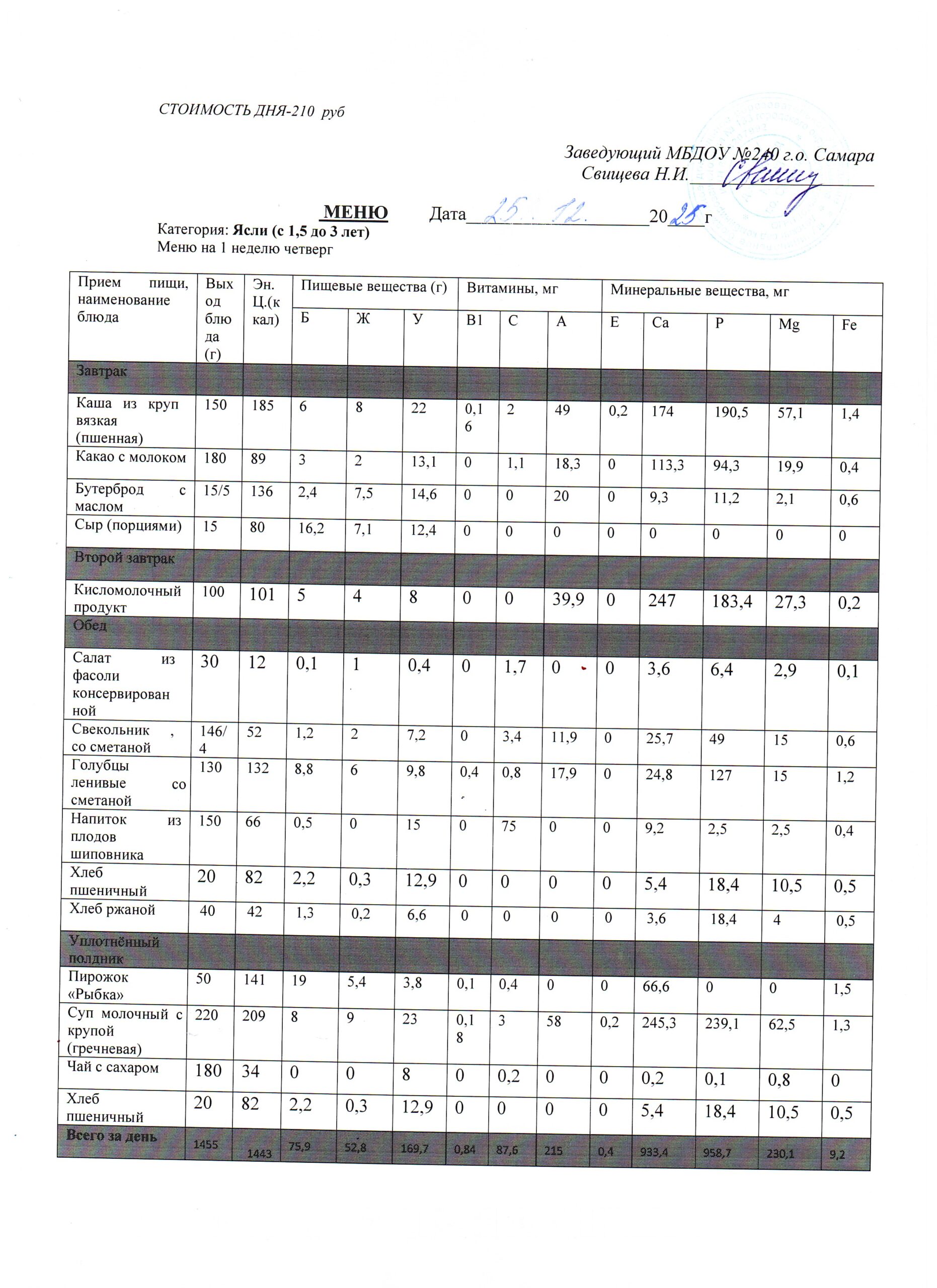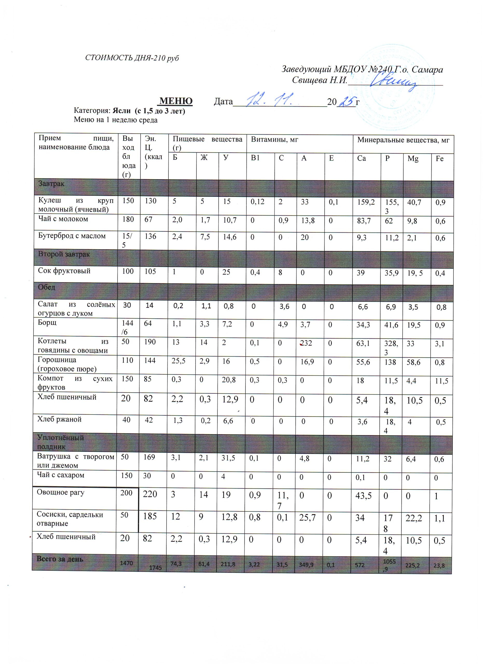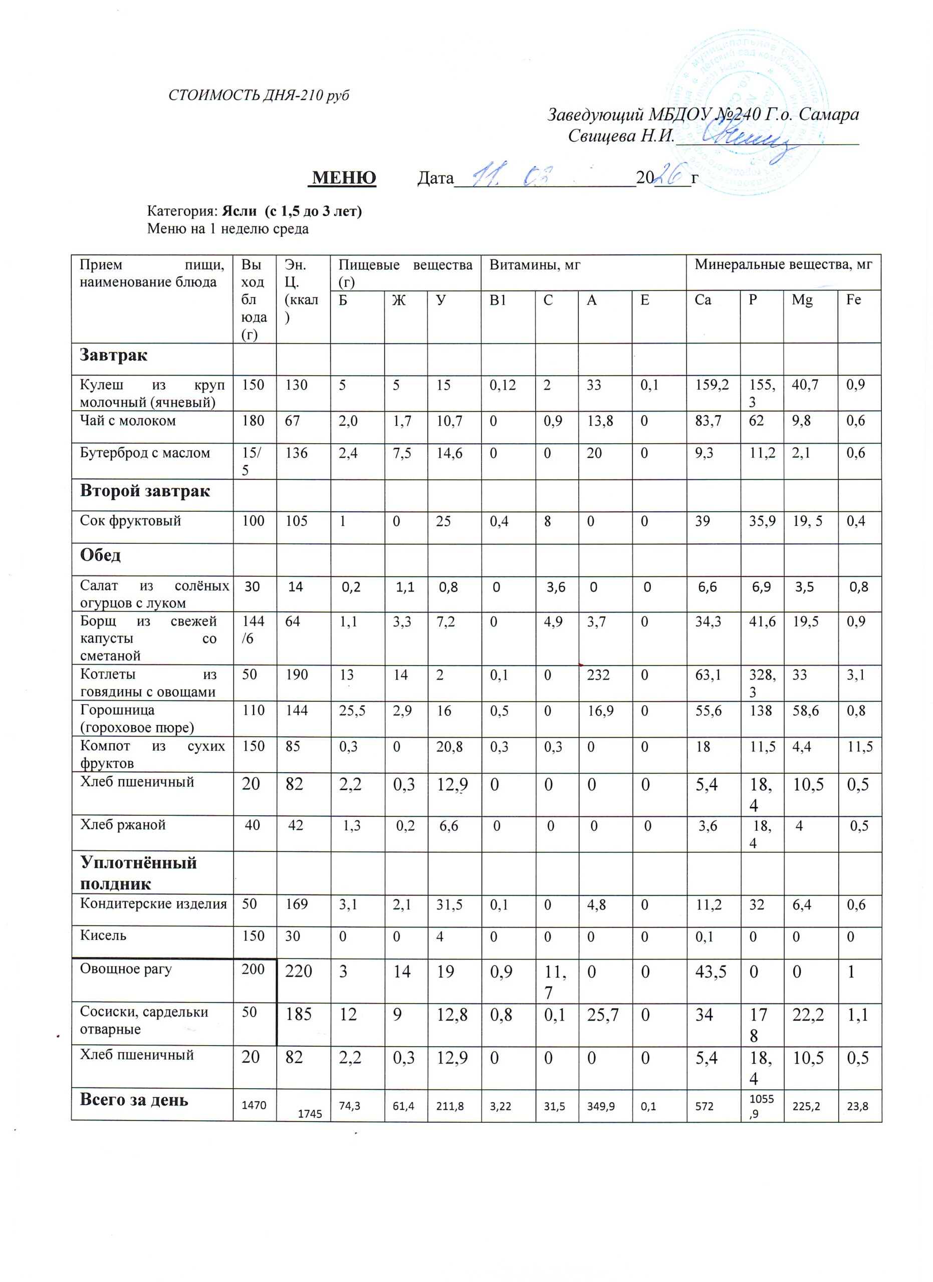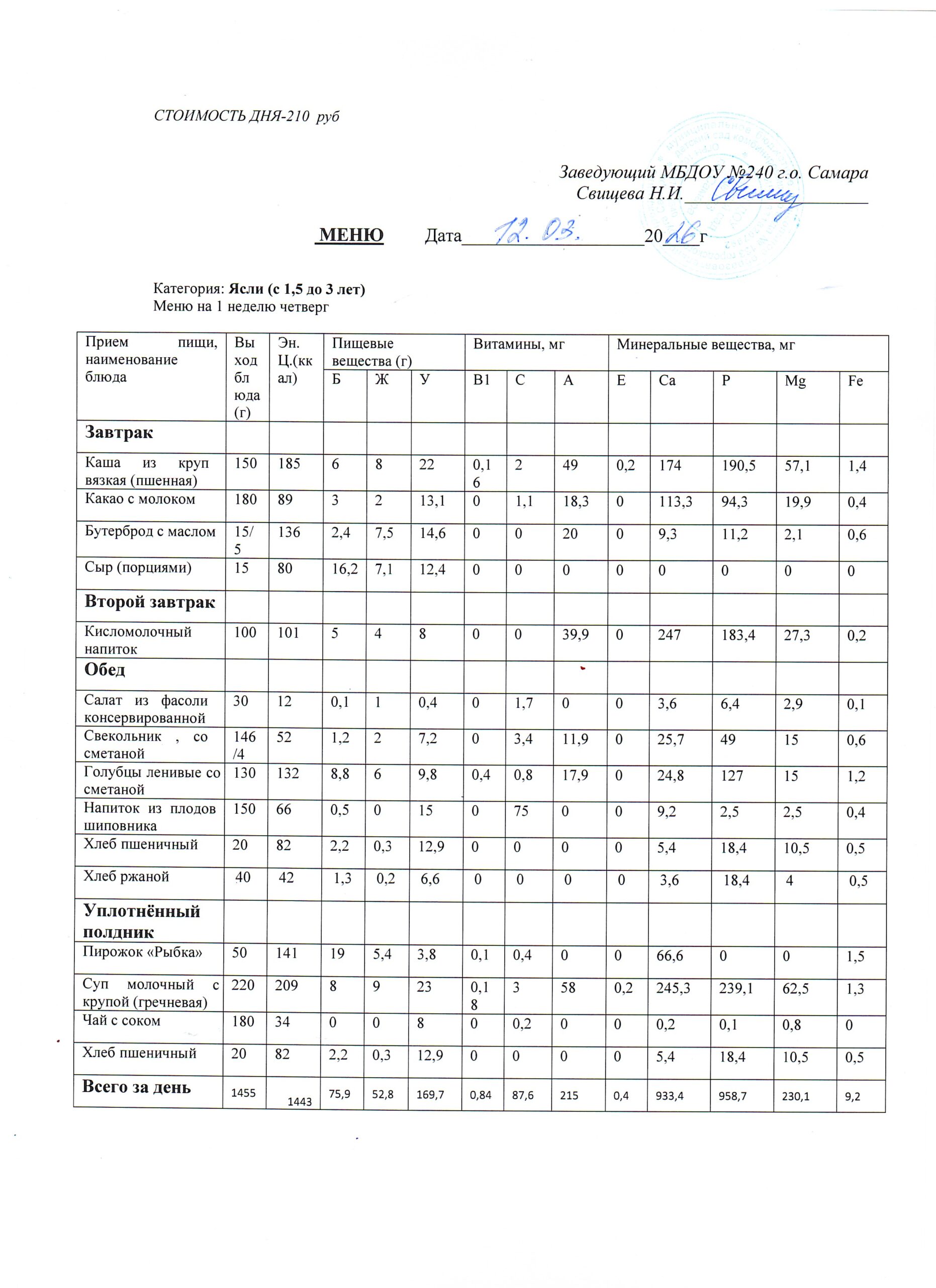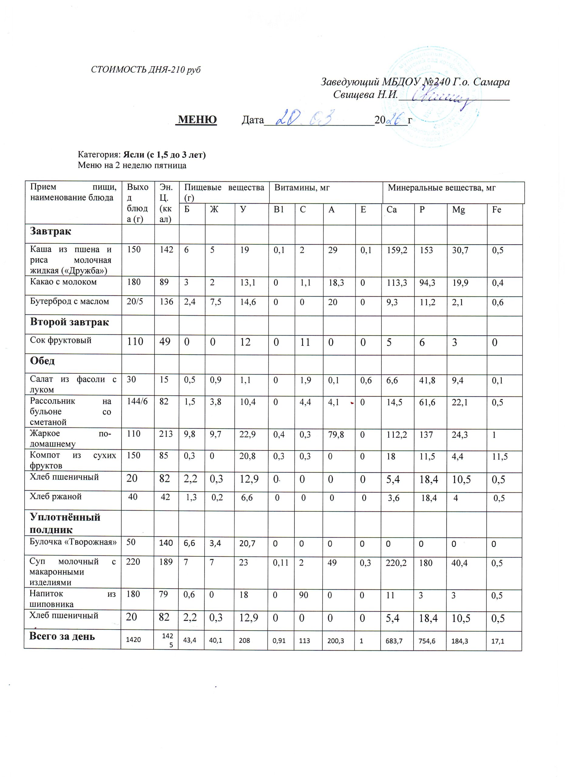 Актуальное утверждённое меню (примерное по сезонам в соответствии с возрастной категорией обучающихся)