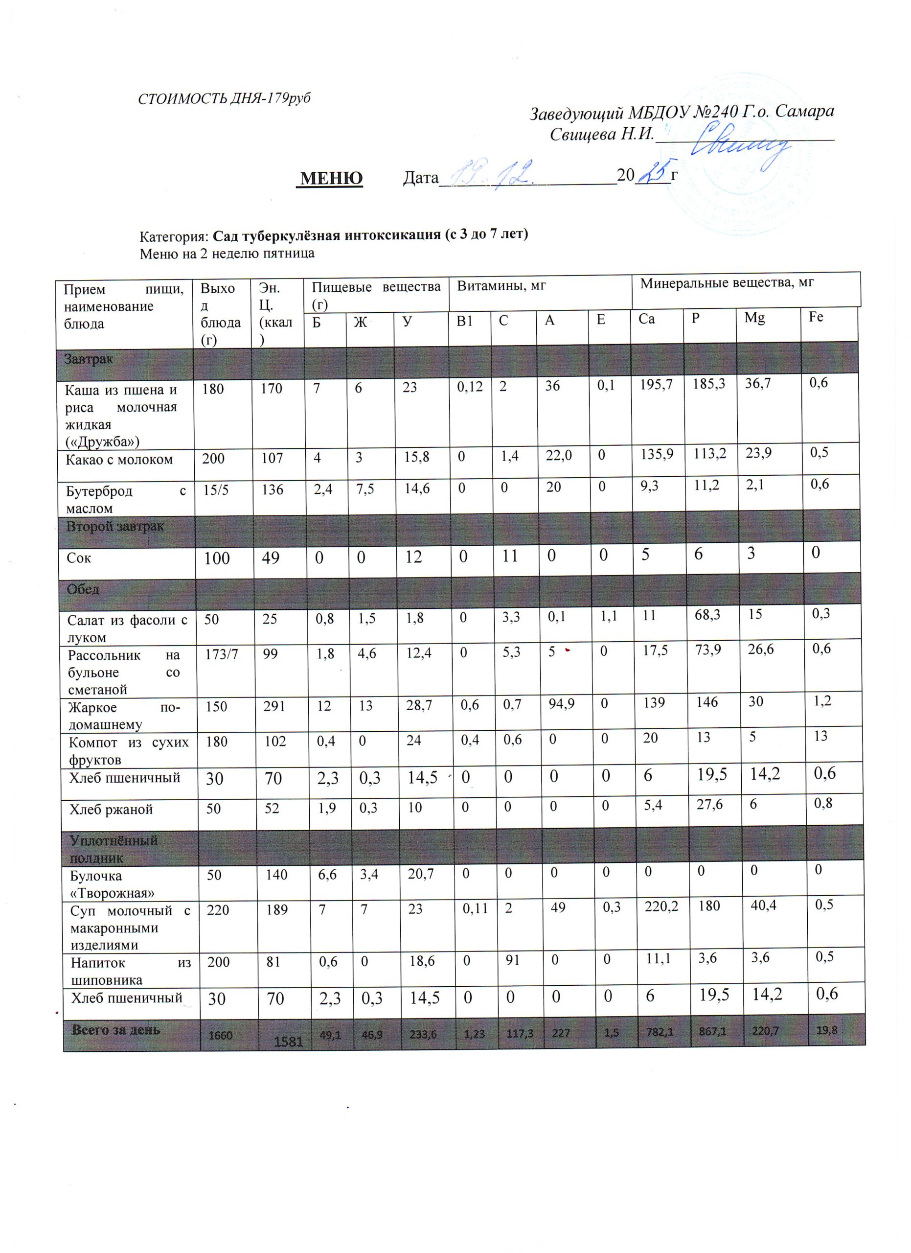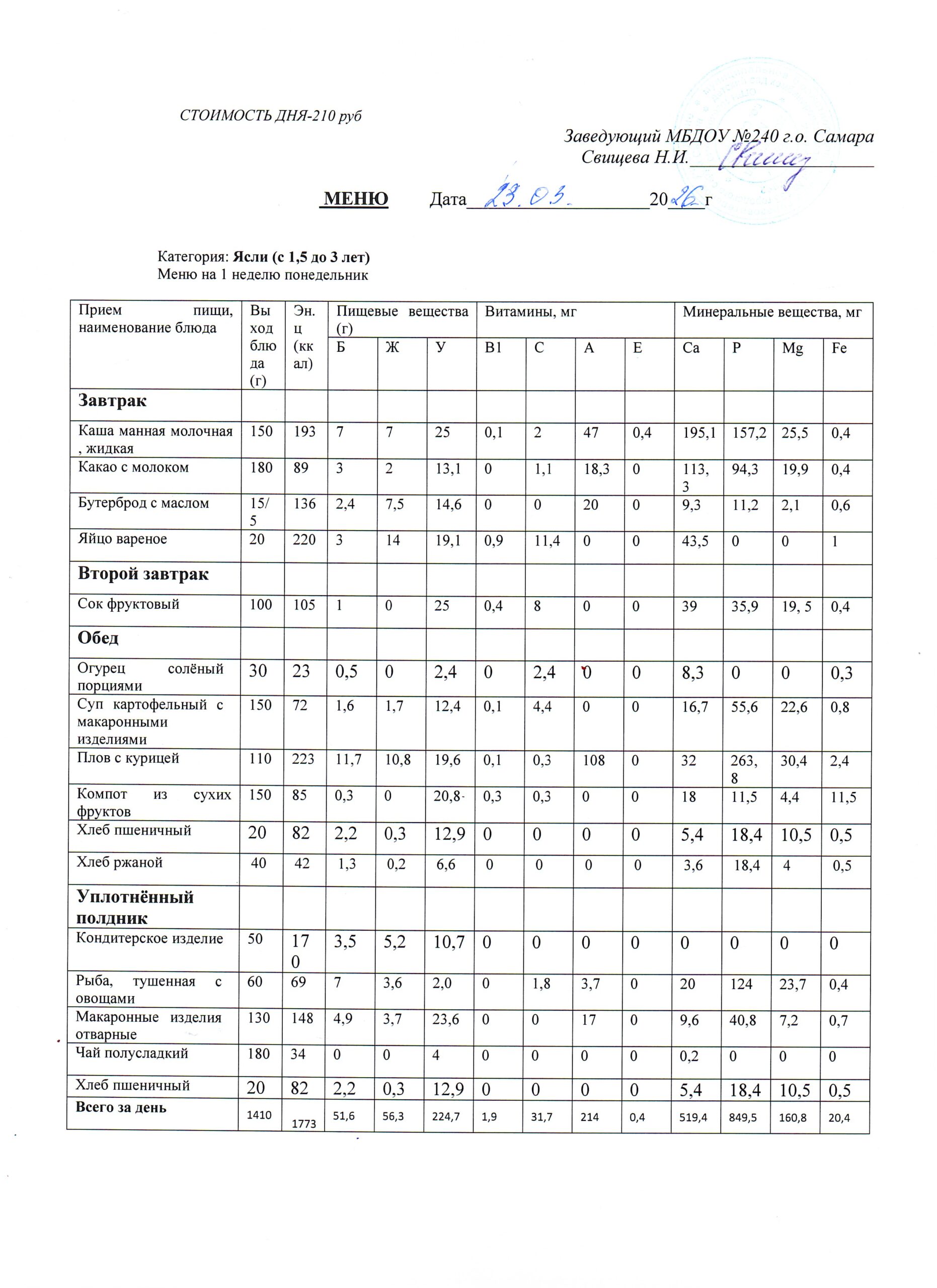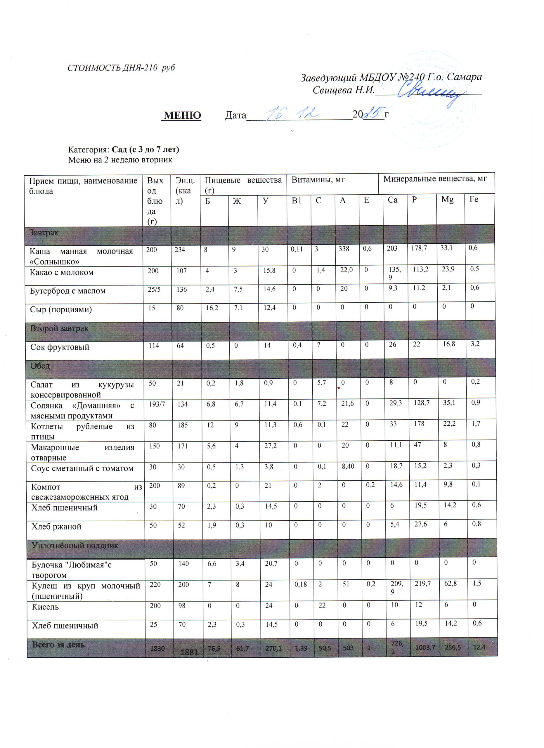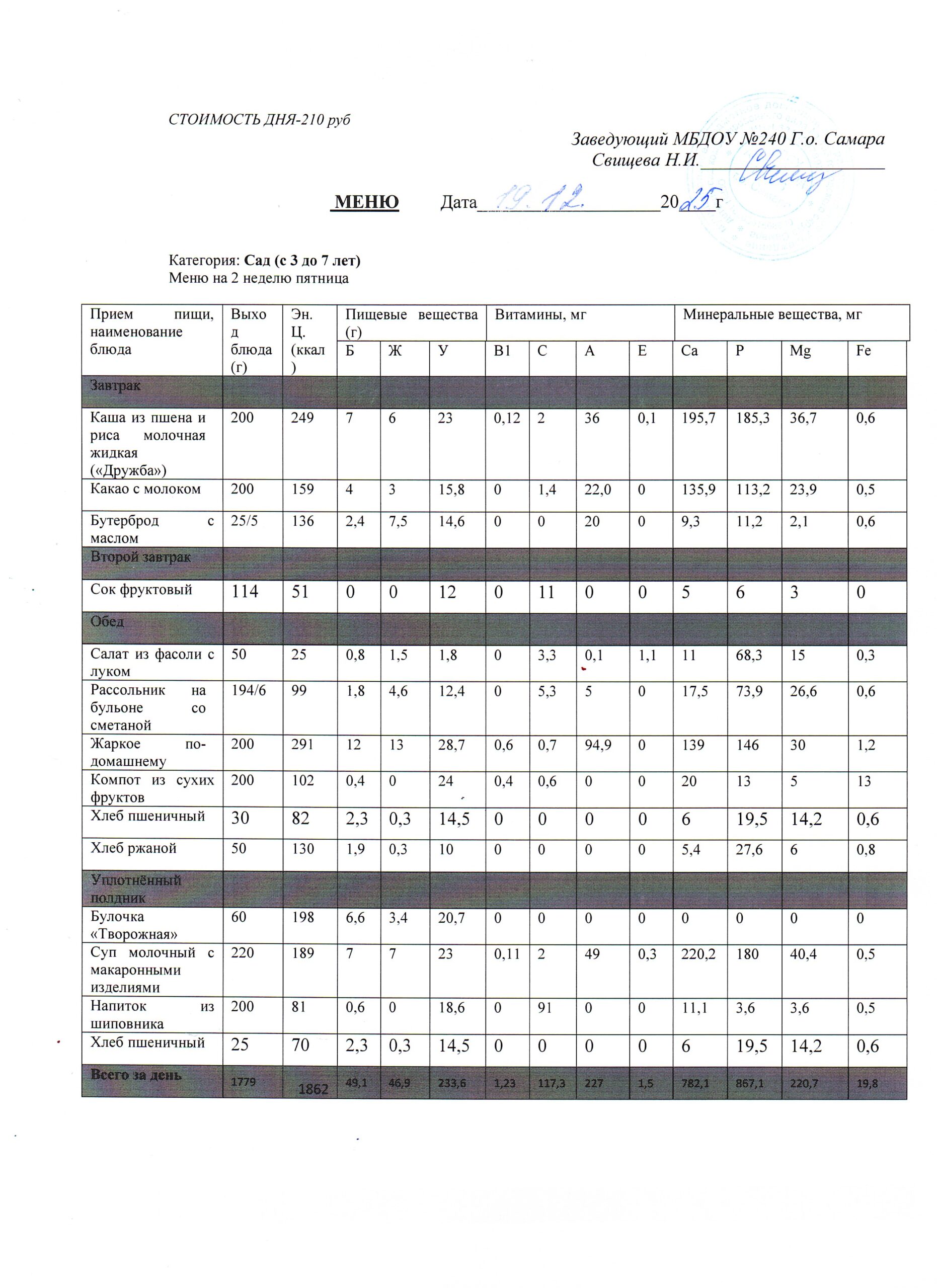 Актуальное утверждённое меню (примерное по сезонам в соответствии с возрастной категорией обучающихся)