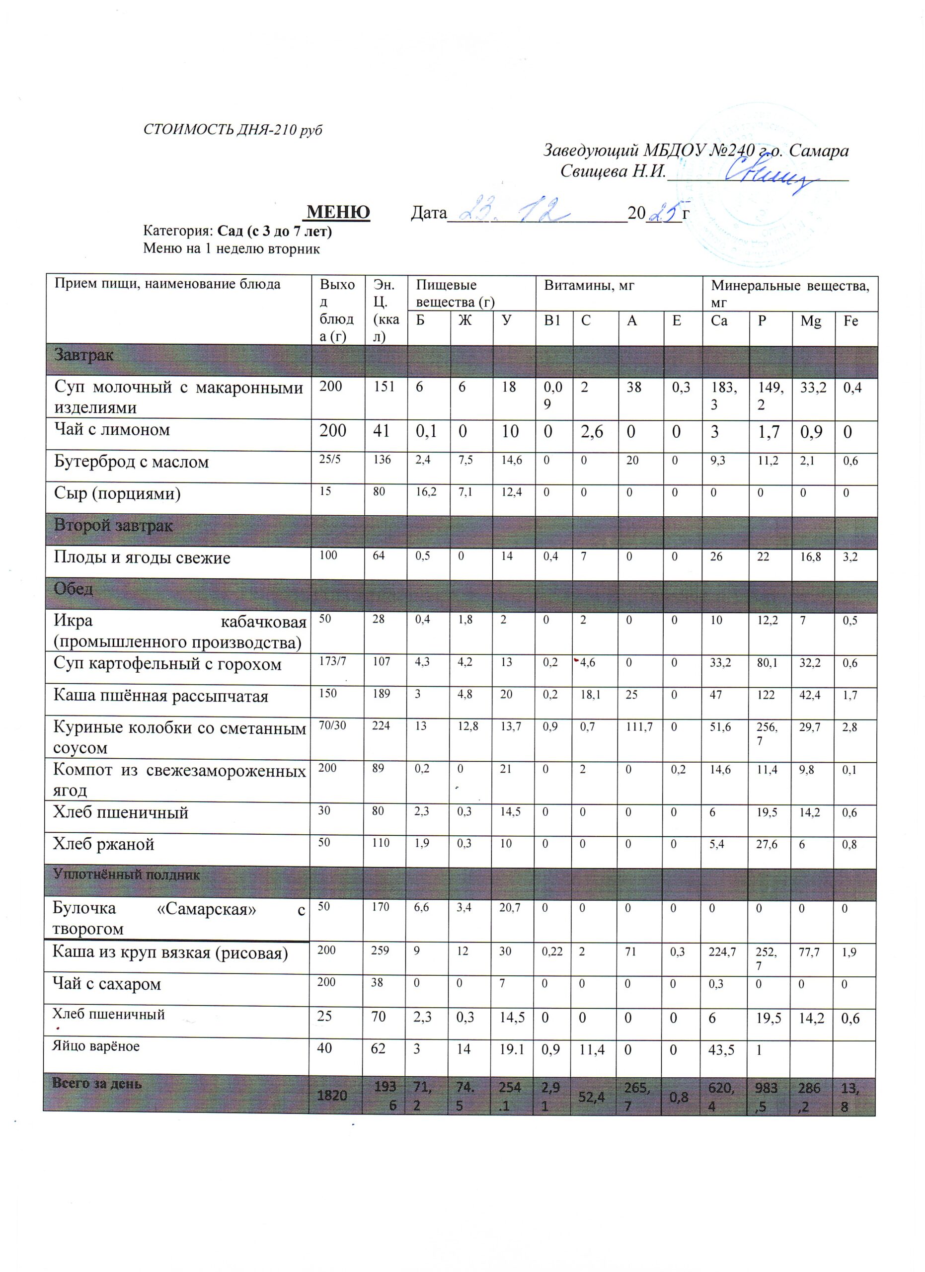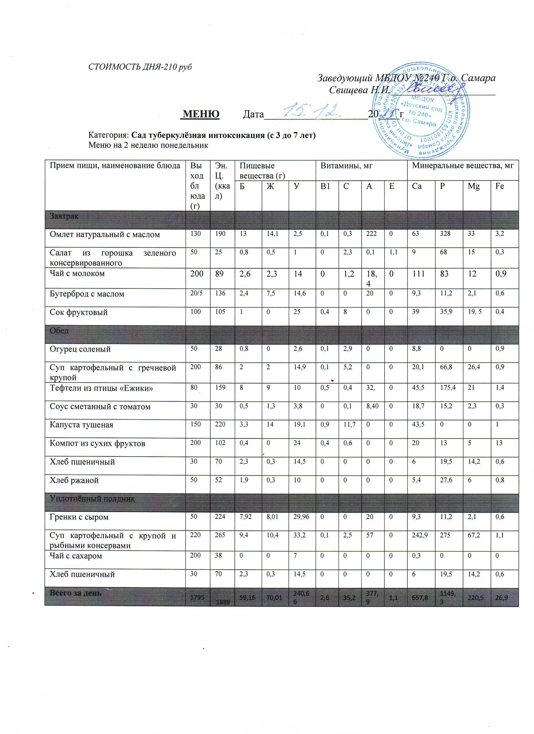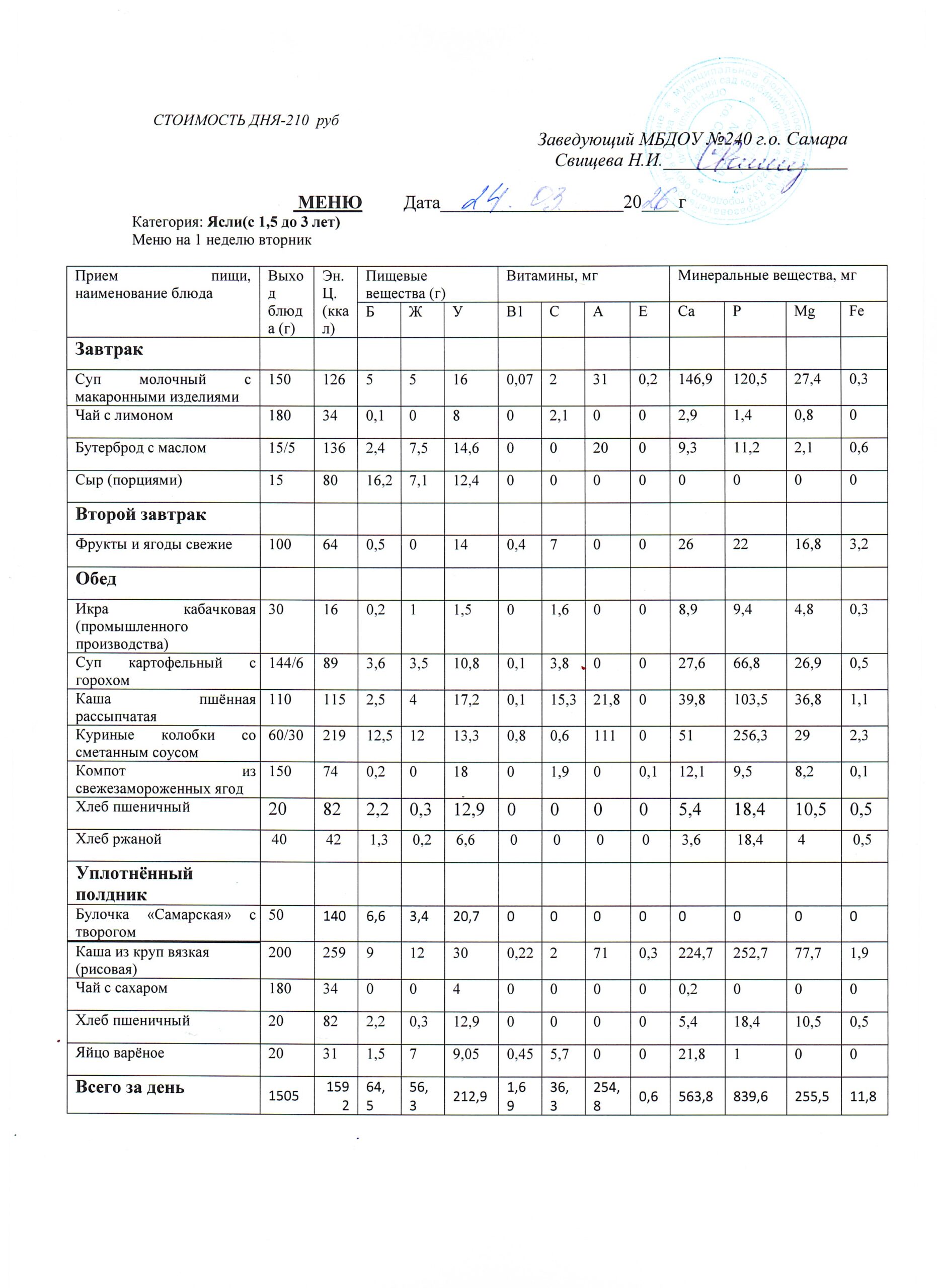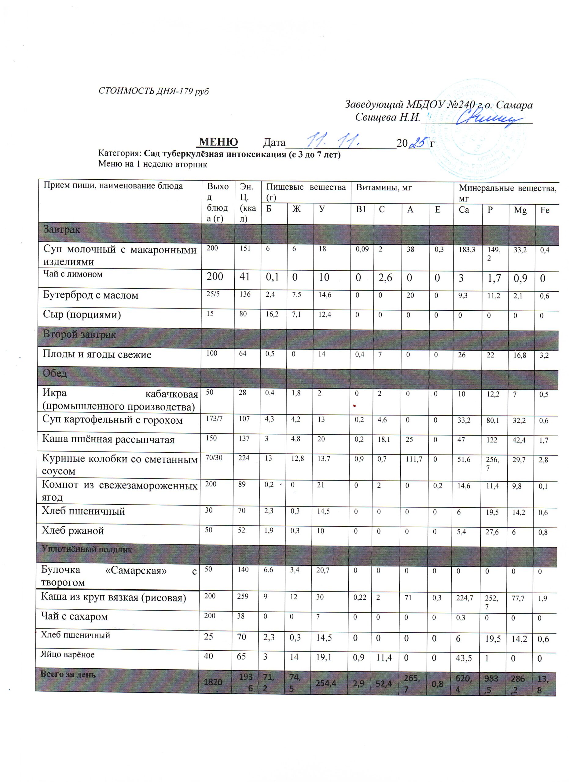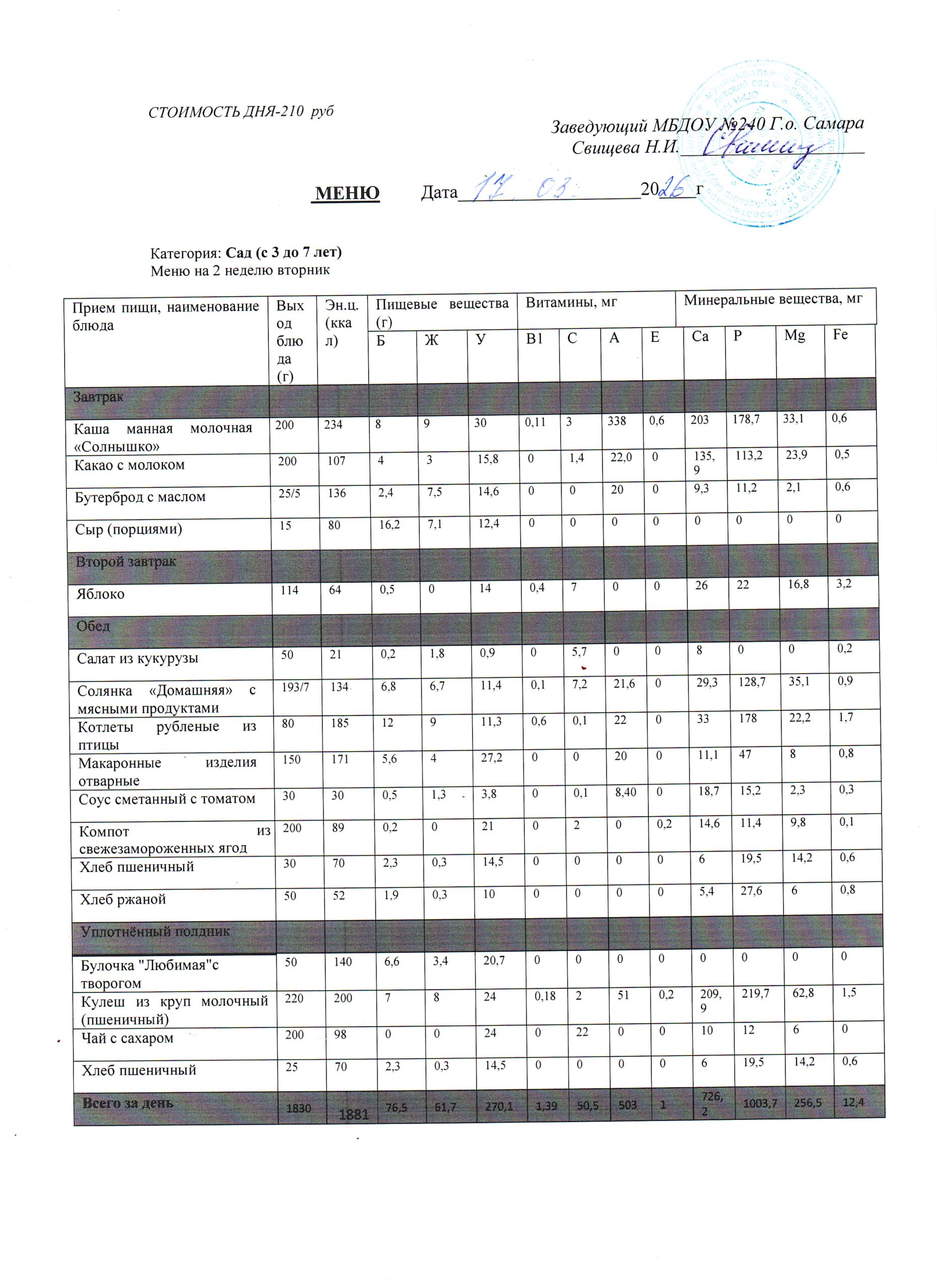 Актуальное утверждённое меню (примерное по сезонам в соответствии с возрастной категорией обучающихся)