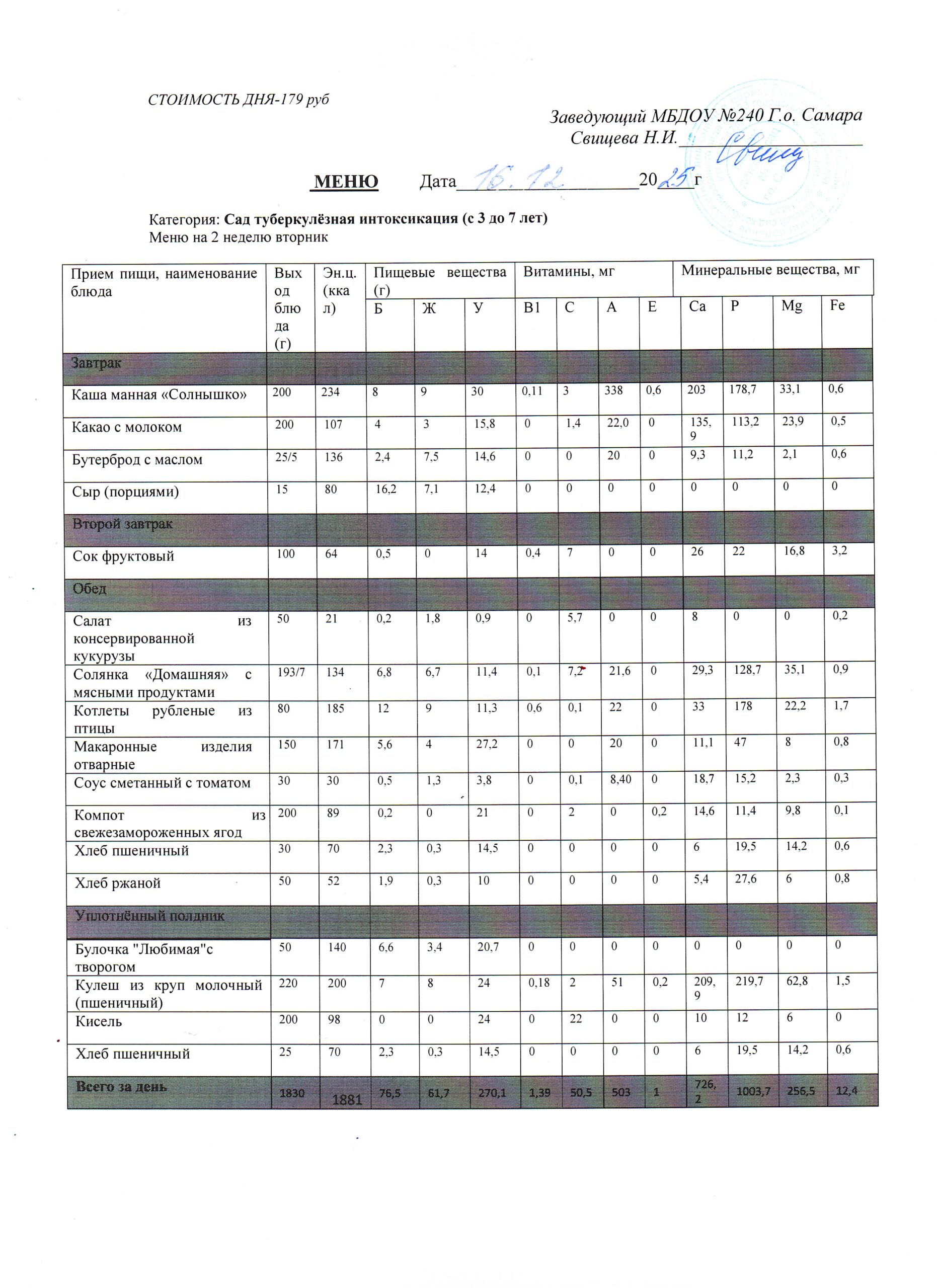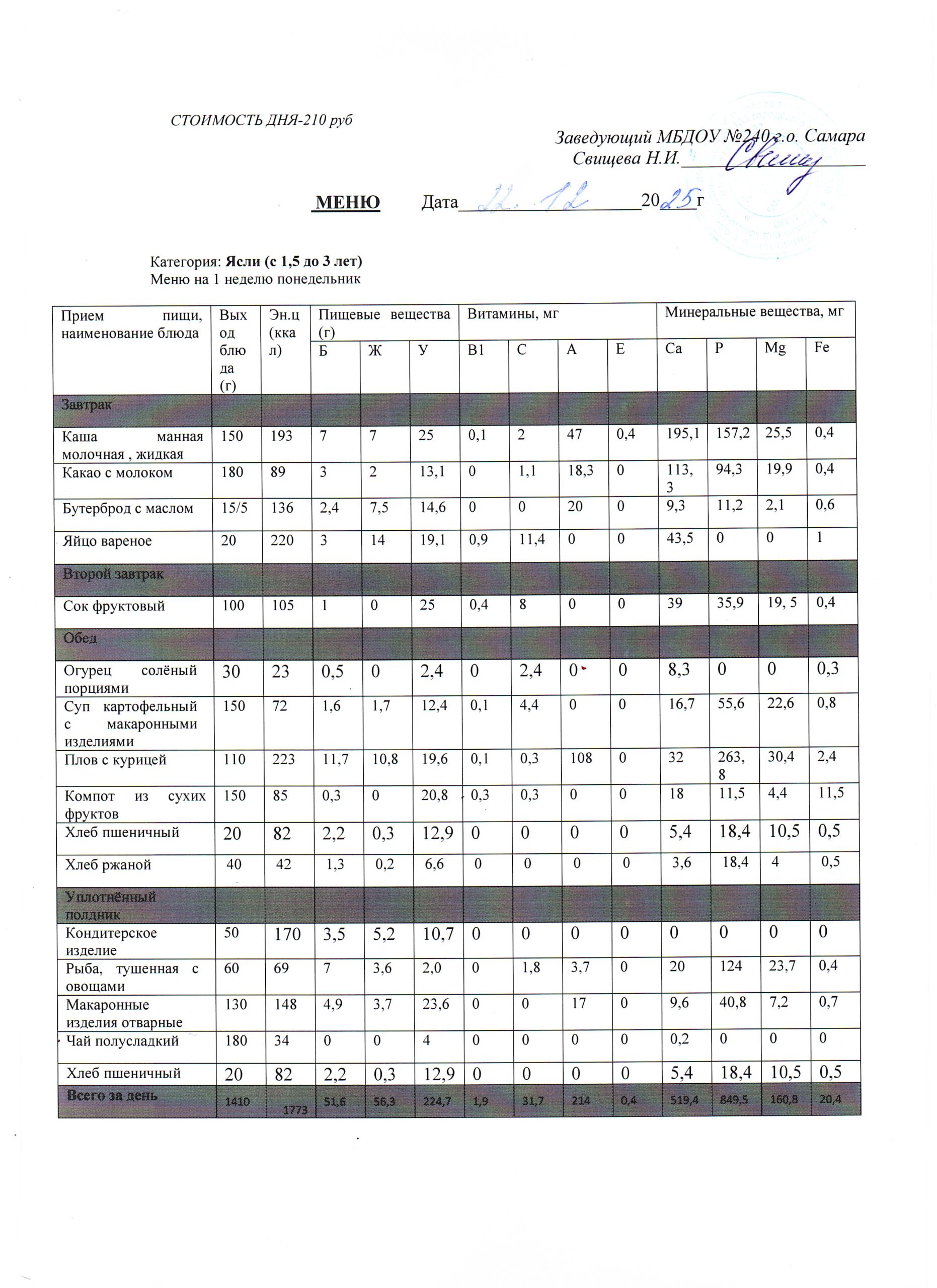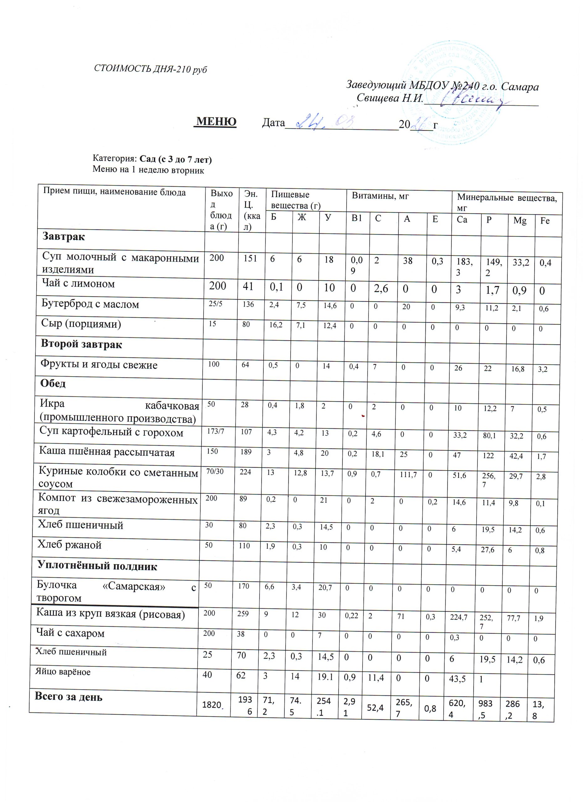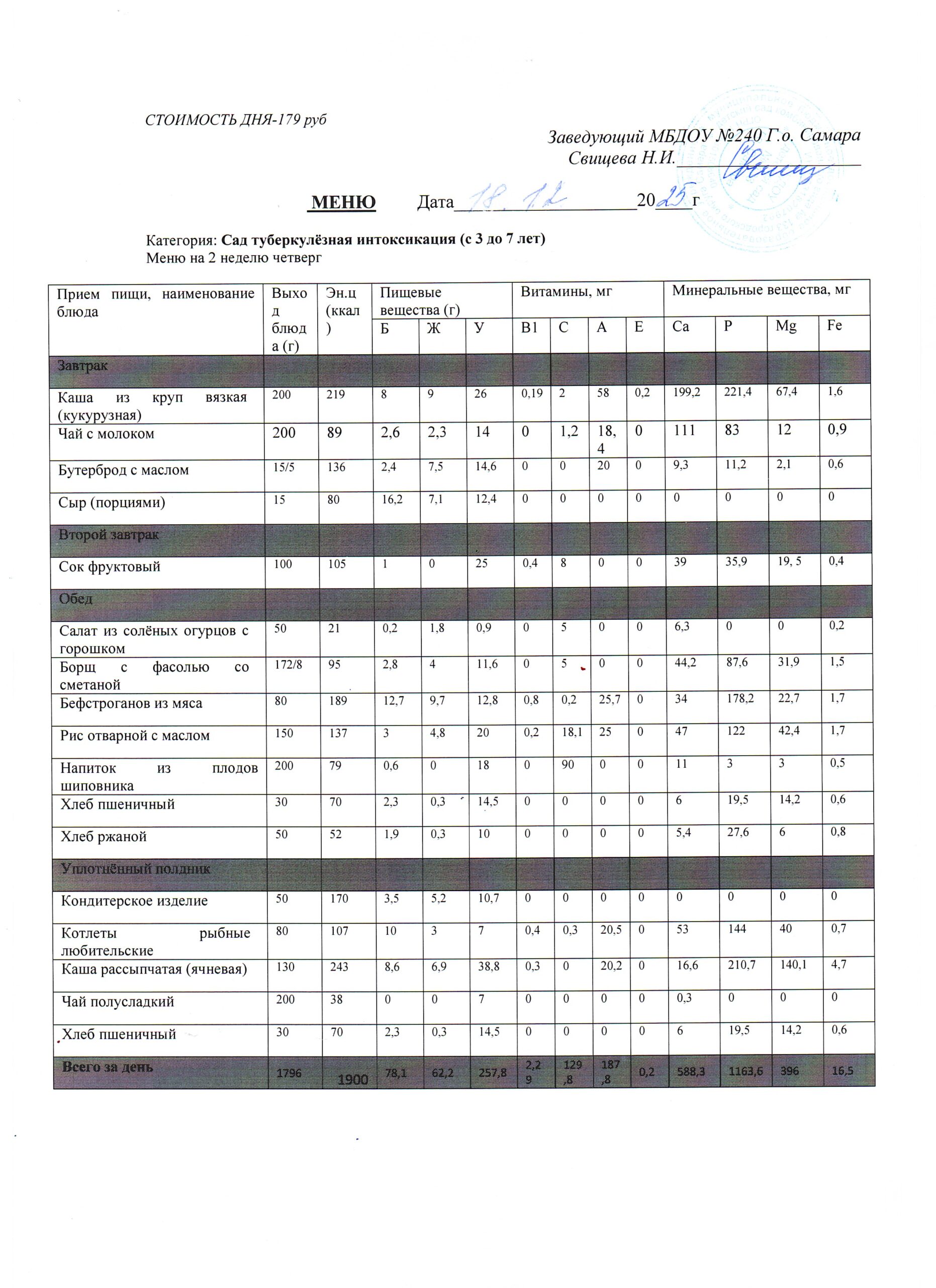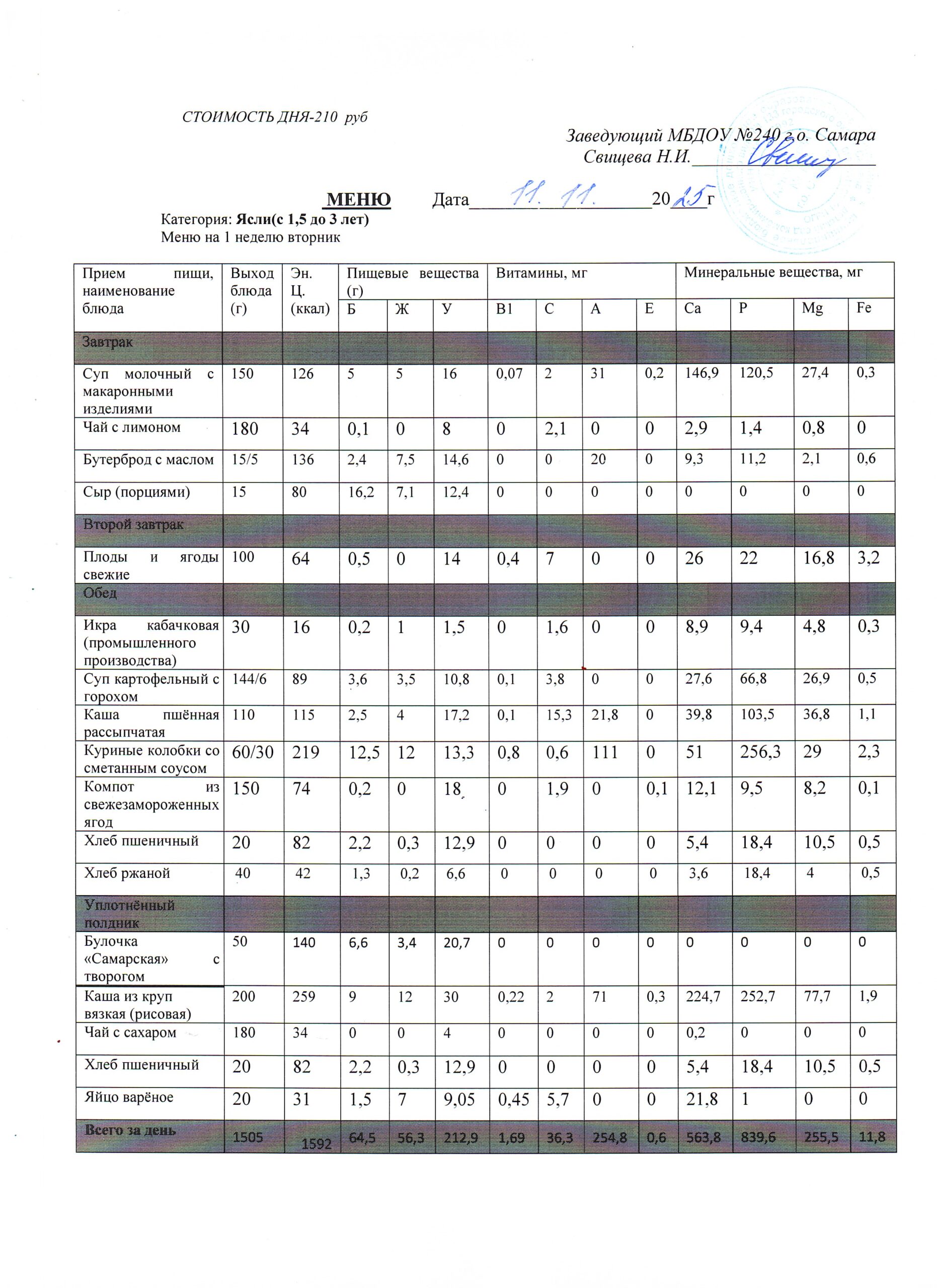 Актуальное утверждённое меню (примерное по сезонам в соответствии с возрастной категорией обучающихся)