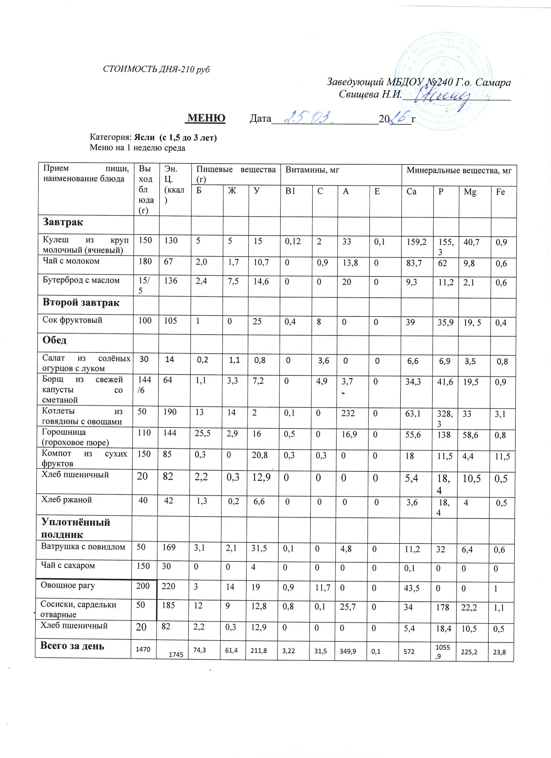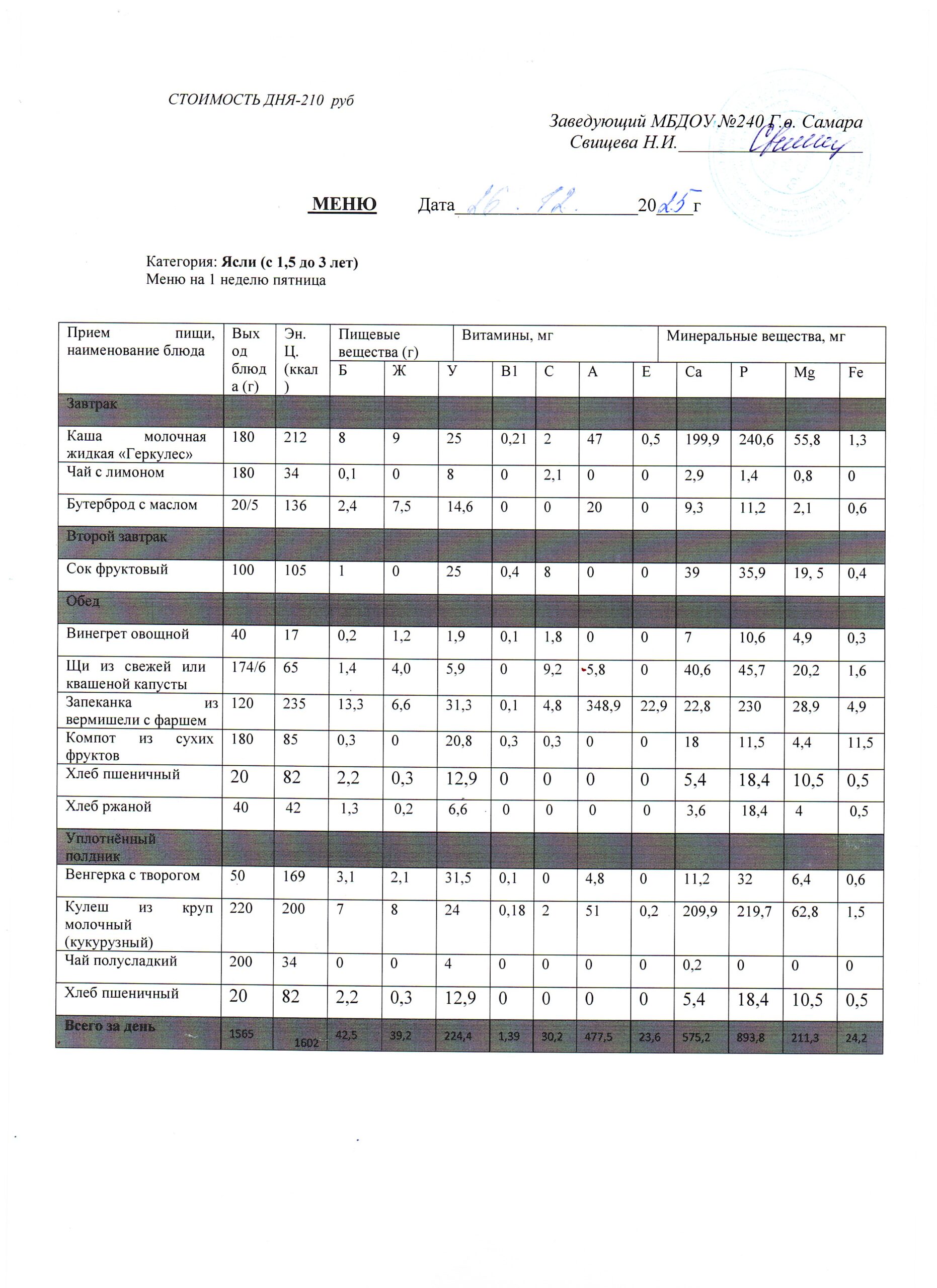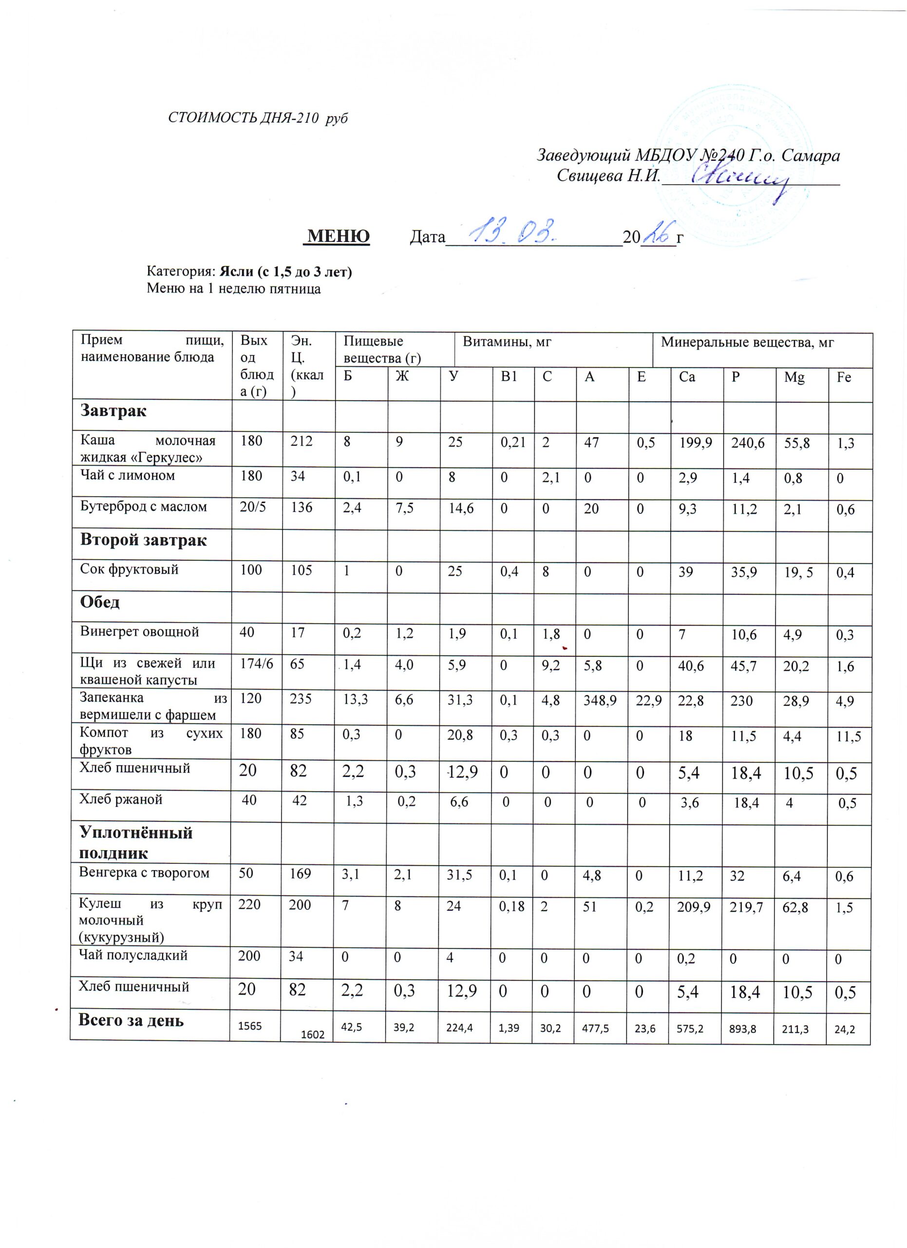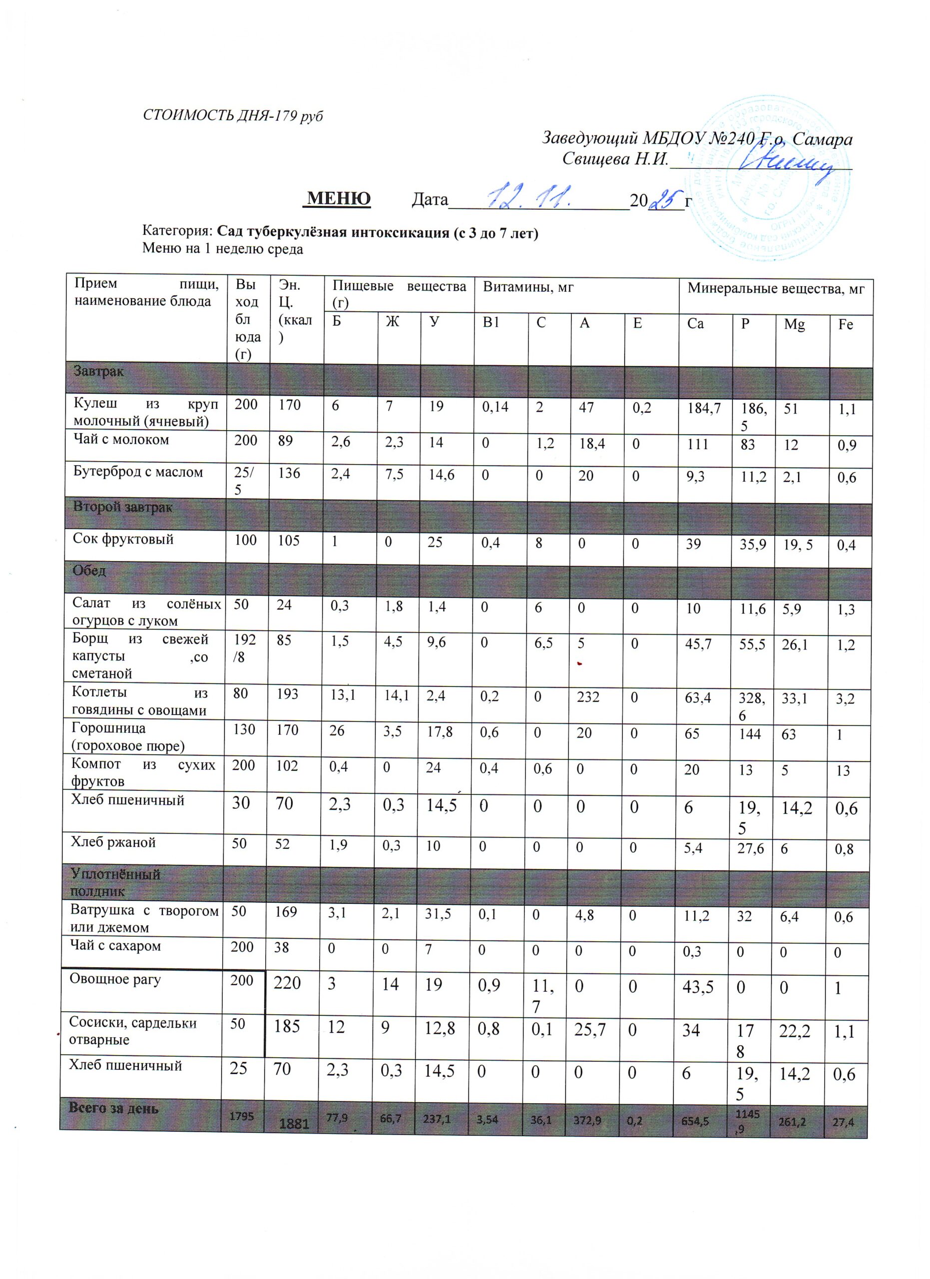 Актуальное утверждённое меню (примерное по сезонам в соответствии с возрастной категорией обучающихся)