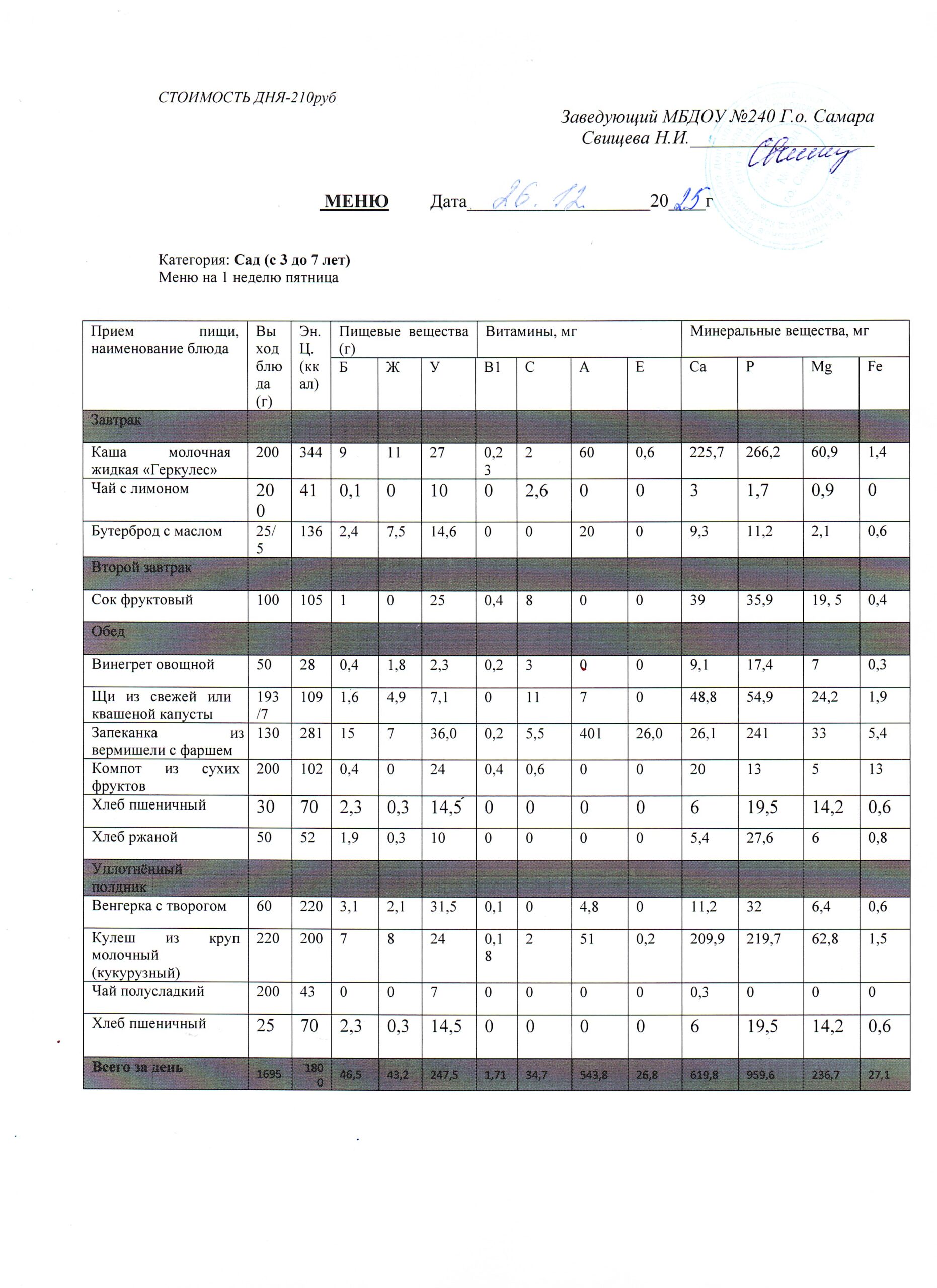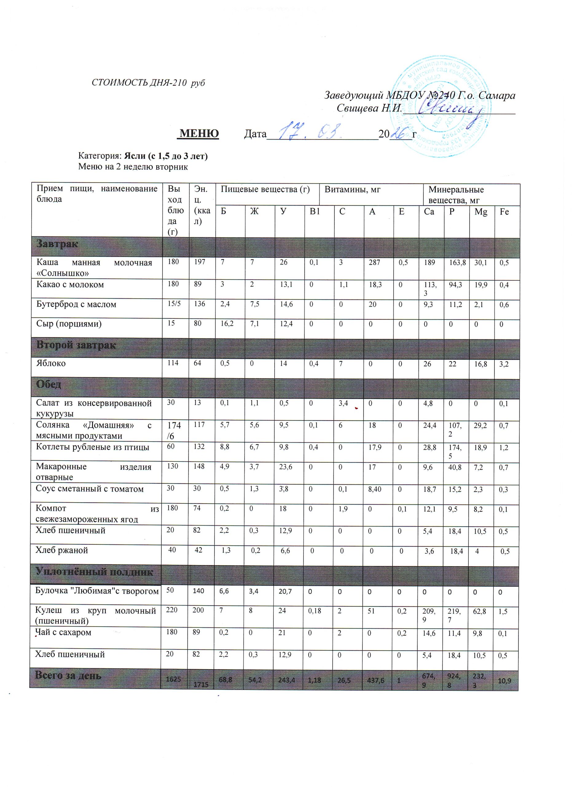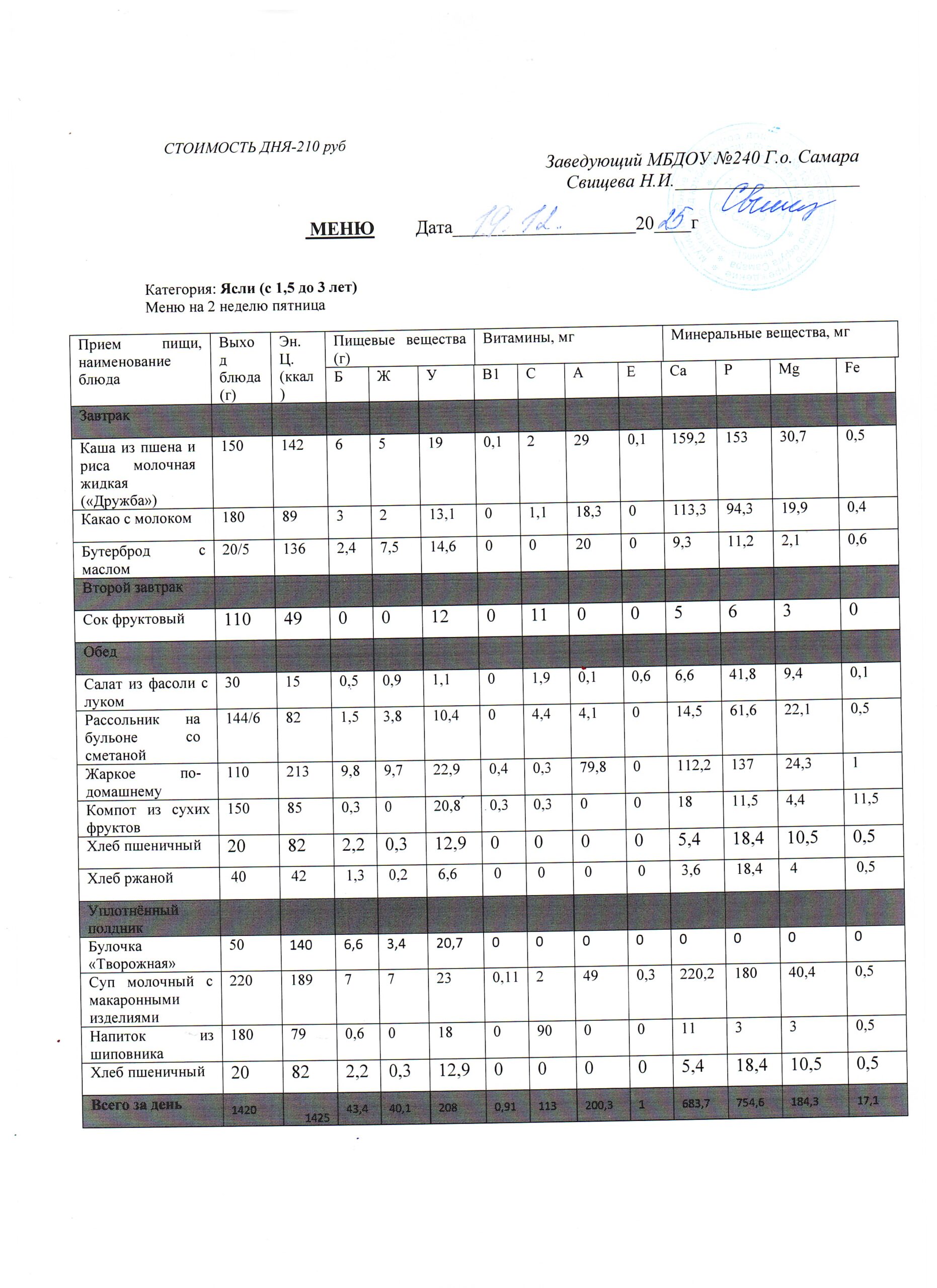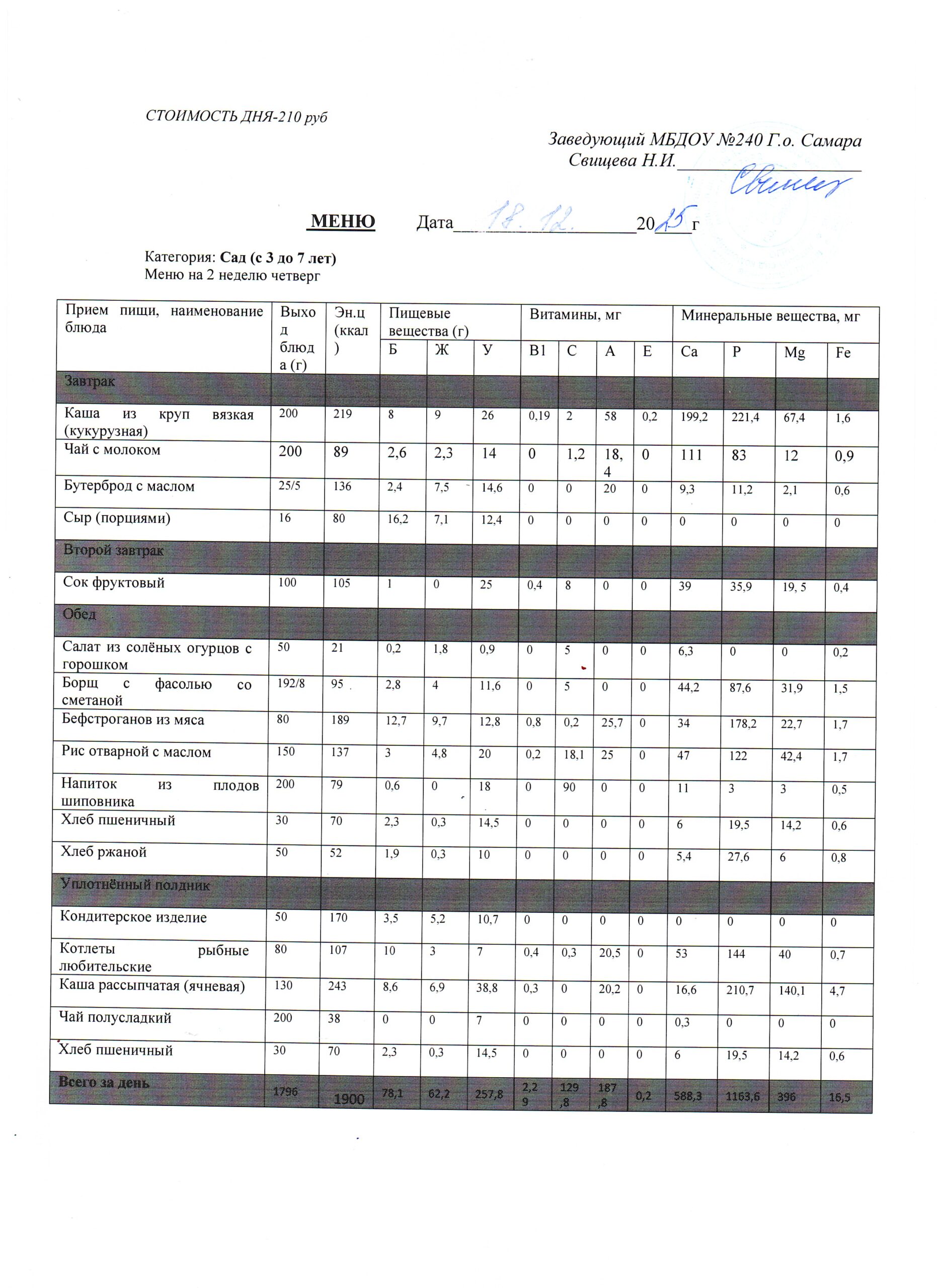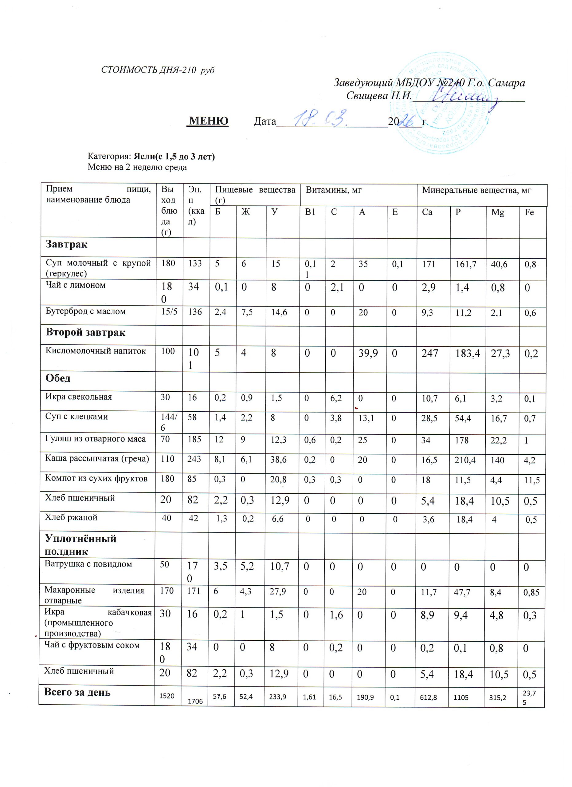 Актуальное утверждённое меню (примерное по сезонам в соответствии с возрастной категорией обучающихся)