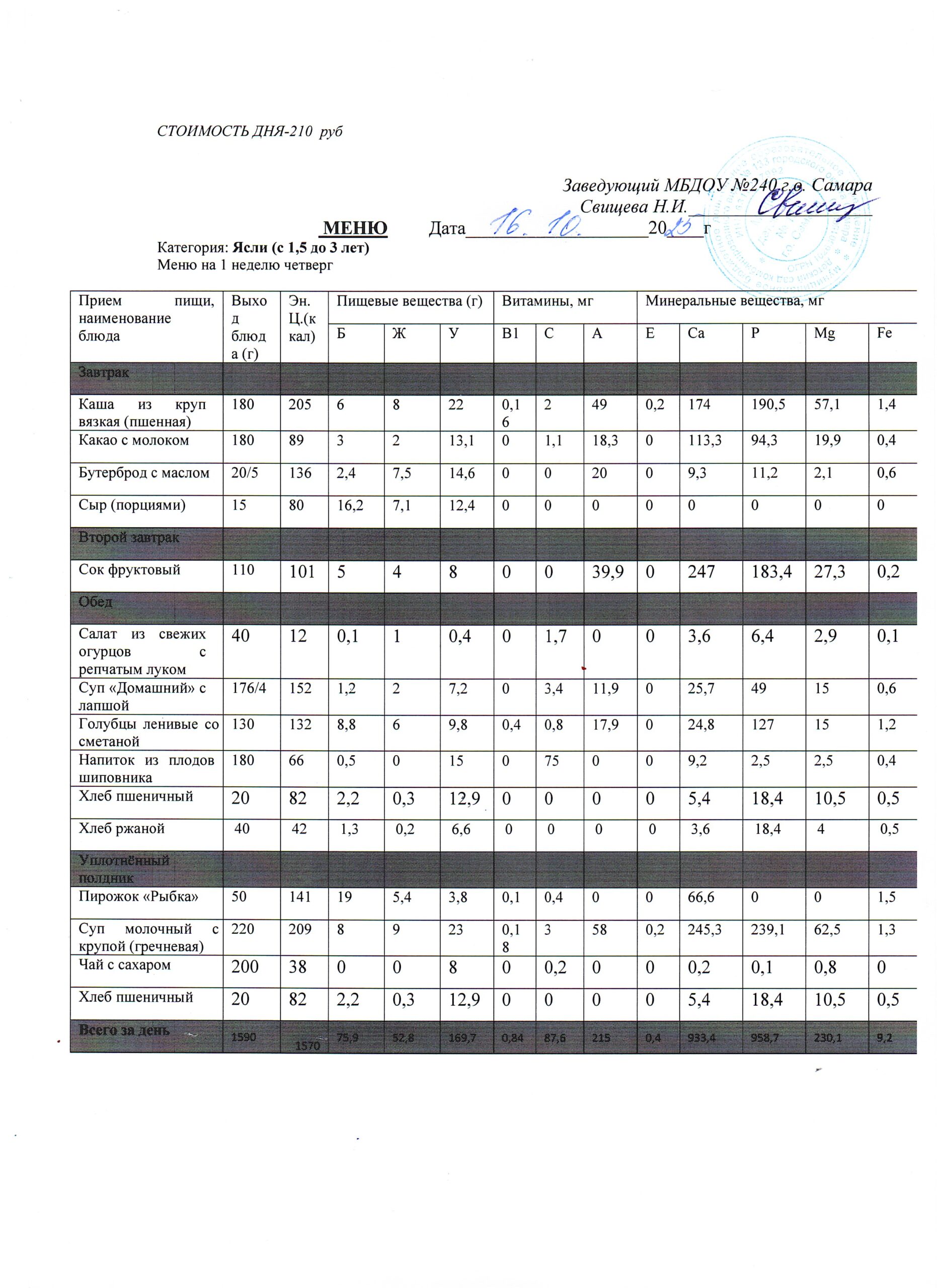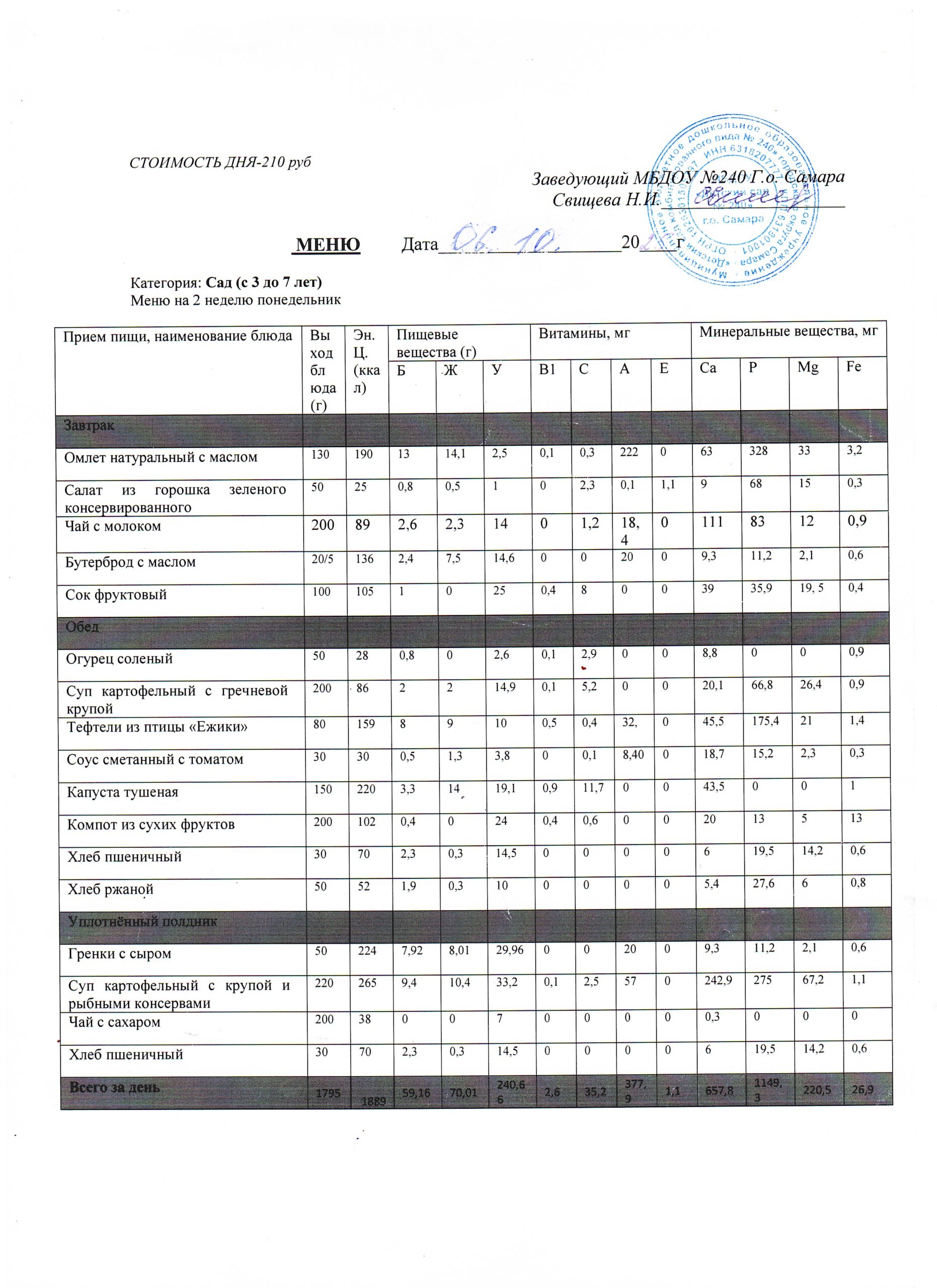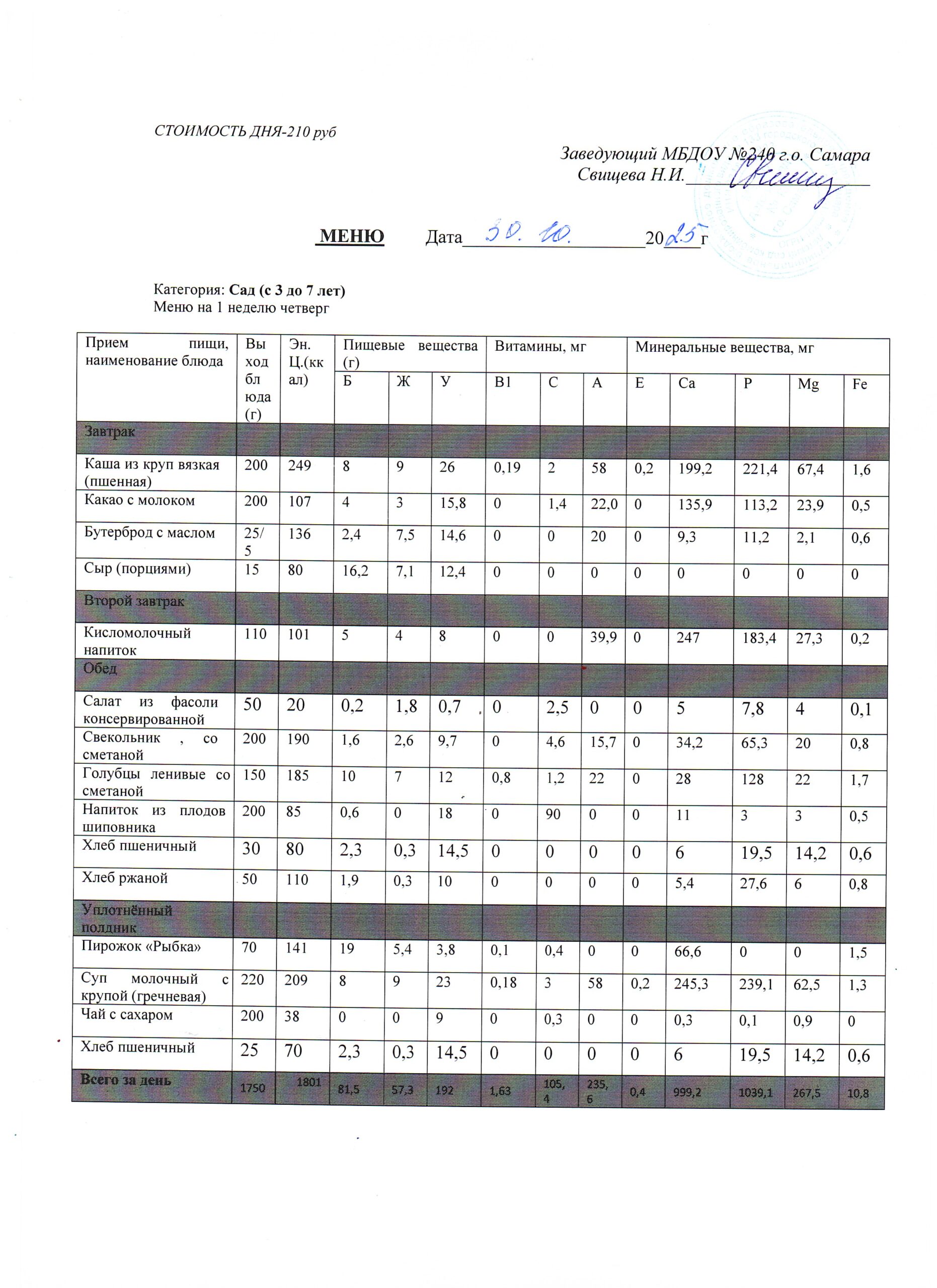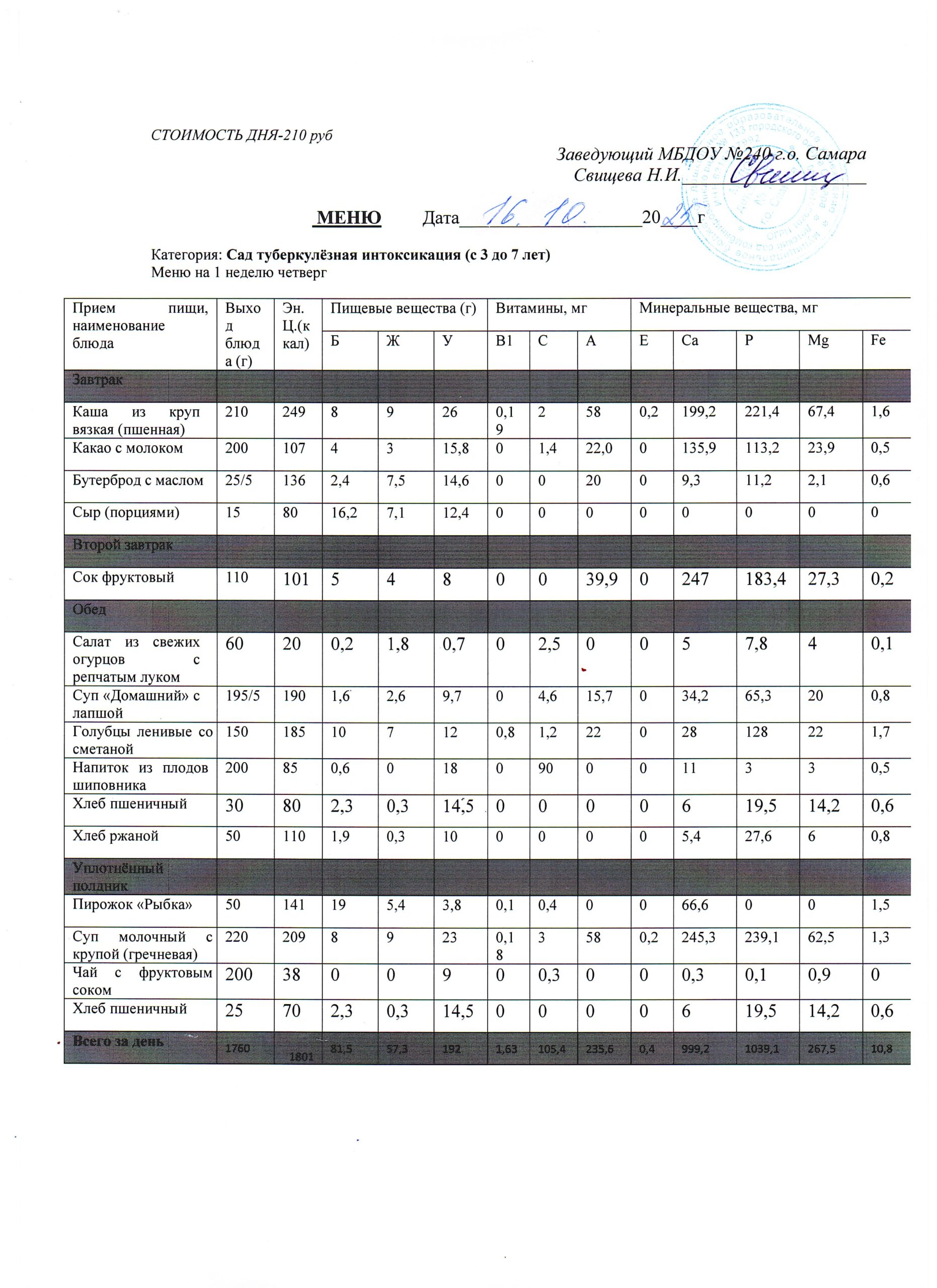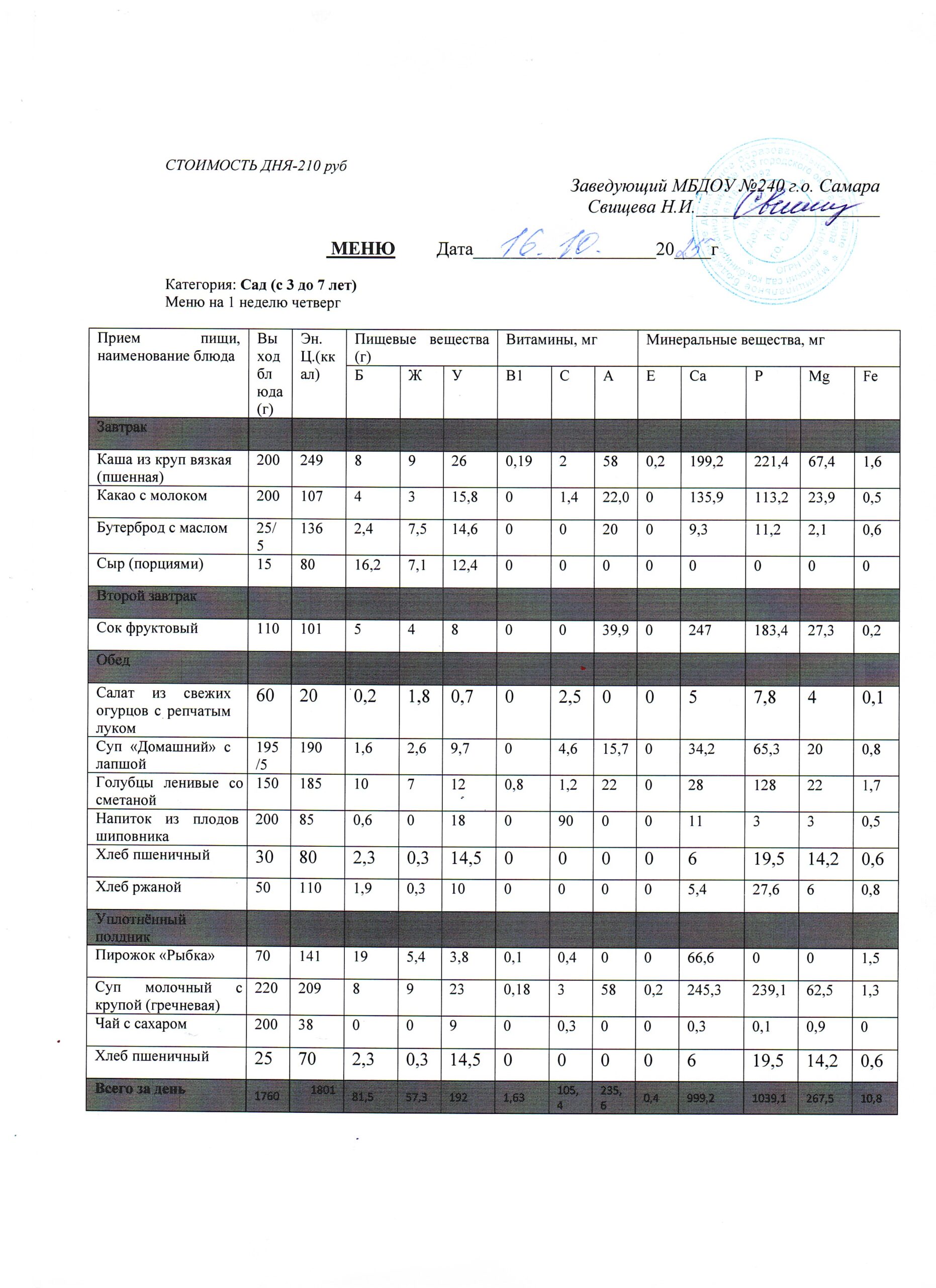 - Меню питания 16.10.2024г. (3-7 лет)