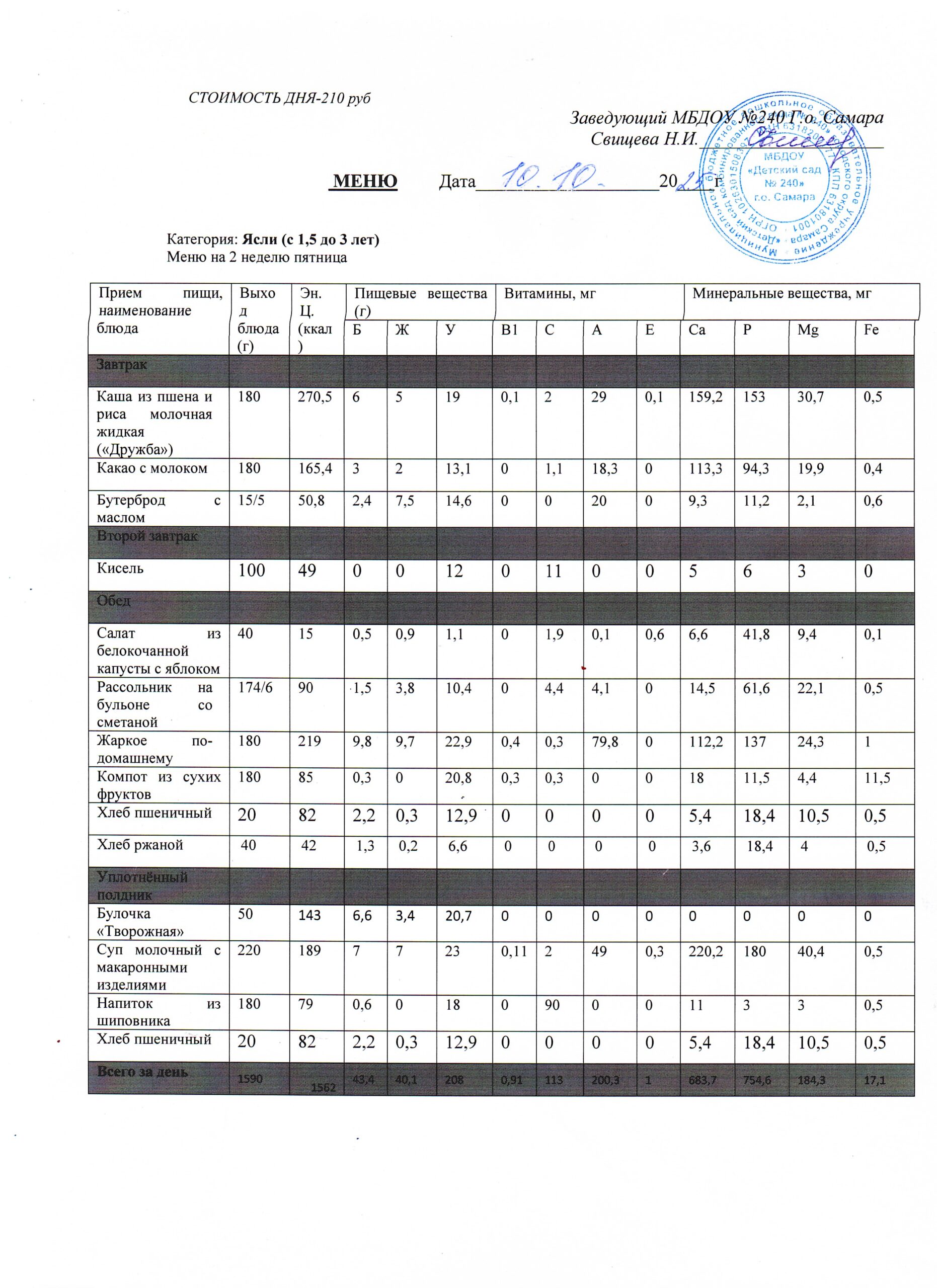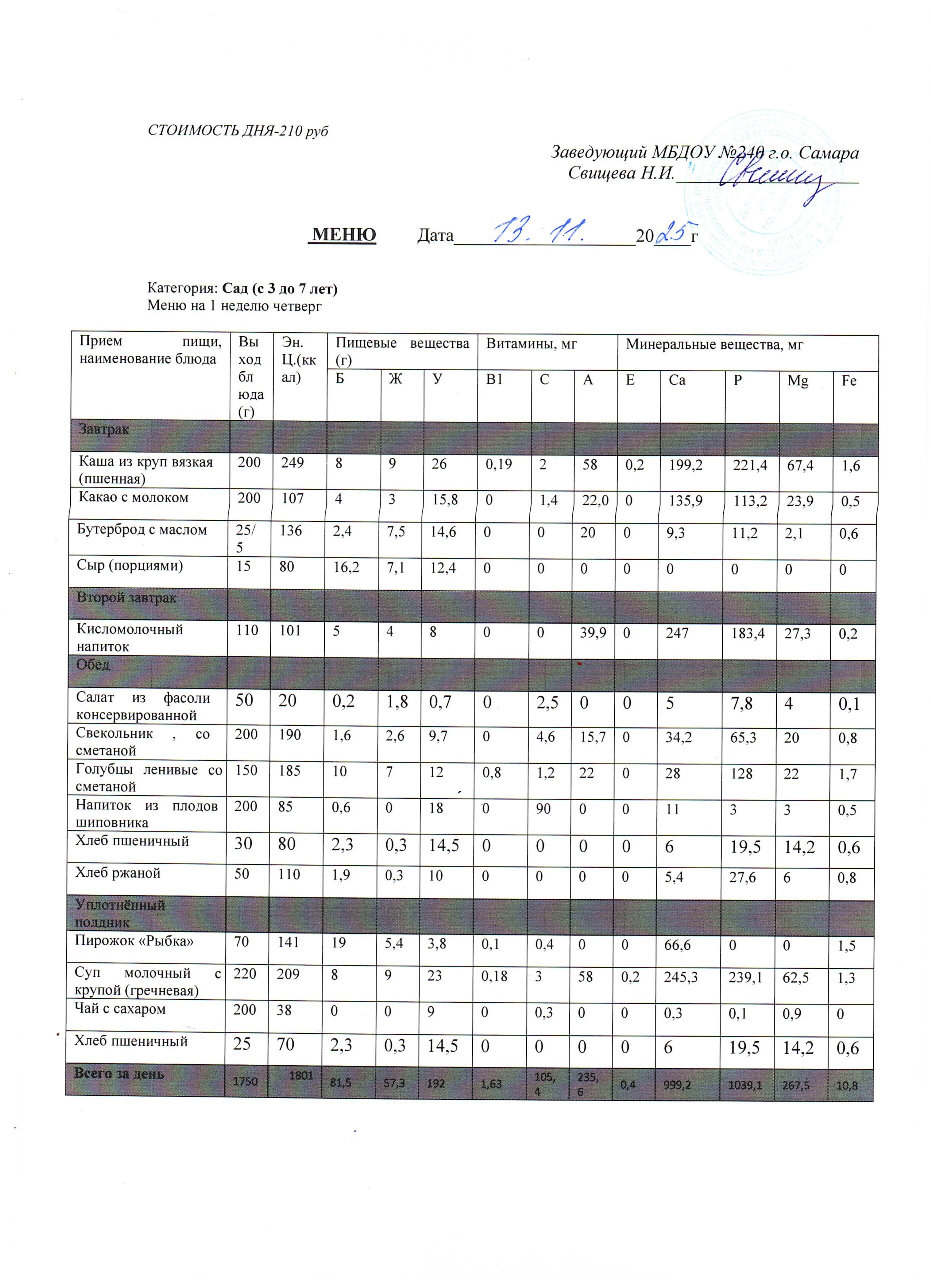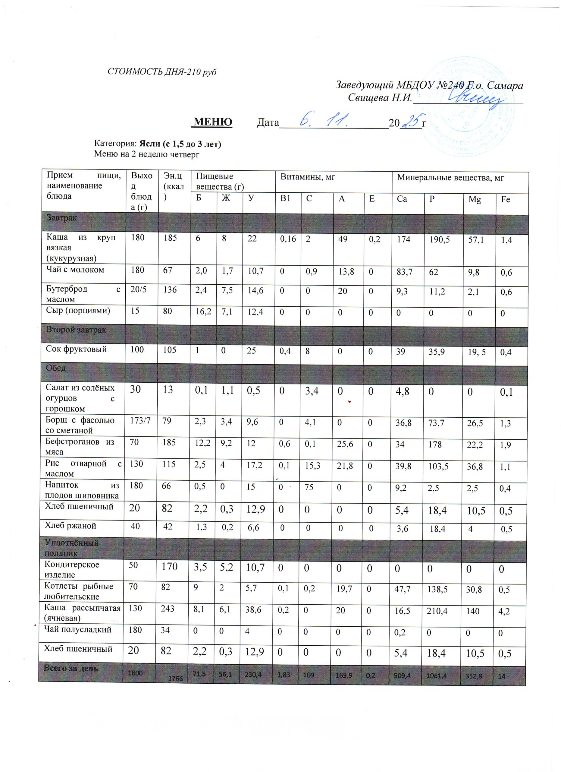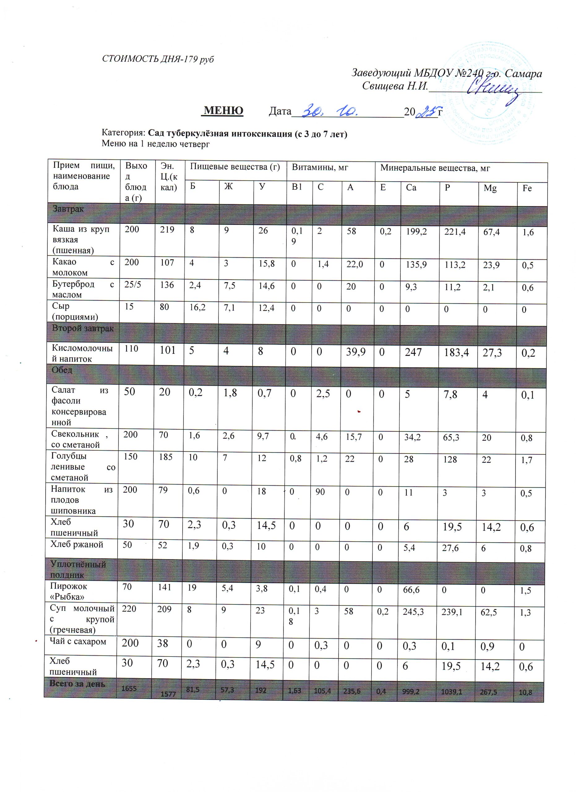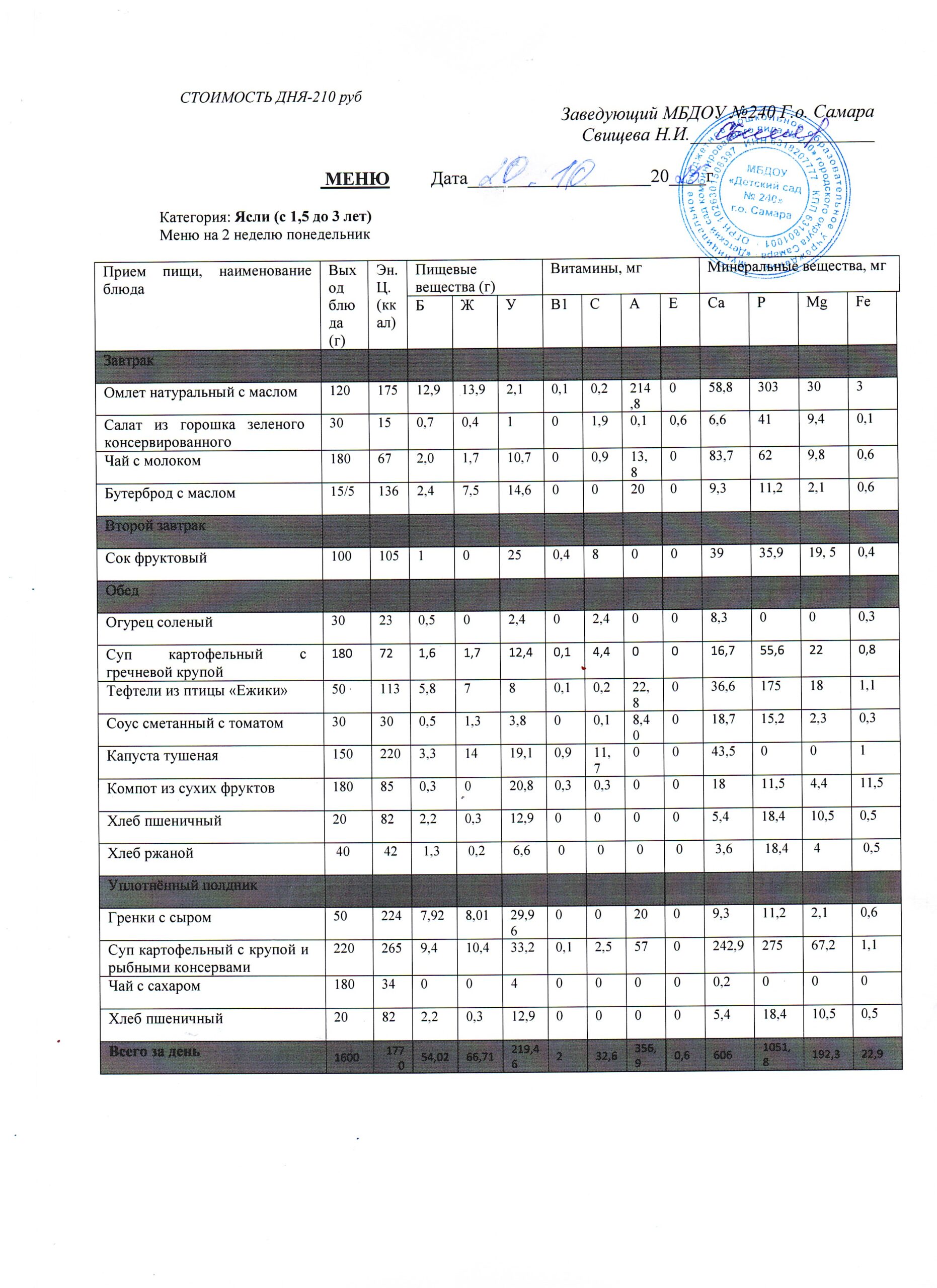 - Меню питания 16.10.2024г. (3-7 лет)