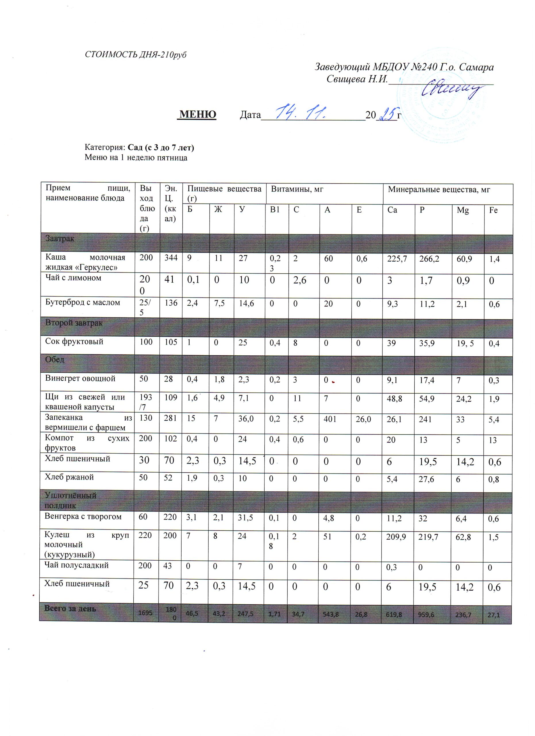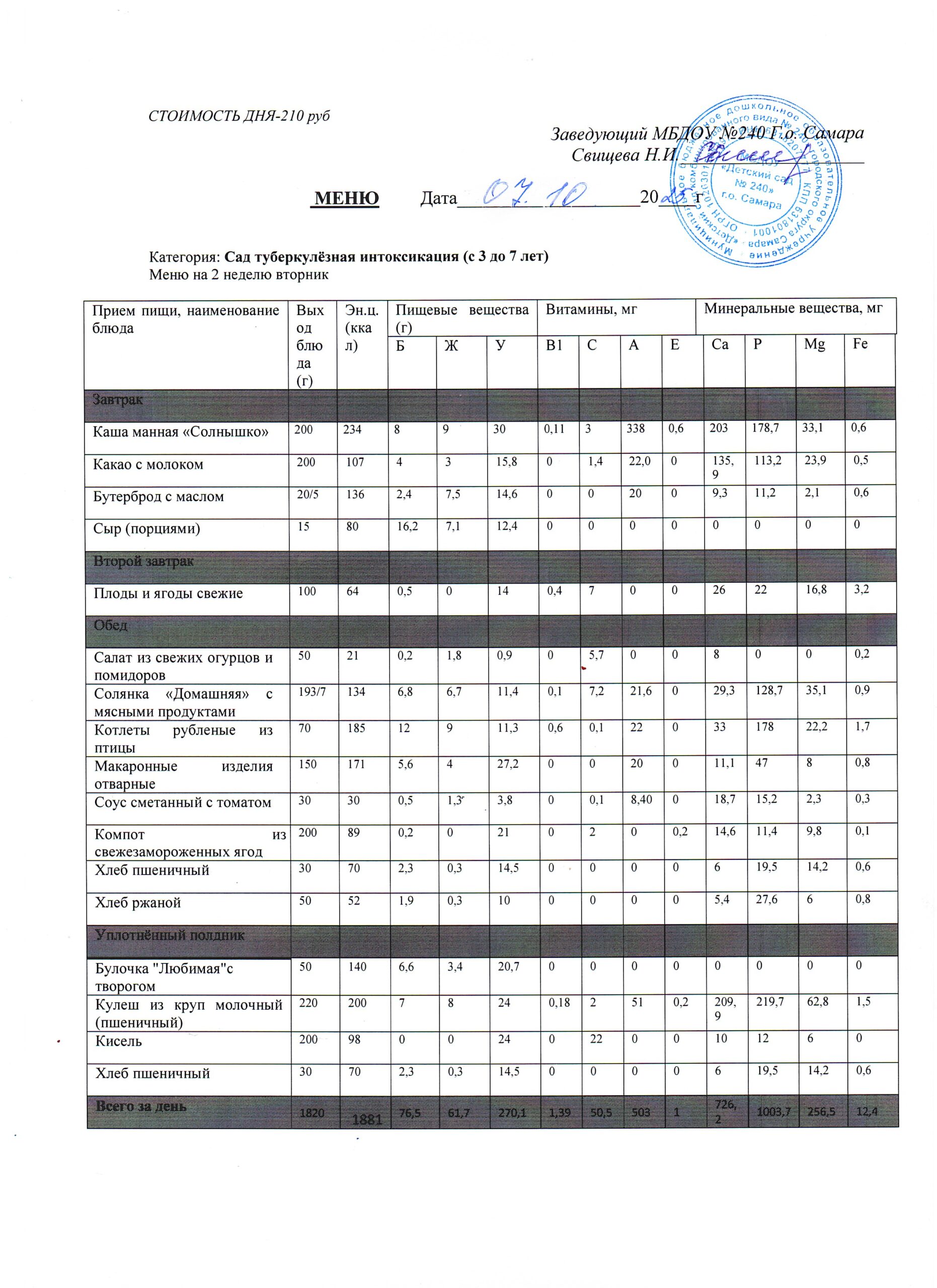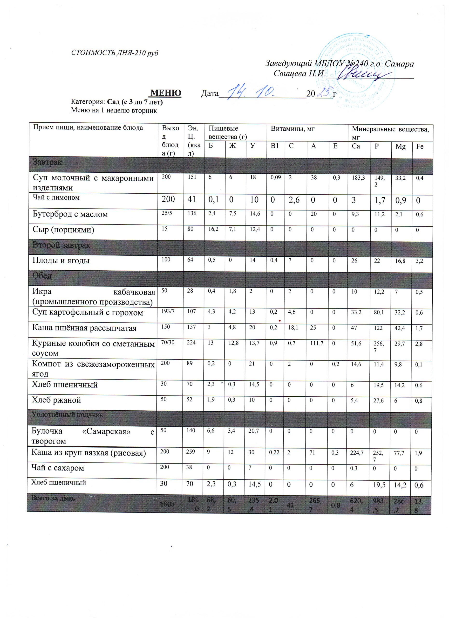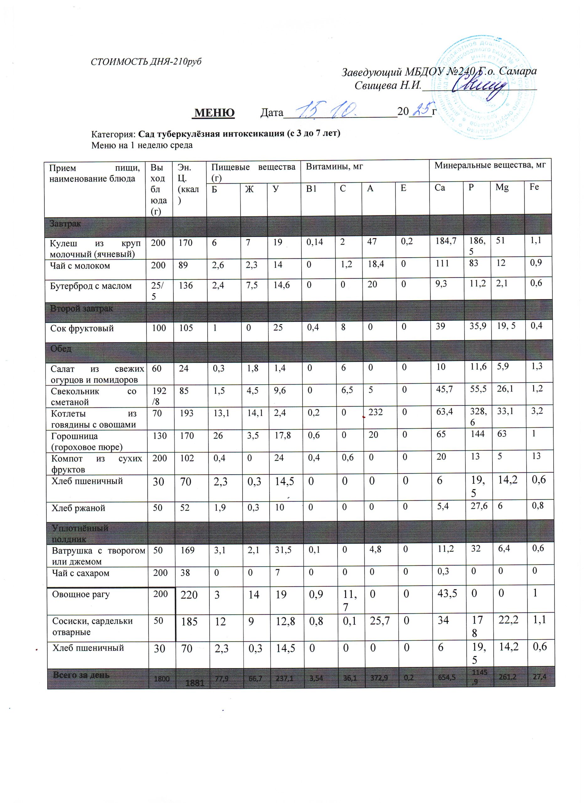 - Меню питания 16.10.2024г. (3-7 лет)