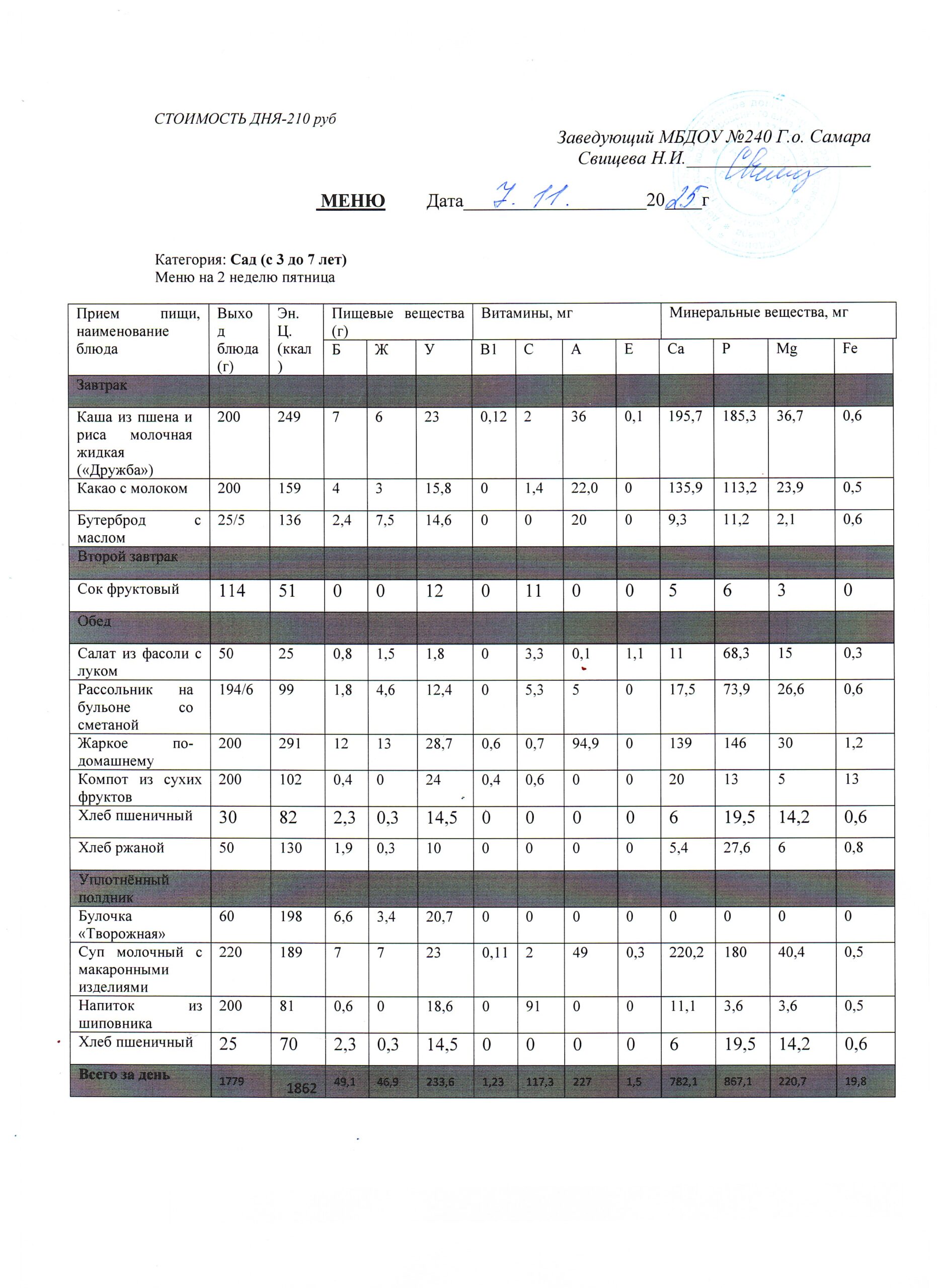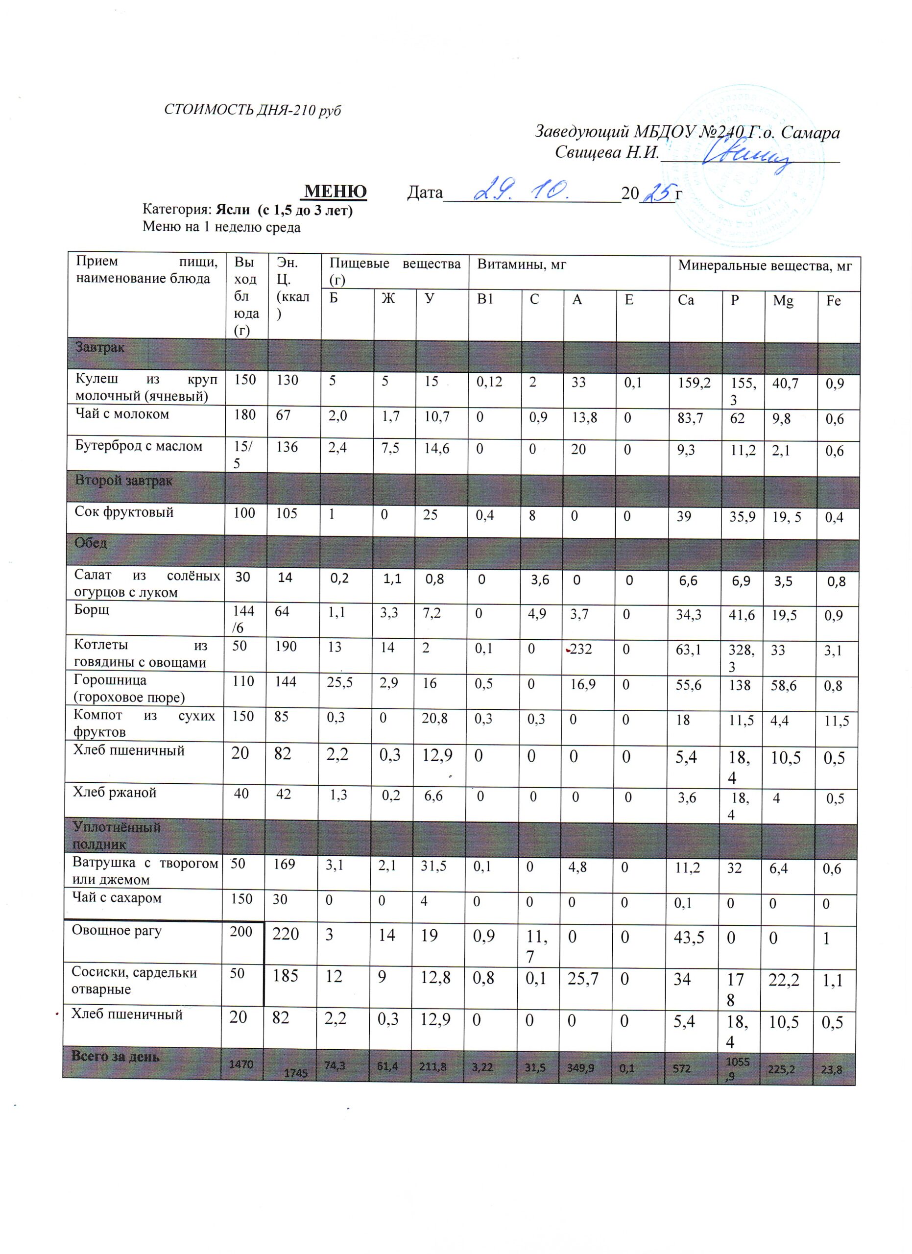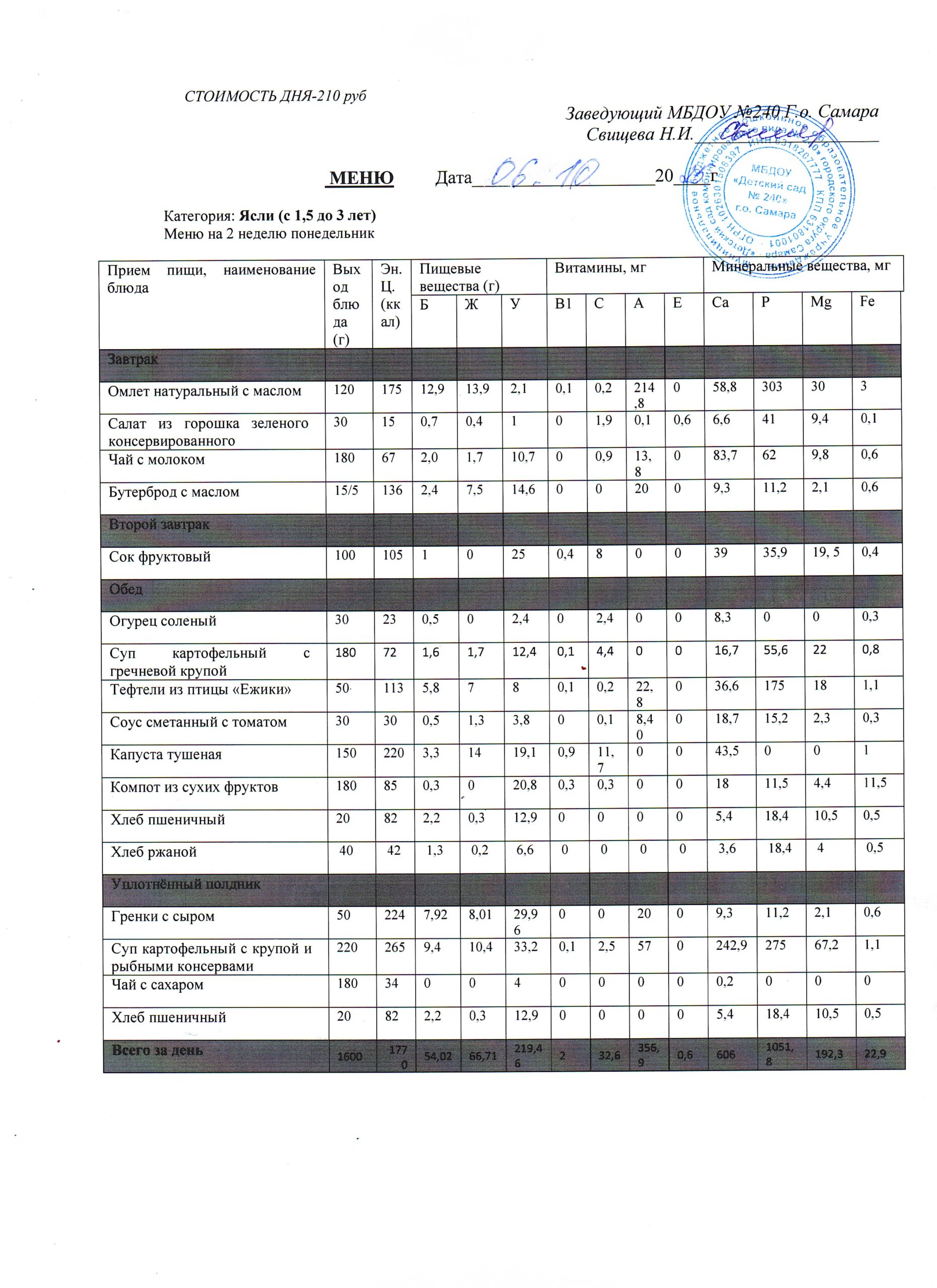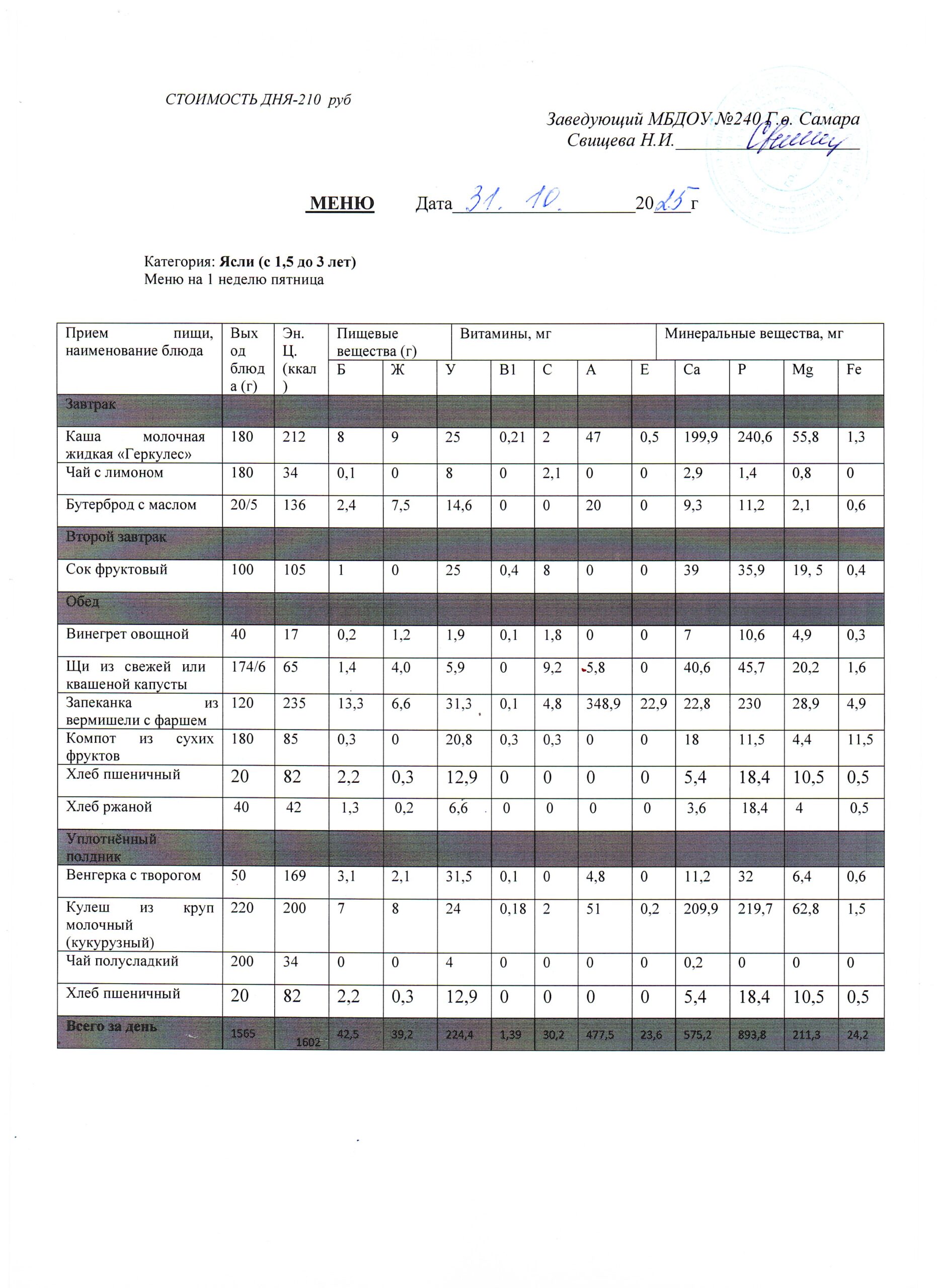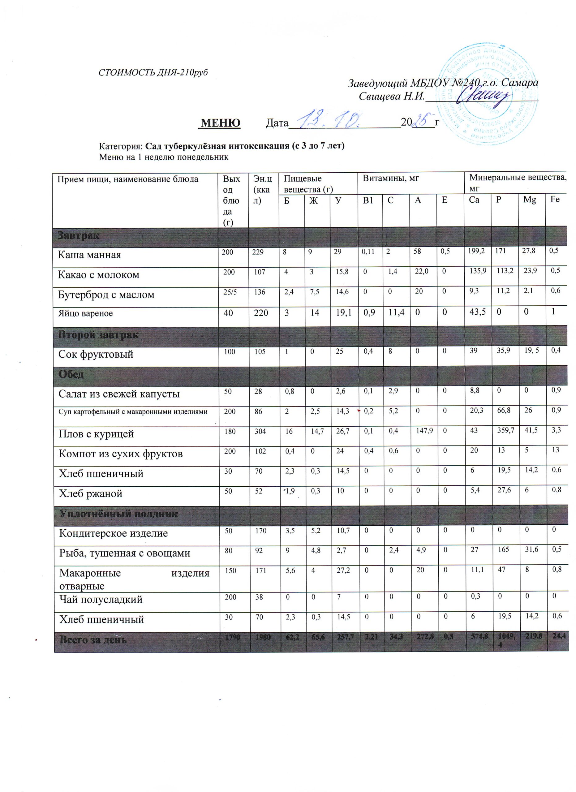- Меню питания 16.10.2024г. (3-7 лет)