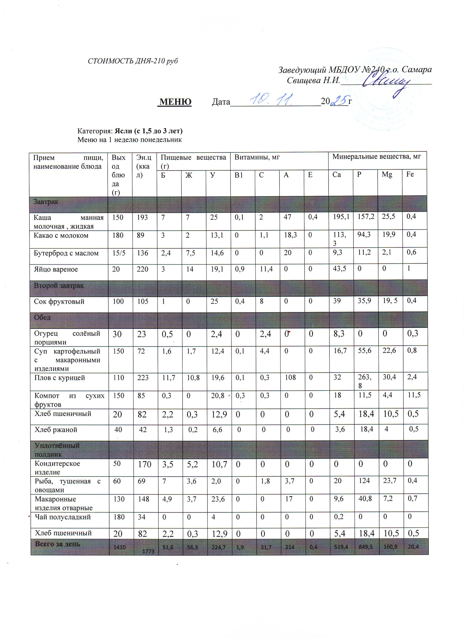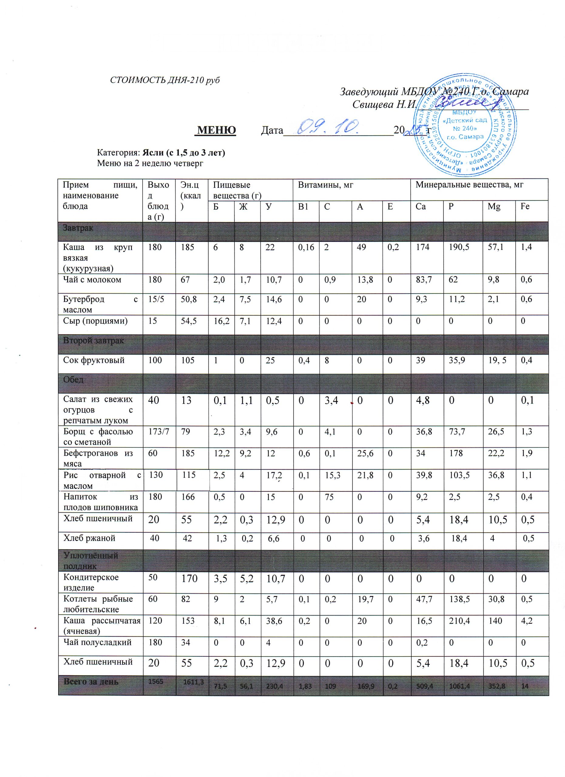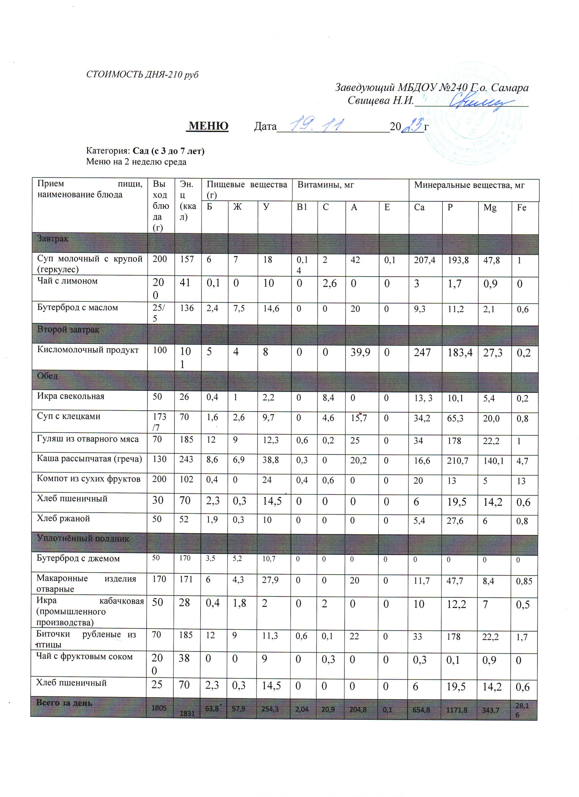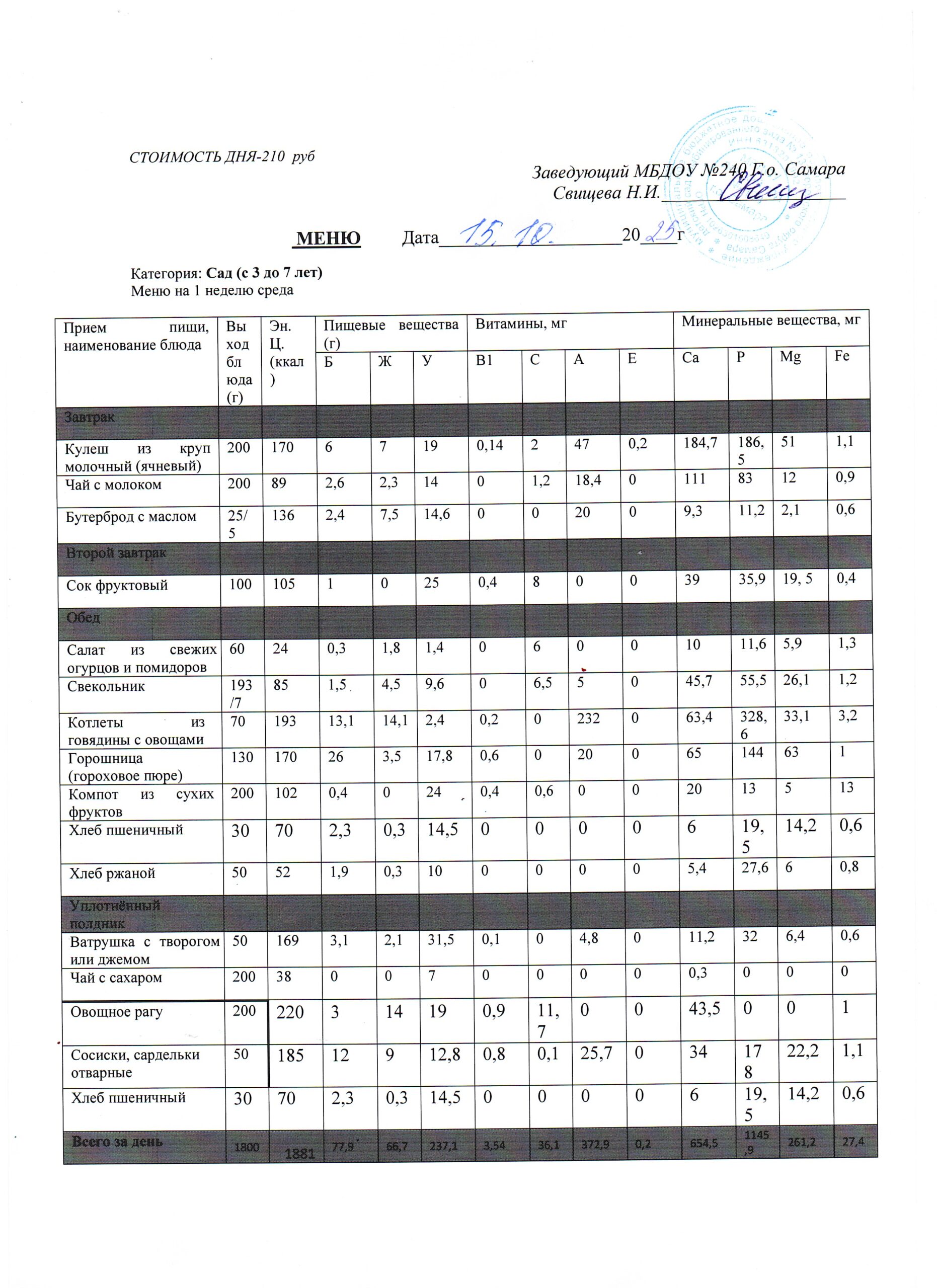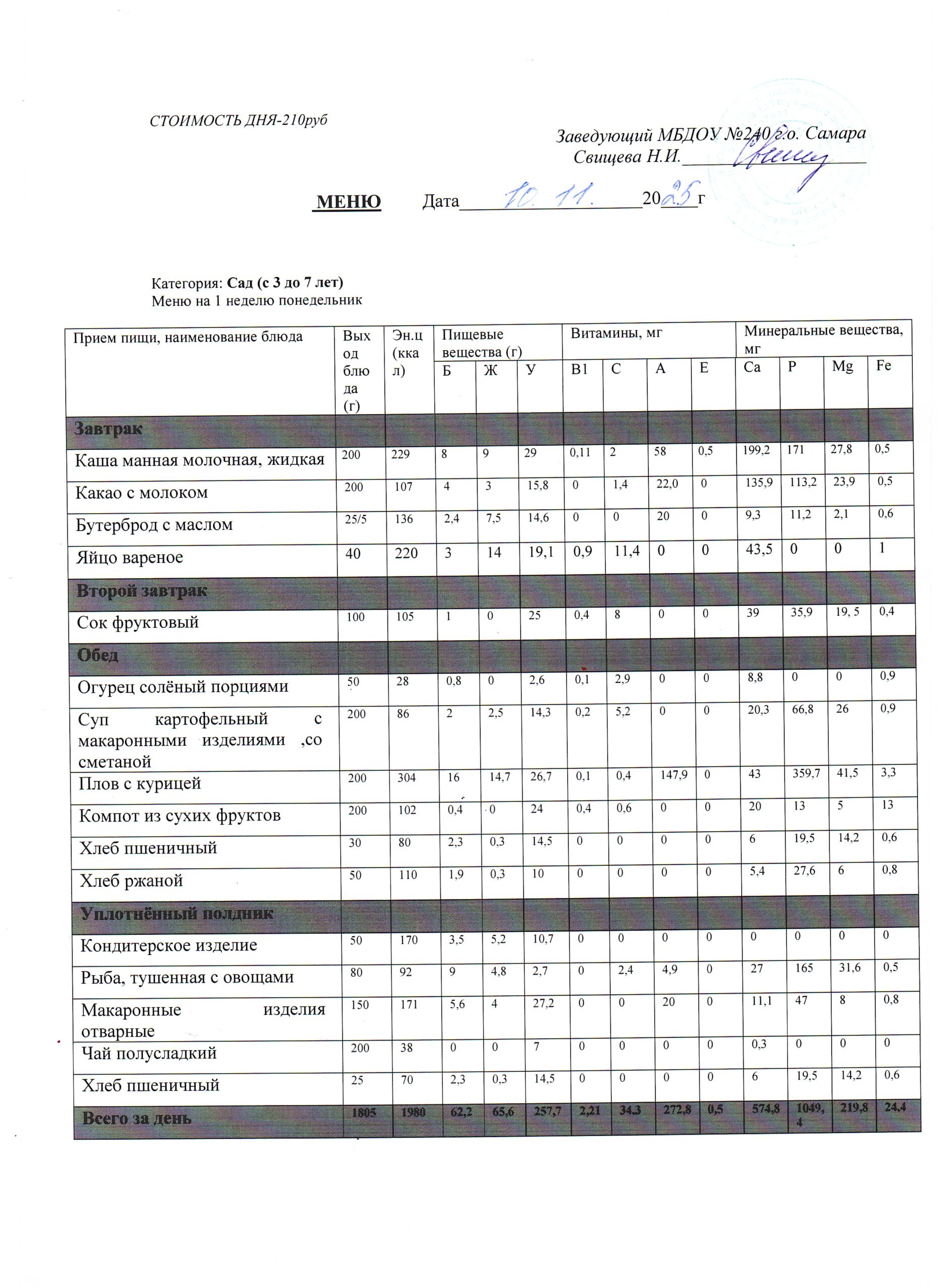 - Меню питания 16.10.2024г. (3-7 лет)
