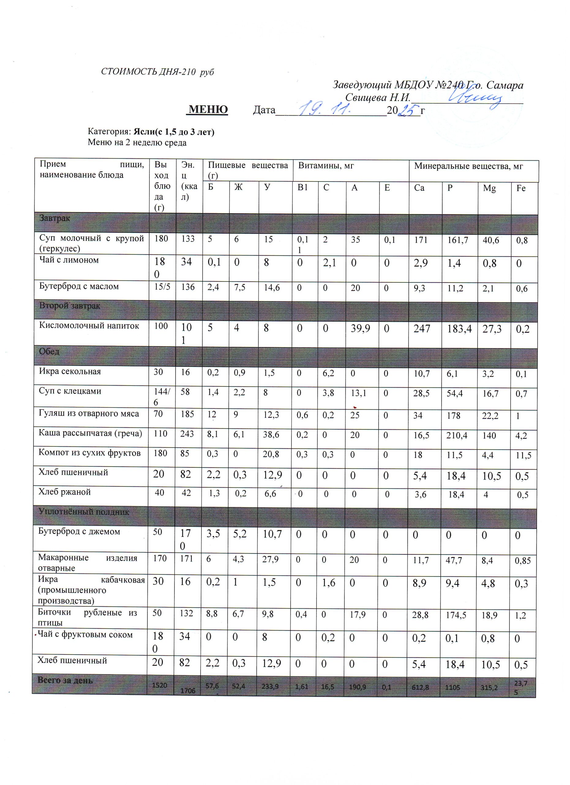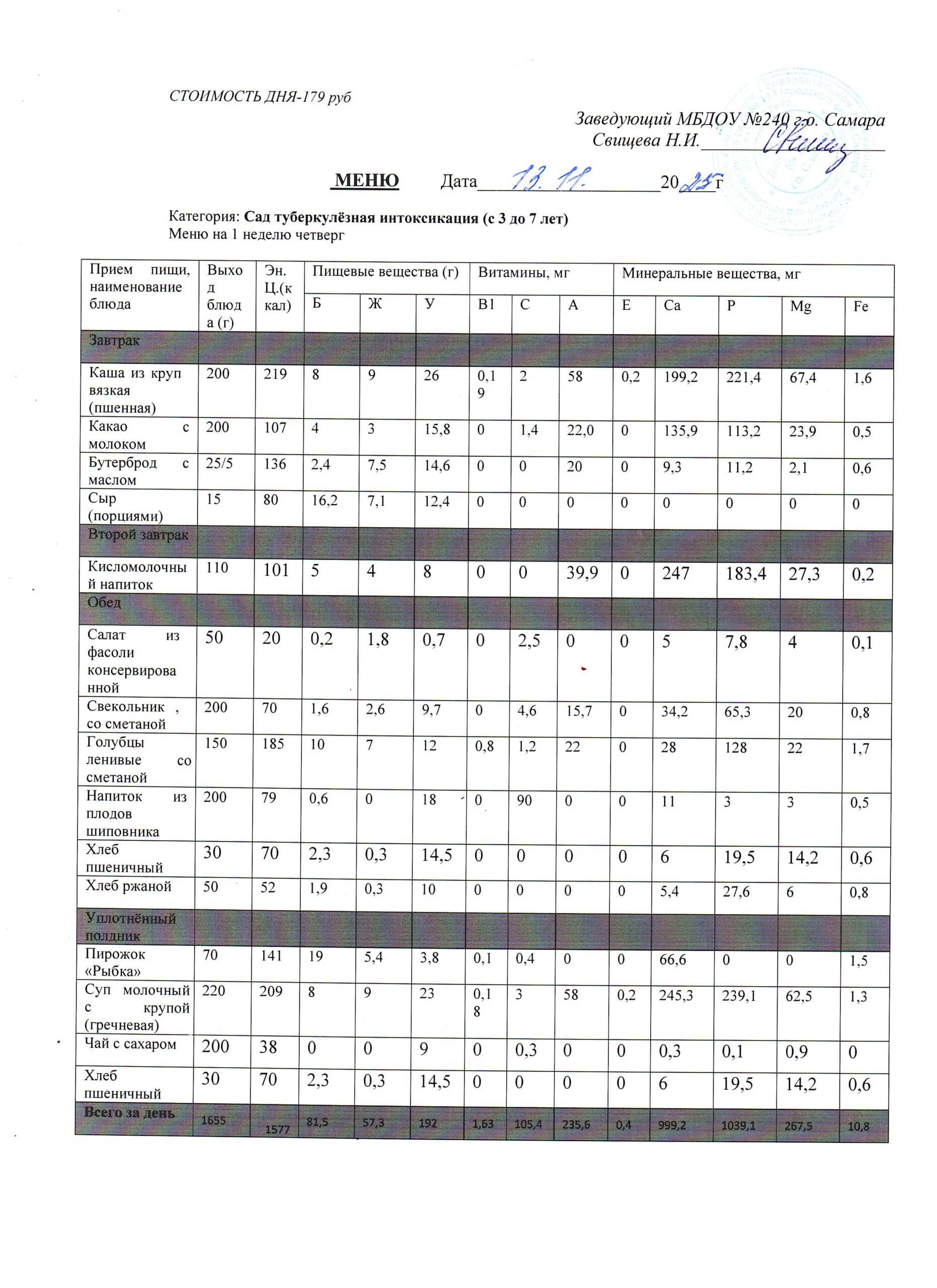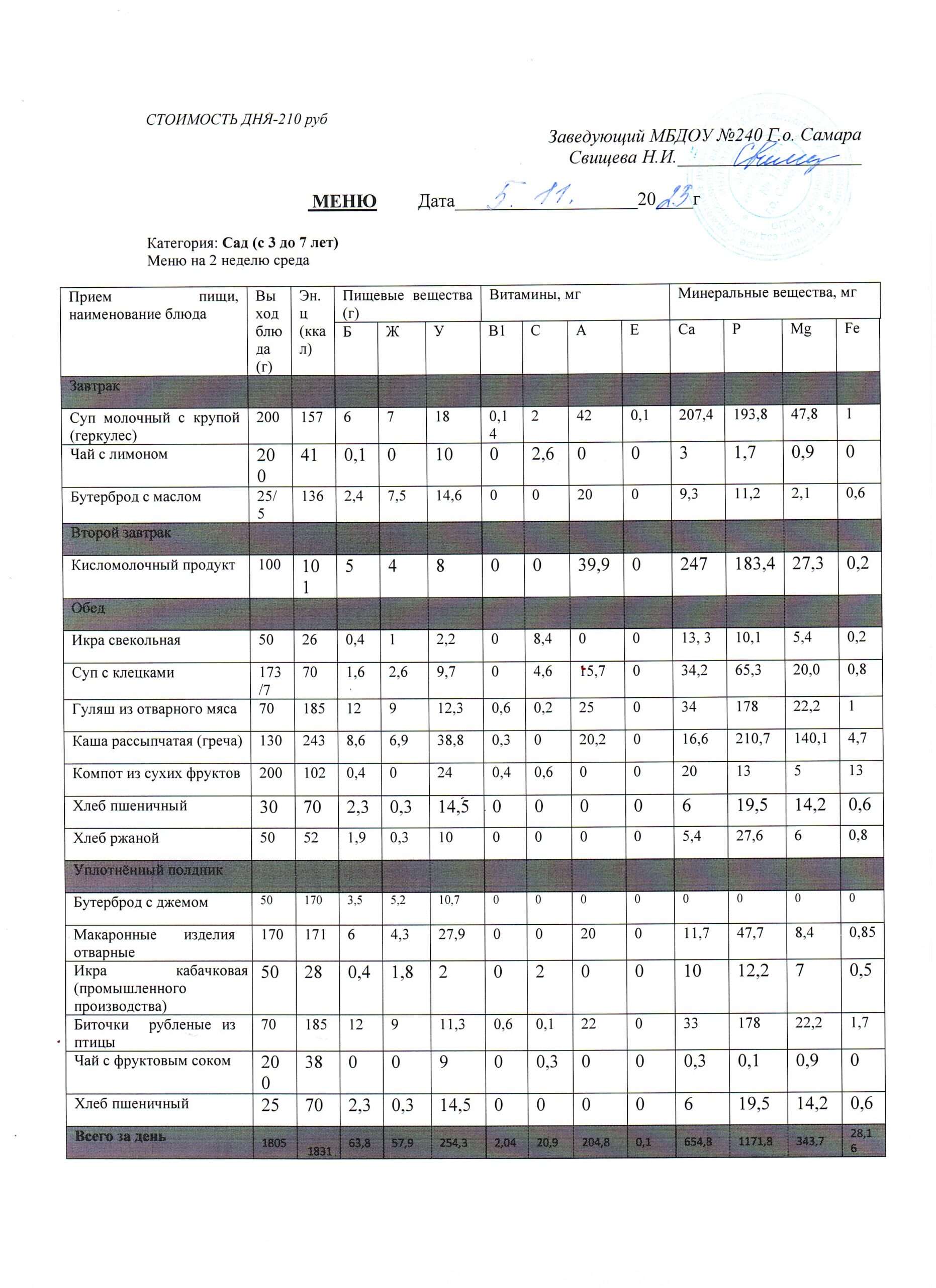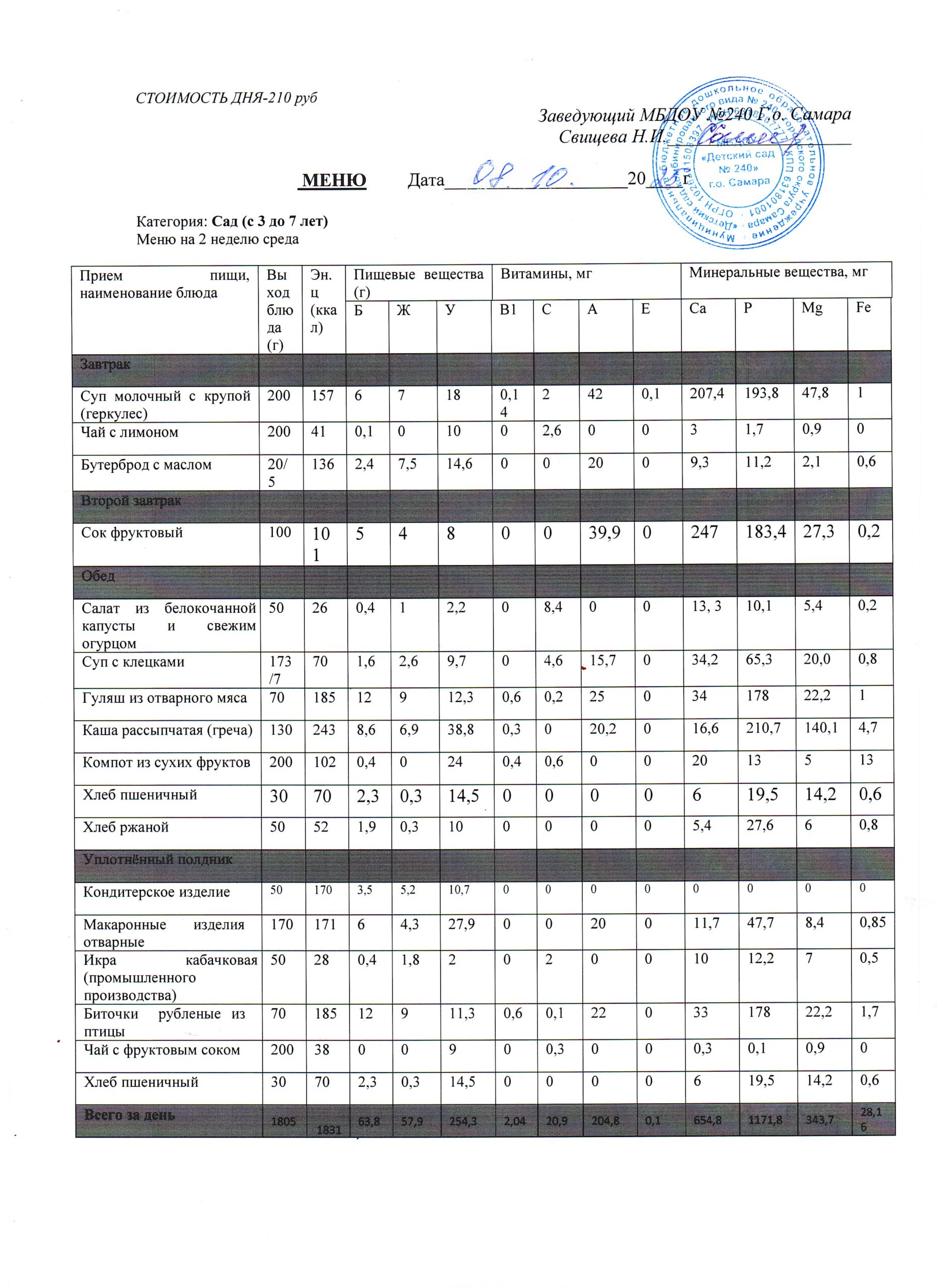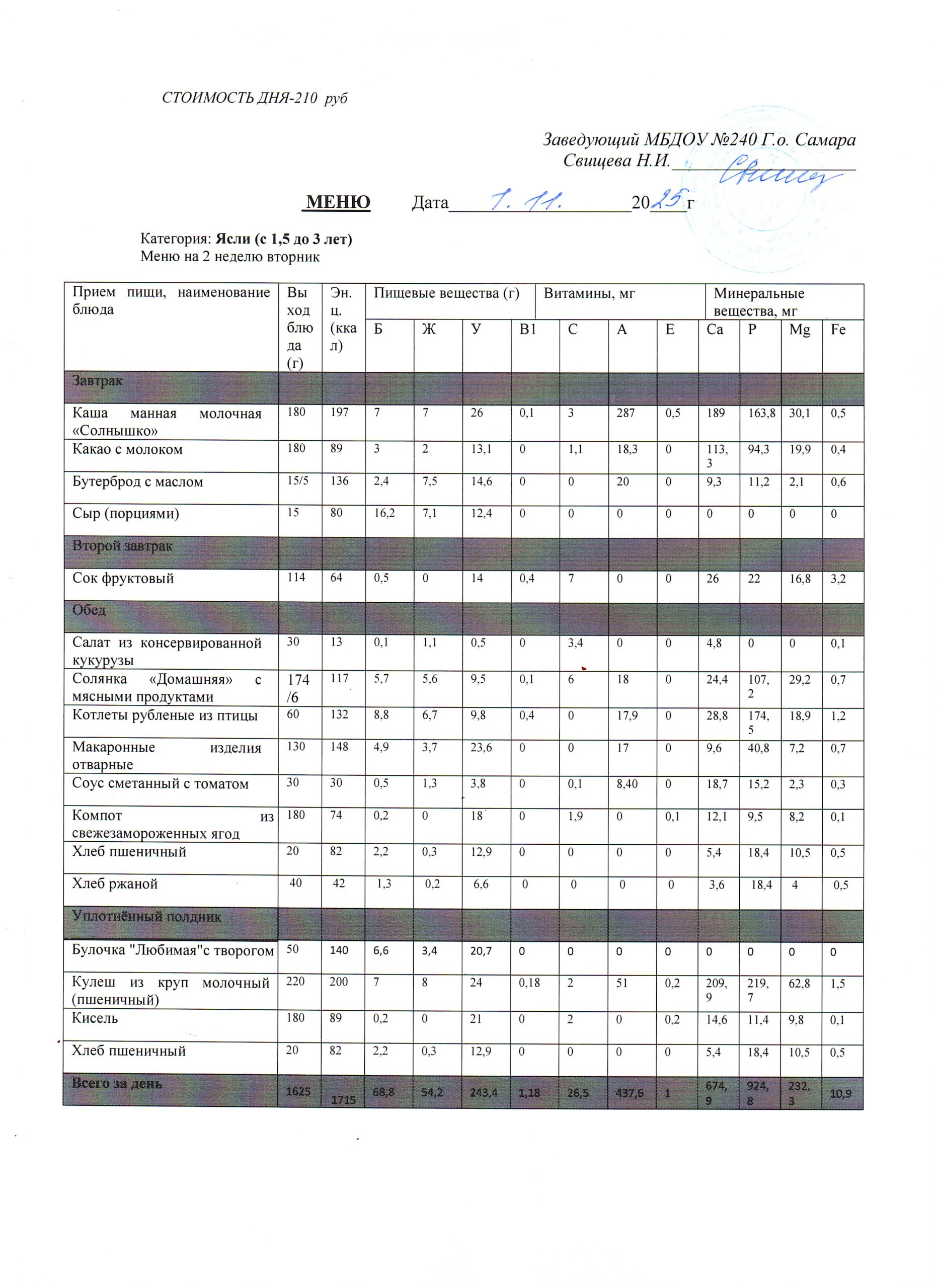 - Меню питания 16.10.2024г. (3-7 лет)