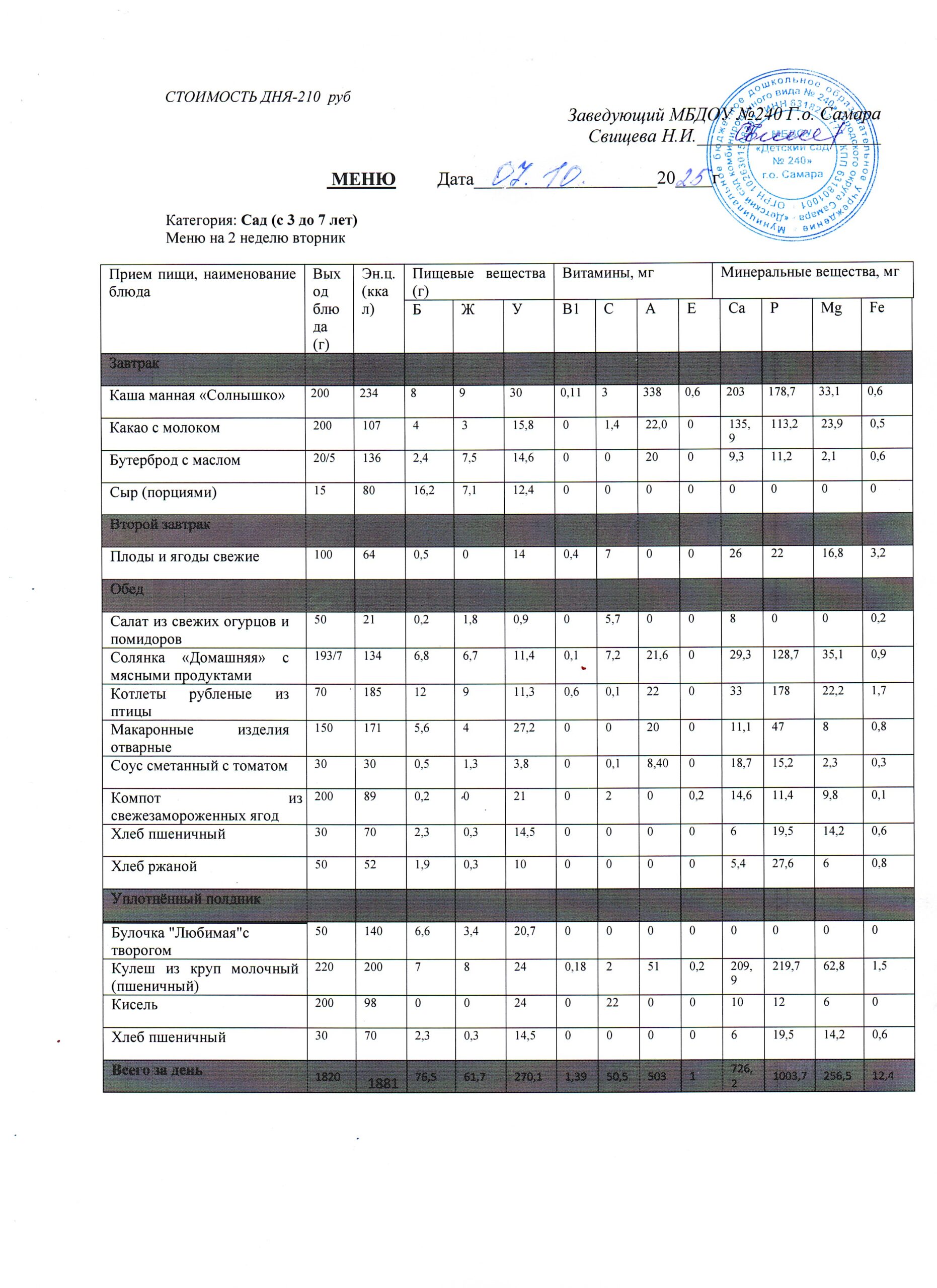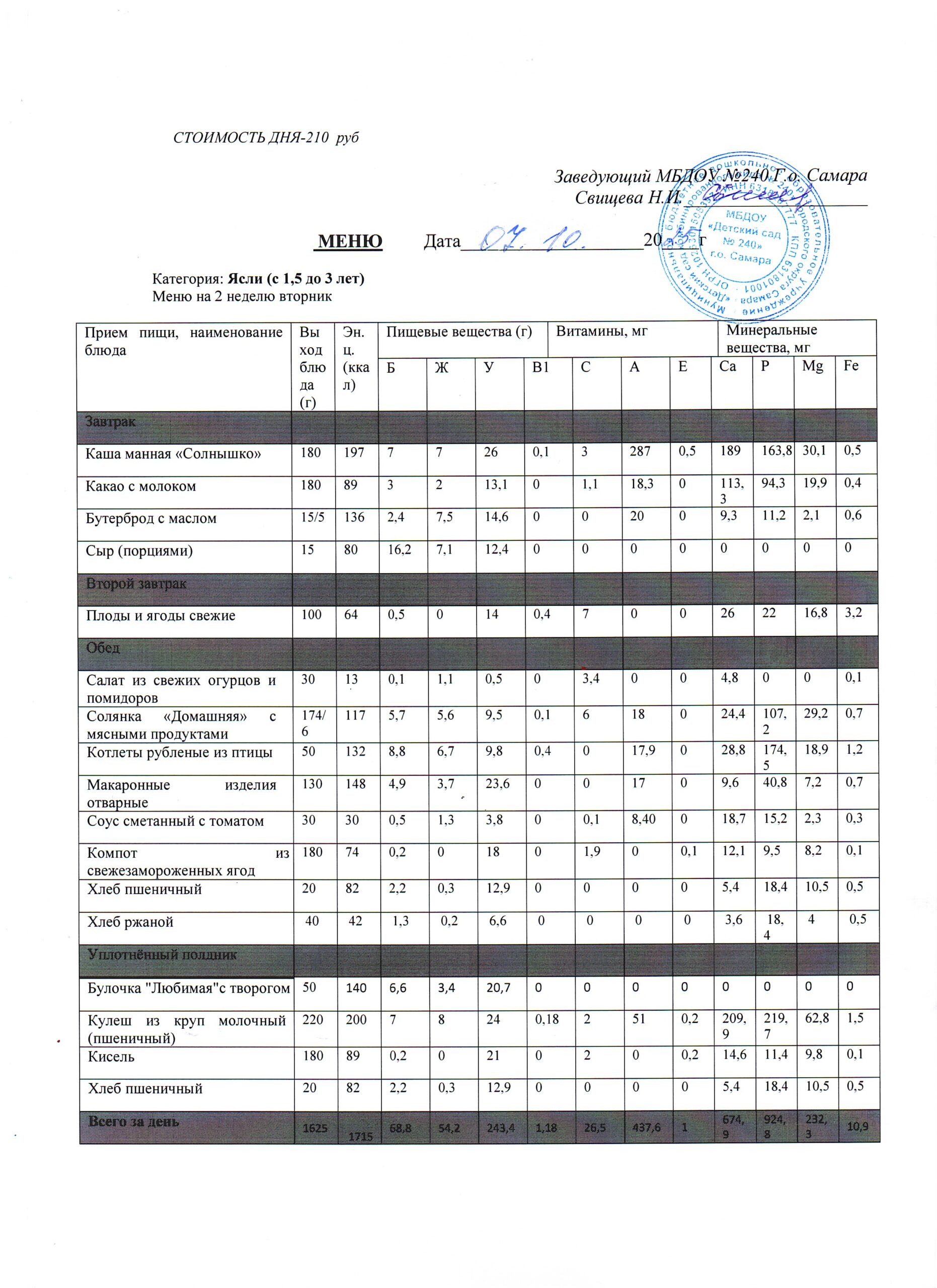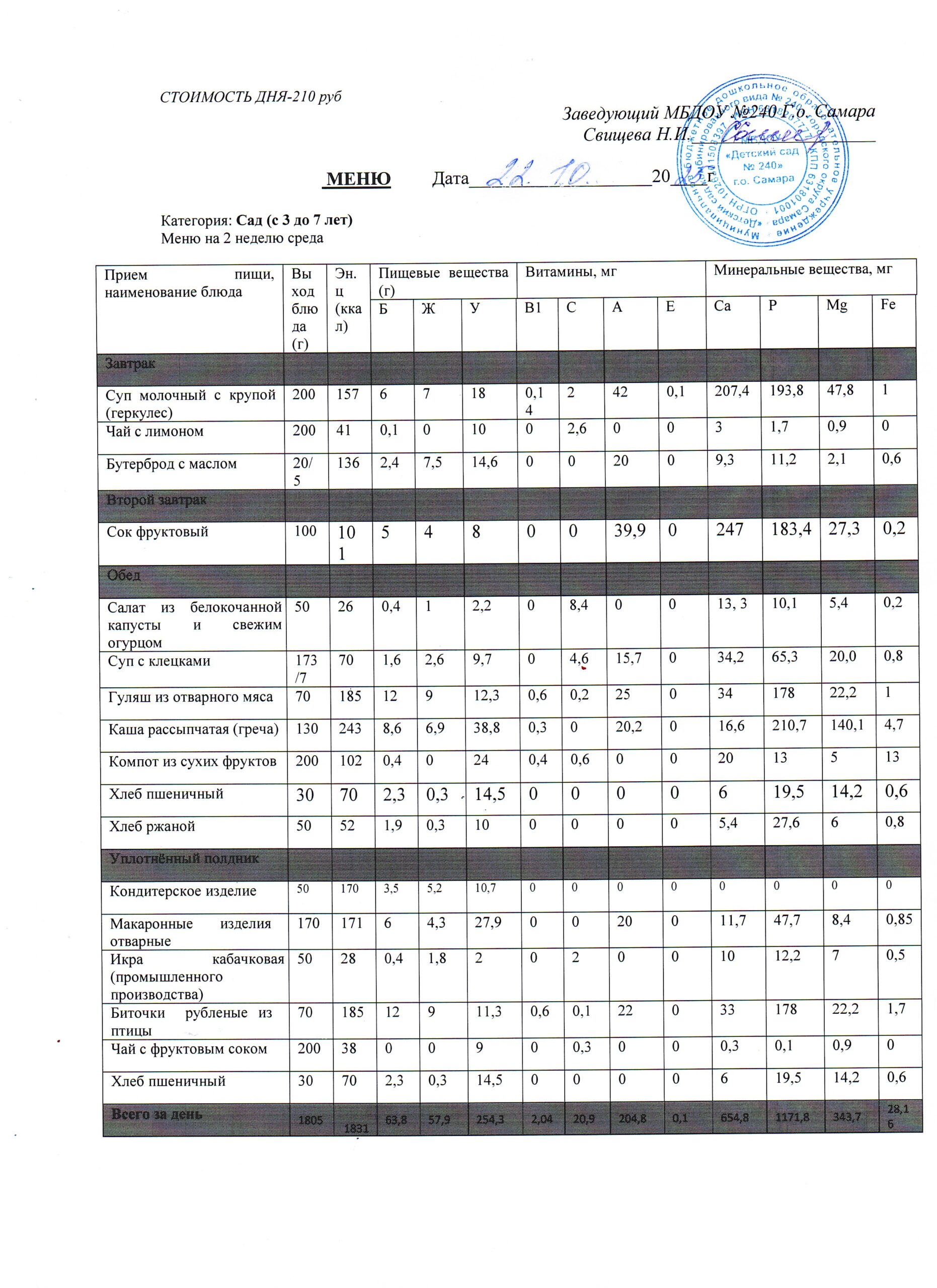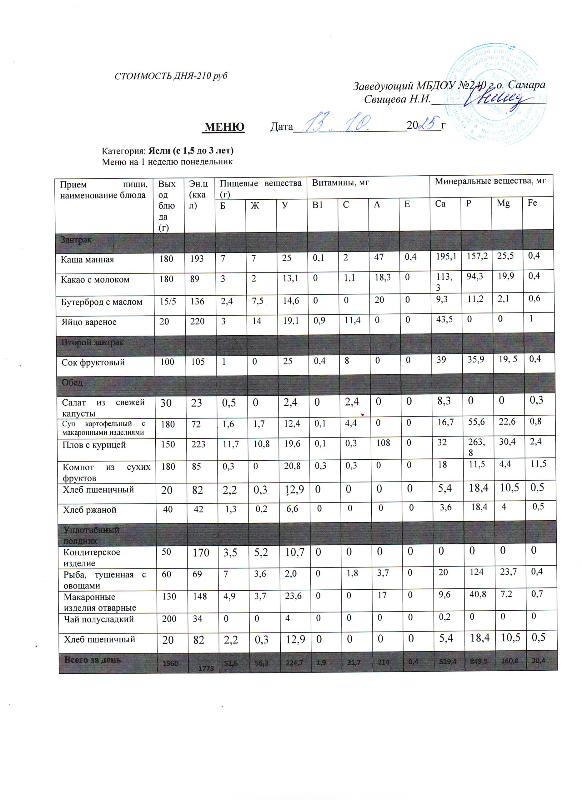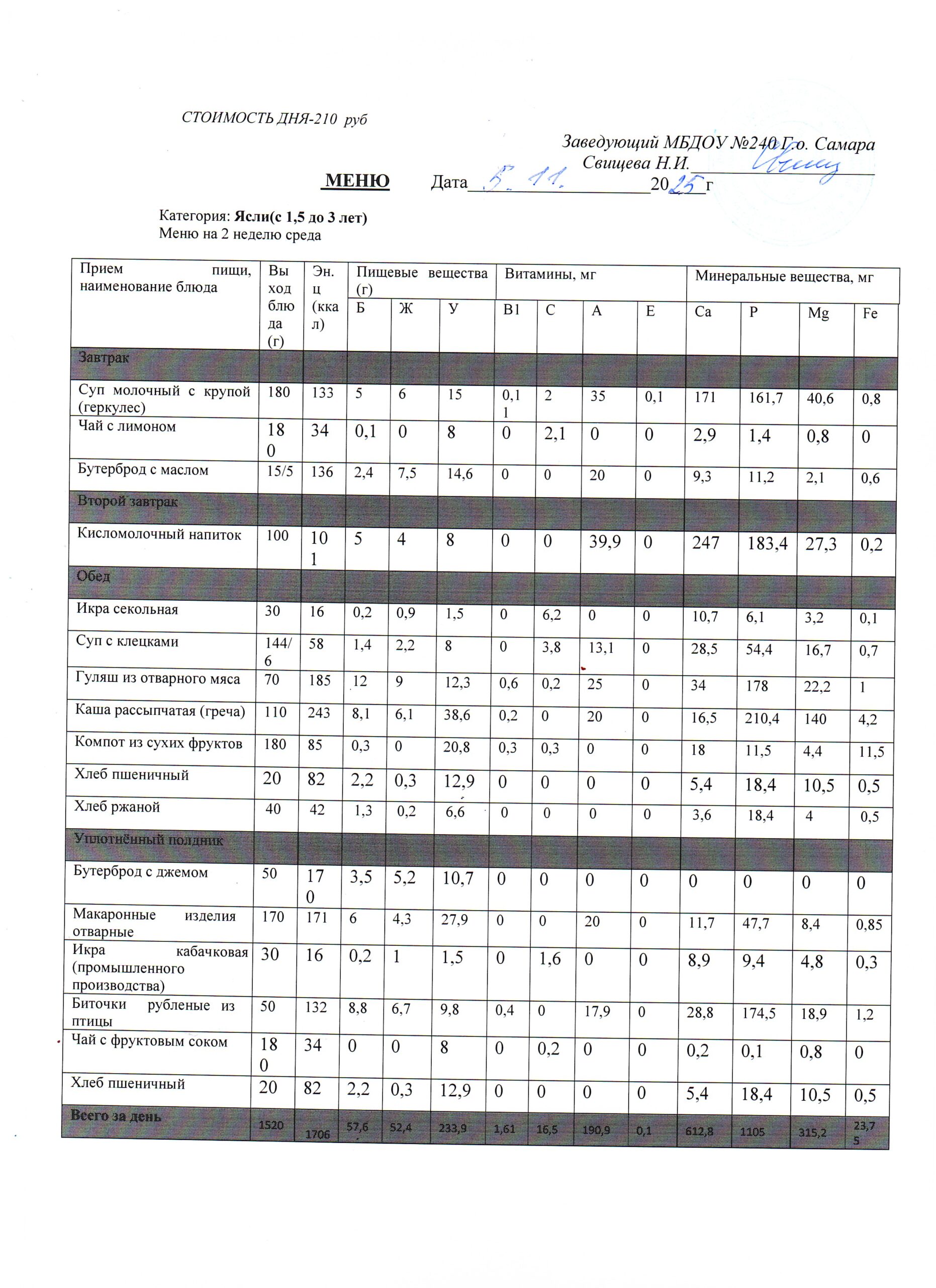 - Меню питания 16.10.2024г. (3-7 лет)