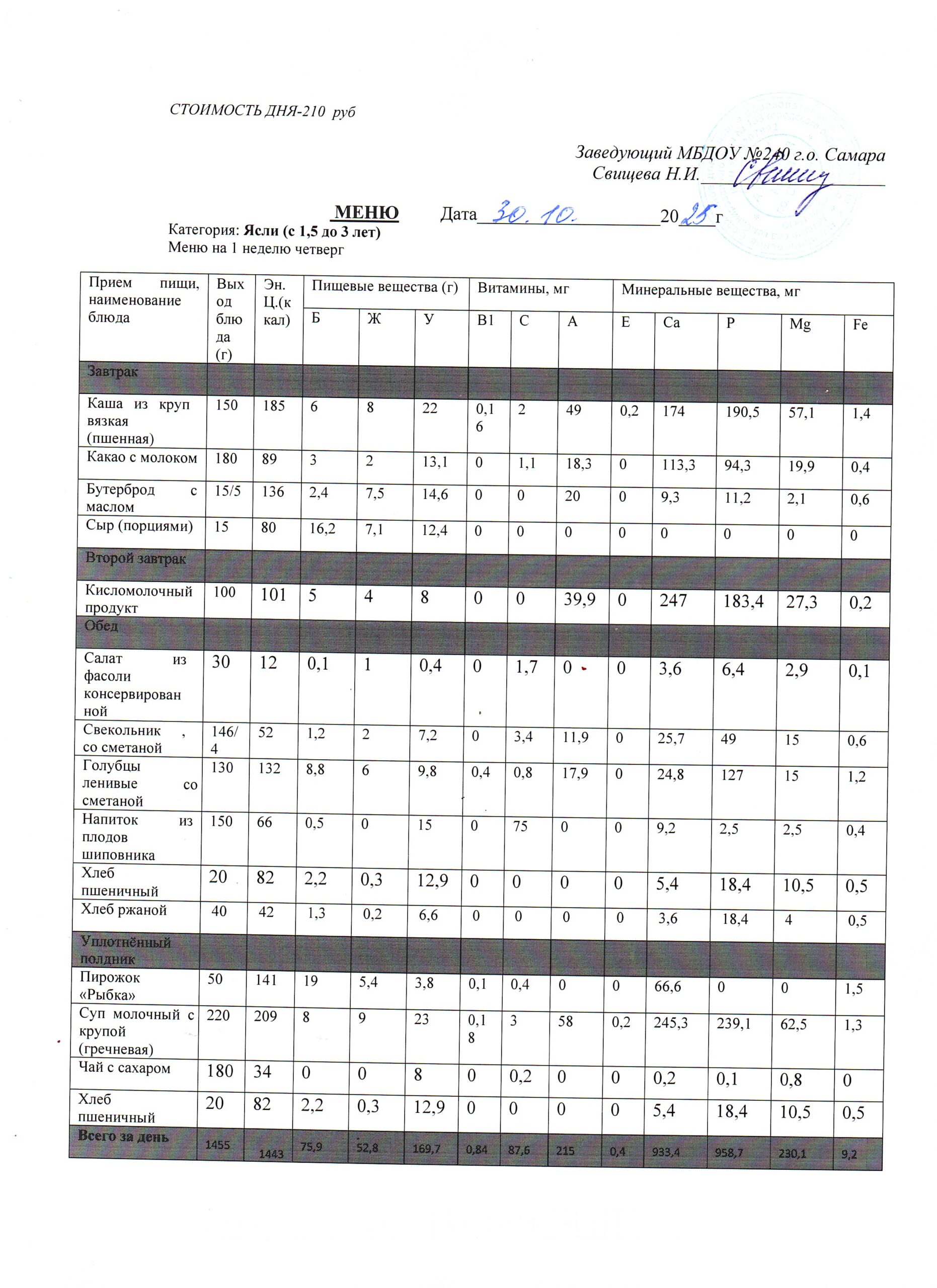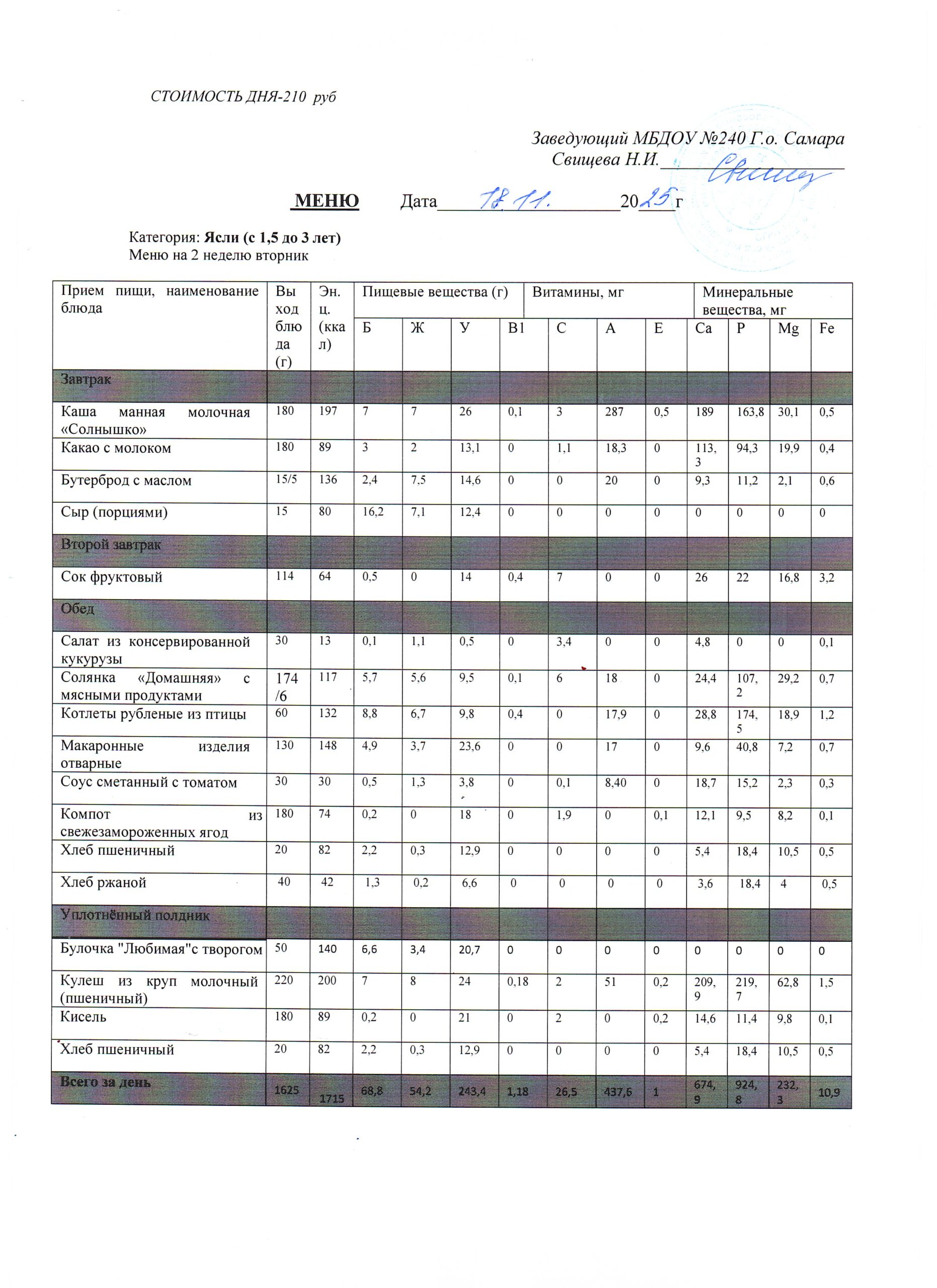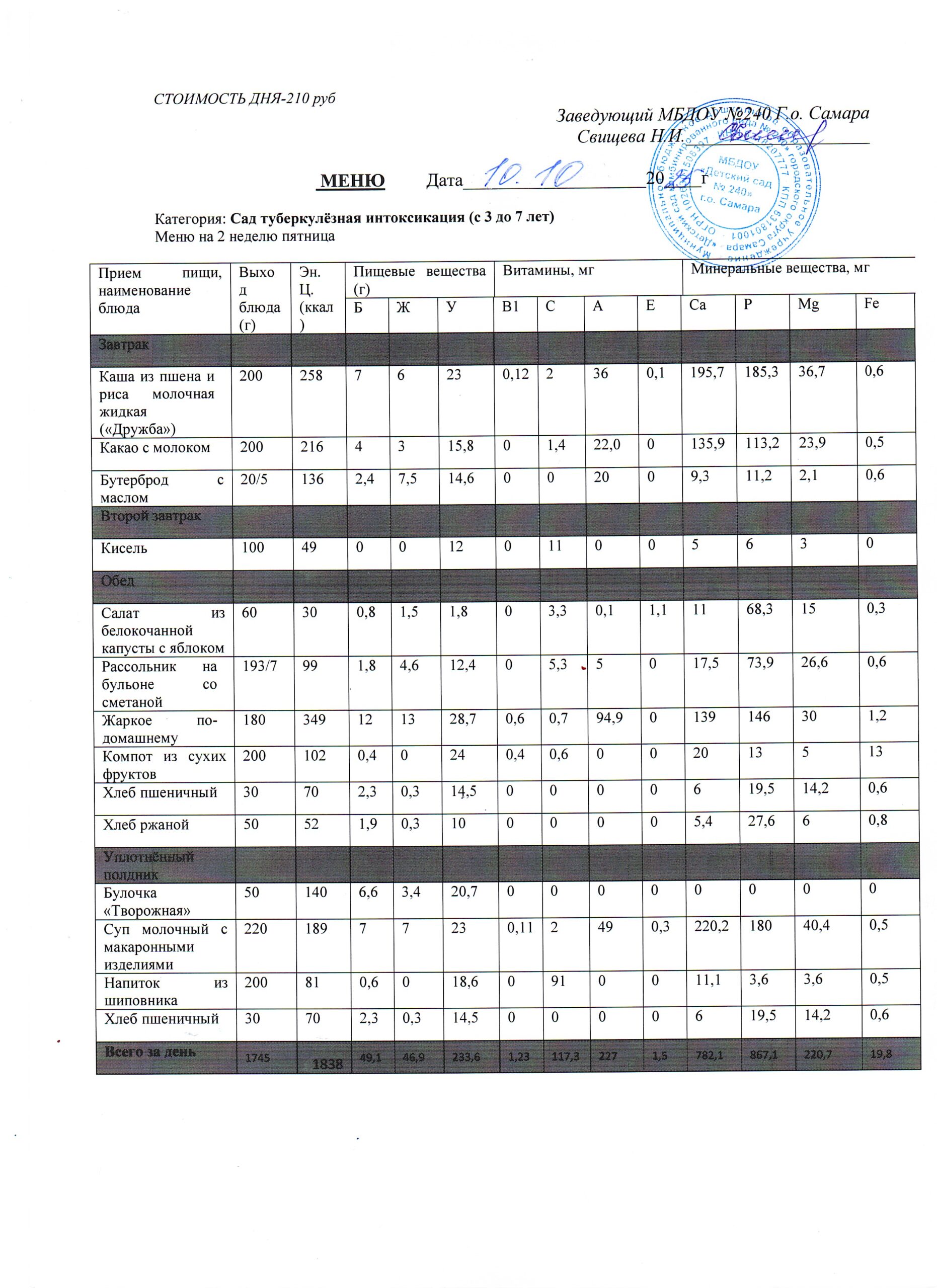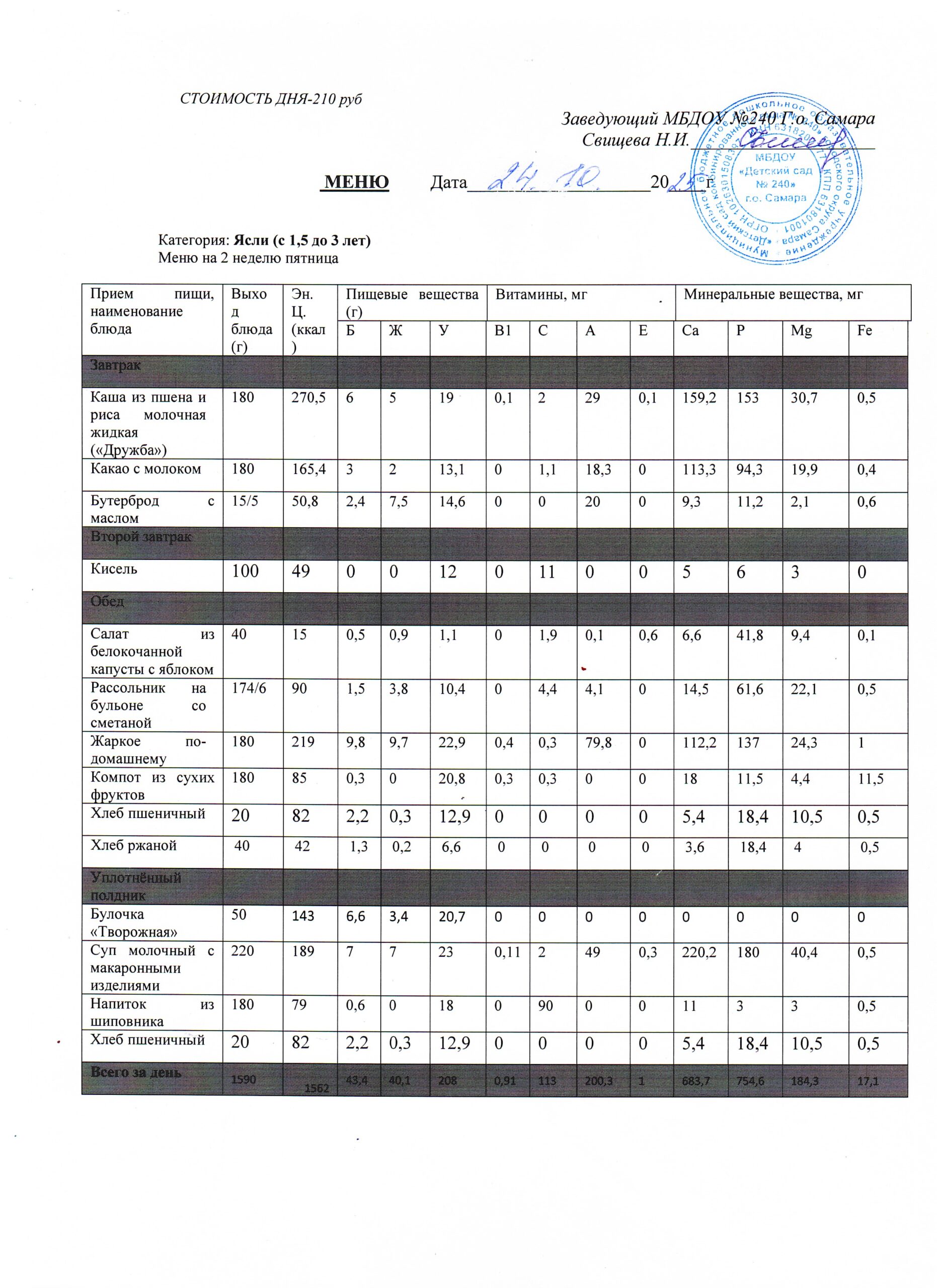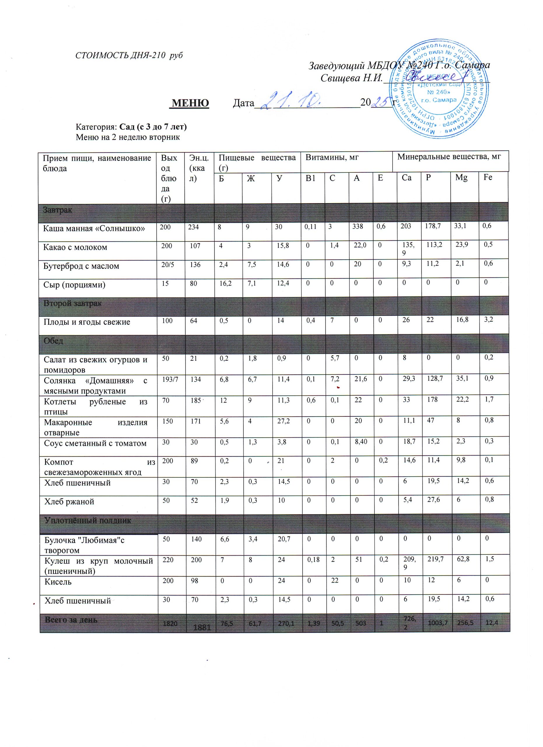 - Меню питания 16.10.2024г. (3-7 лет)
