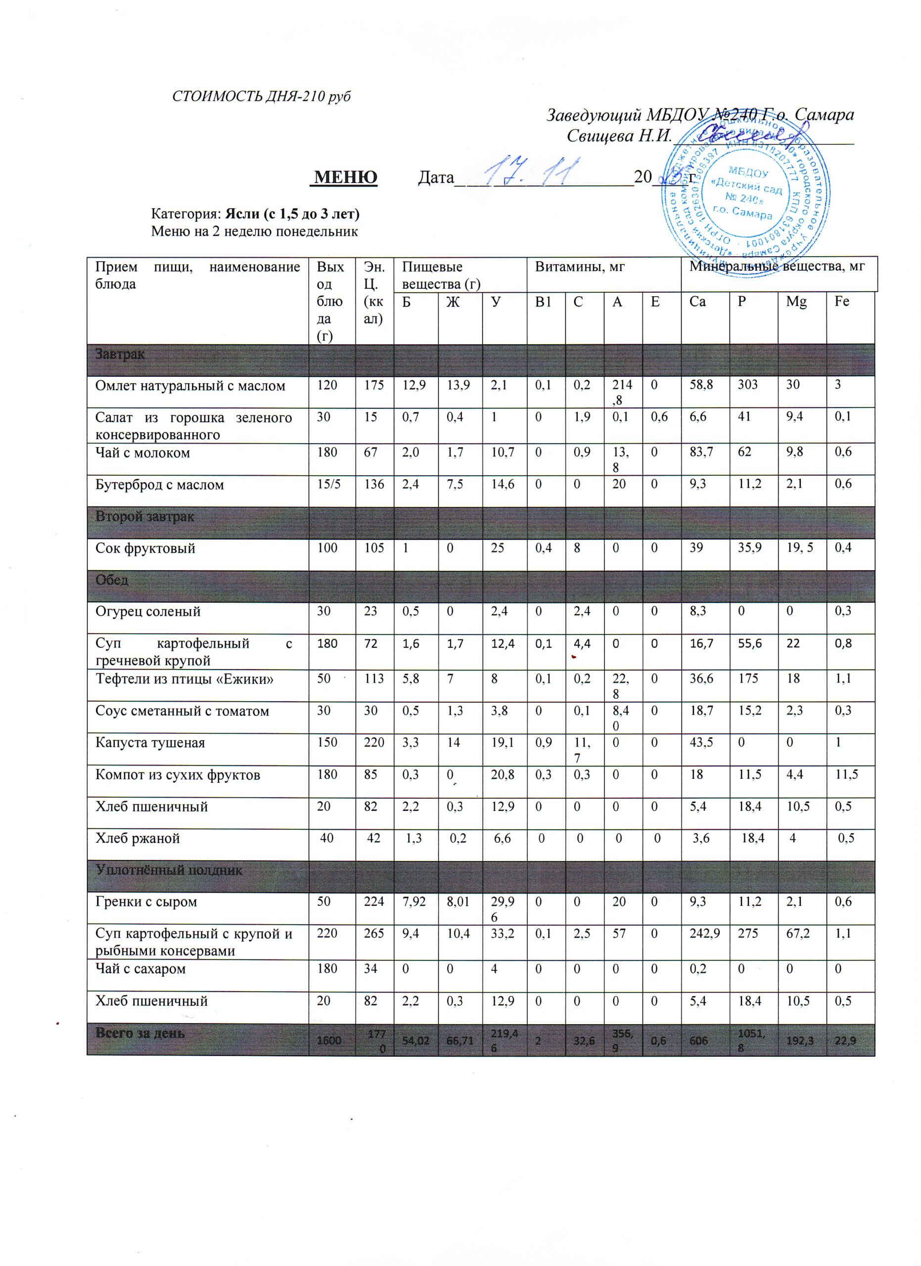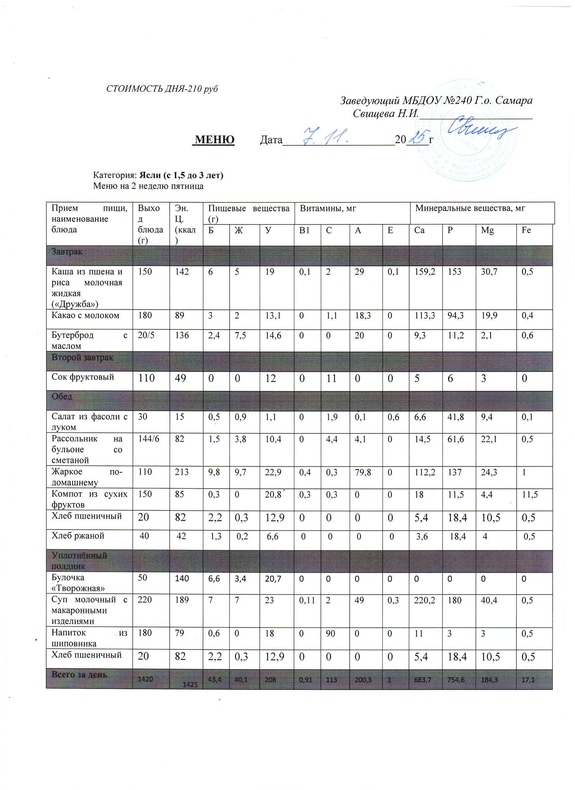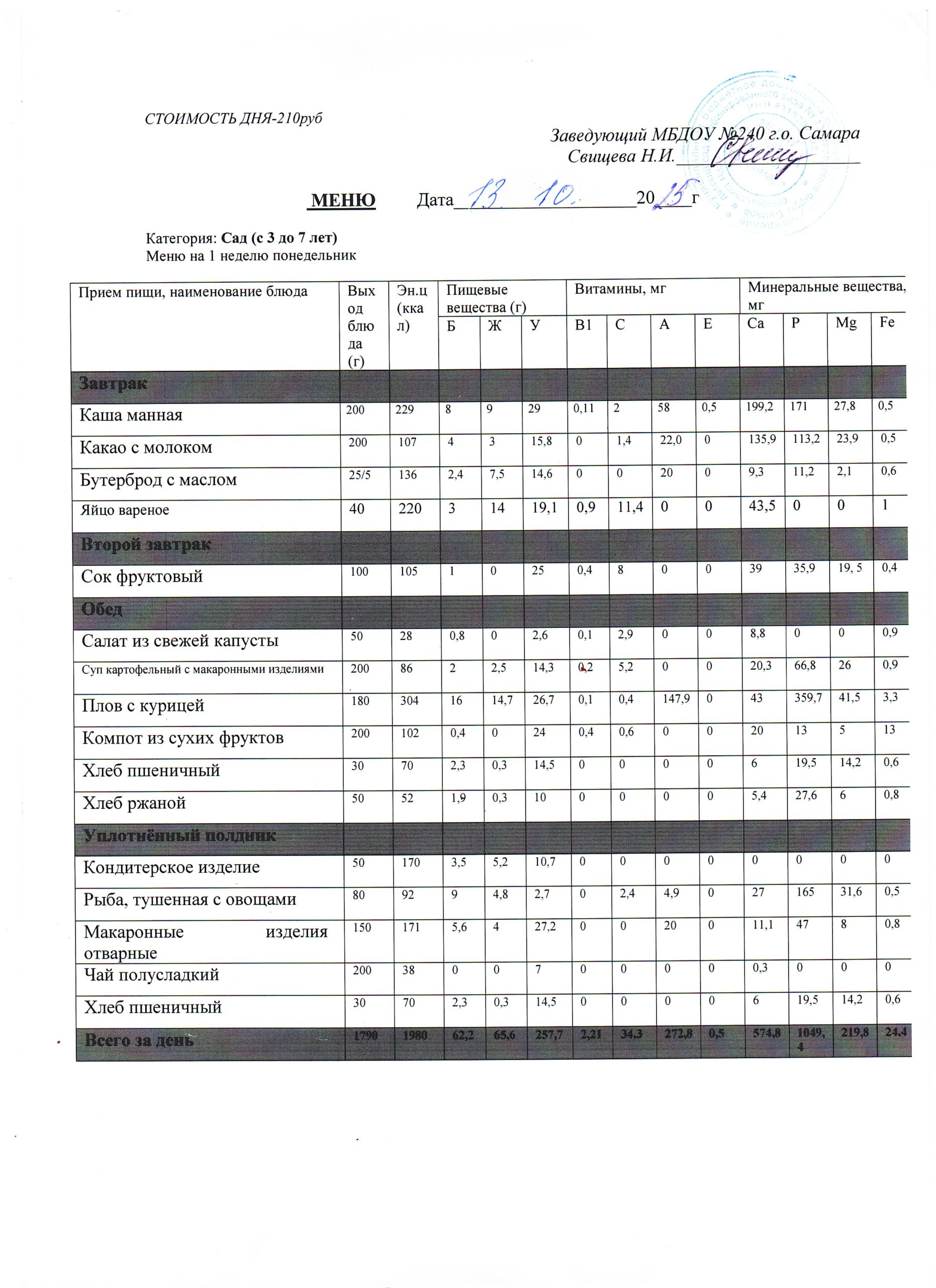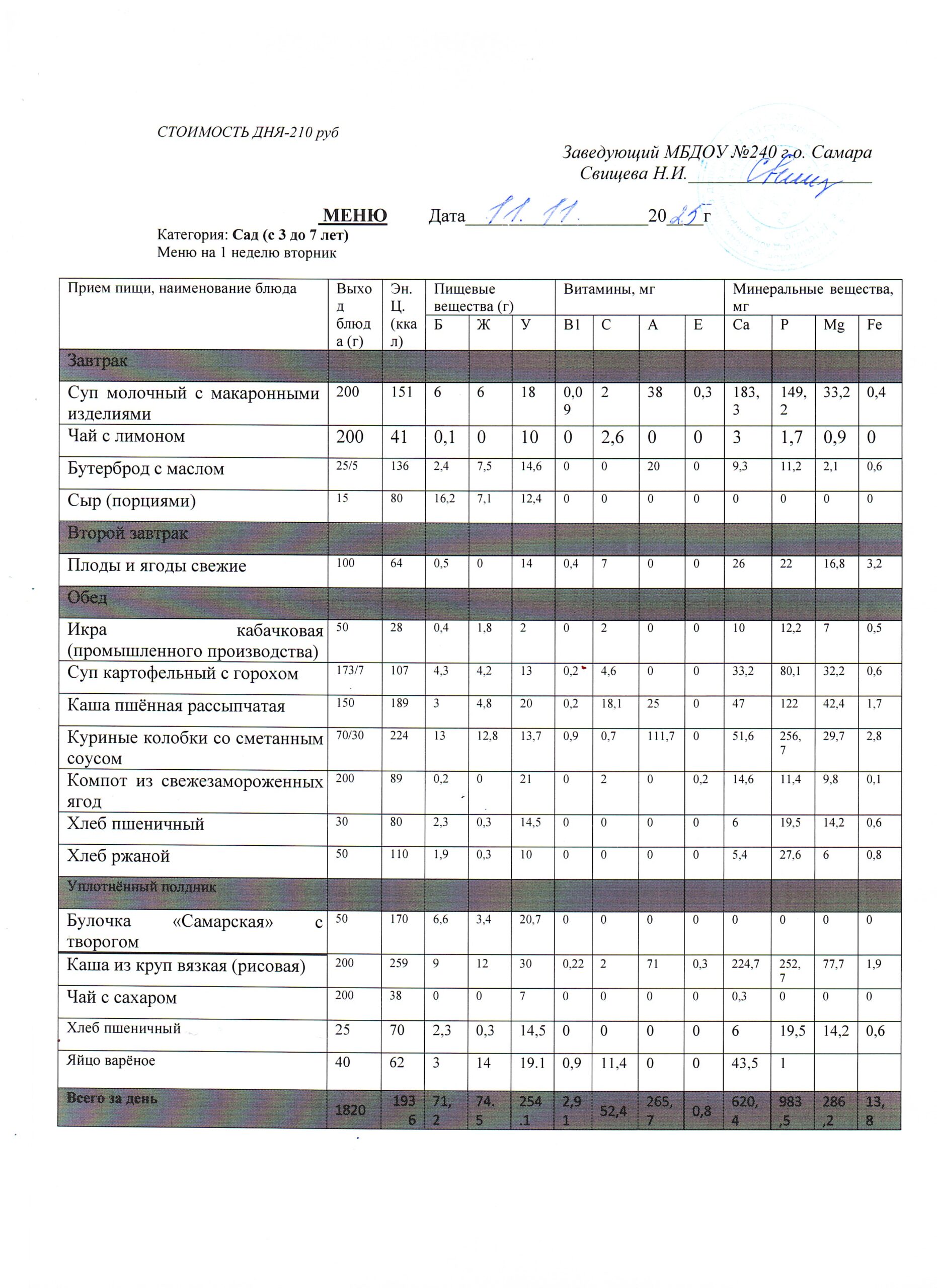 - Меню питания 16.10.2024г. (3-7 лет)