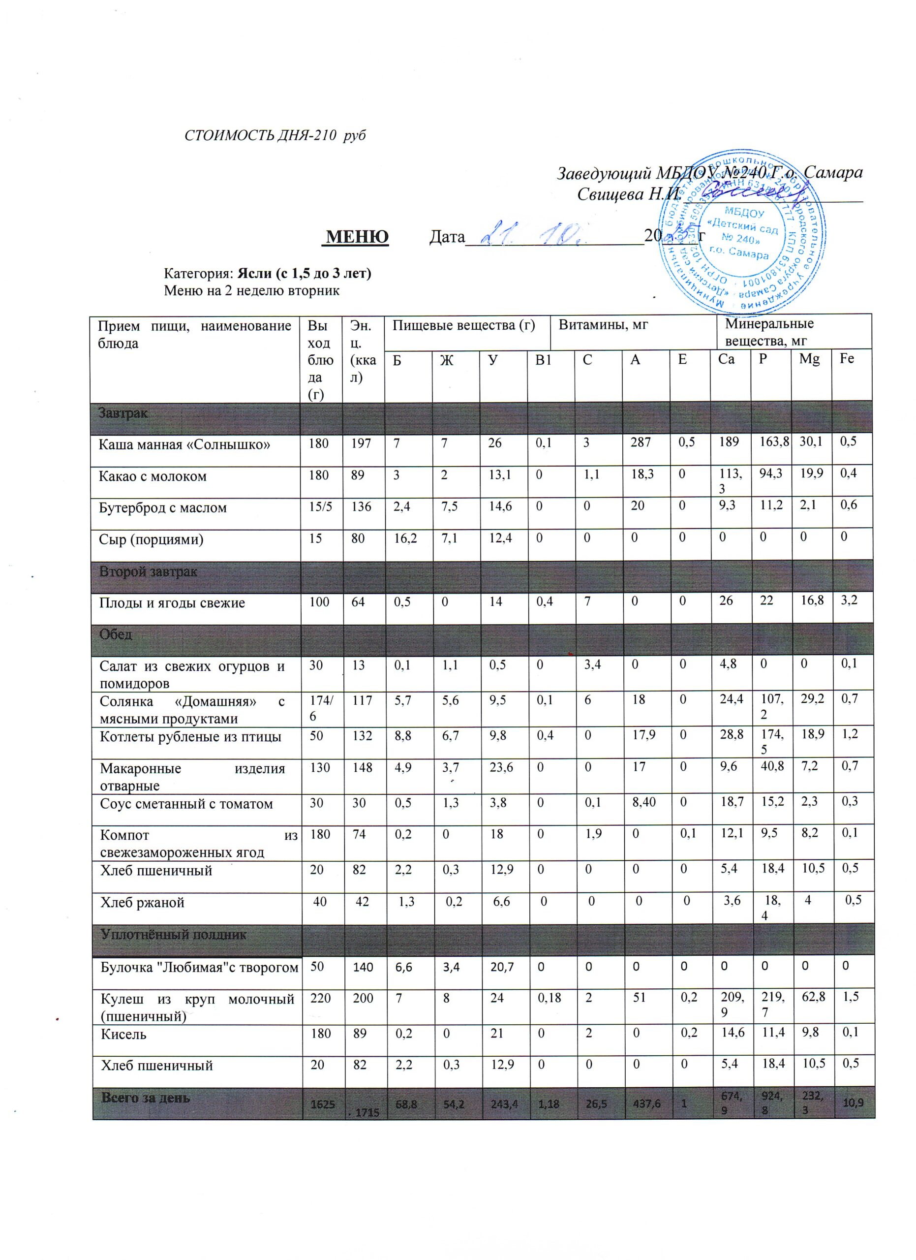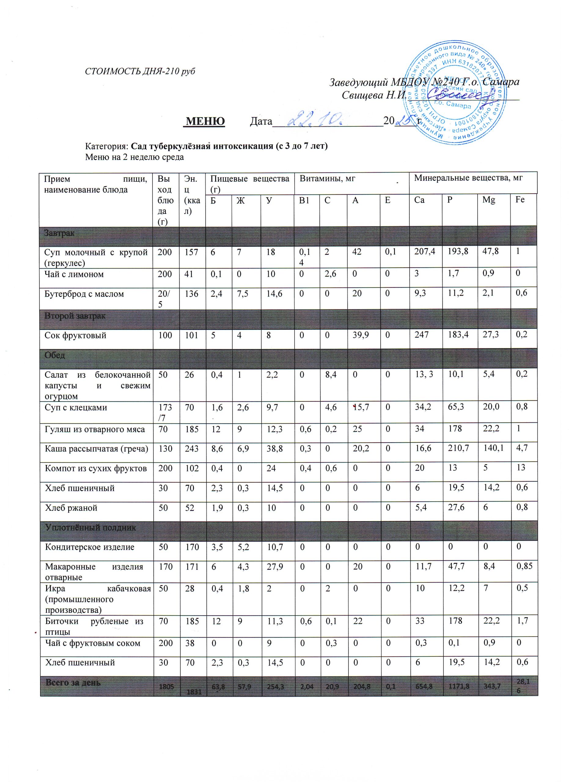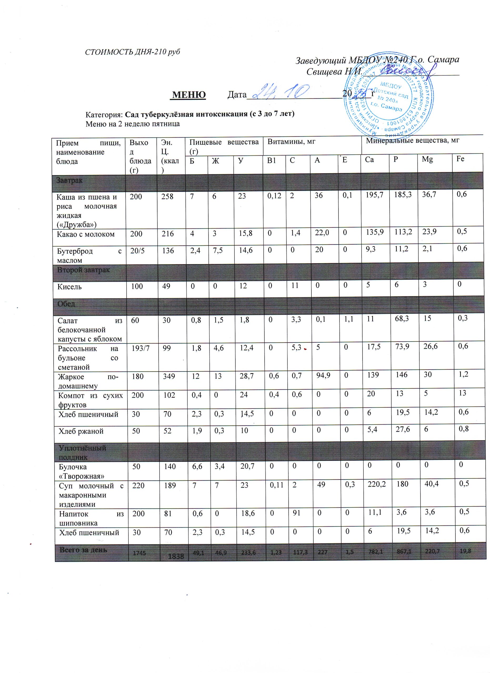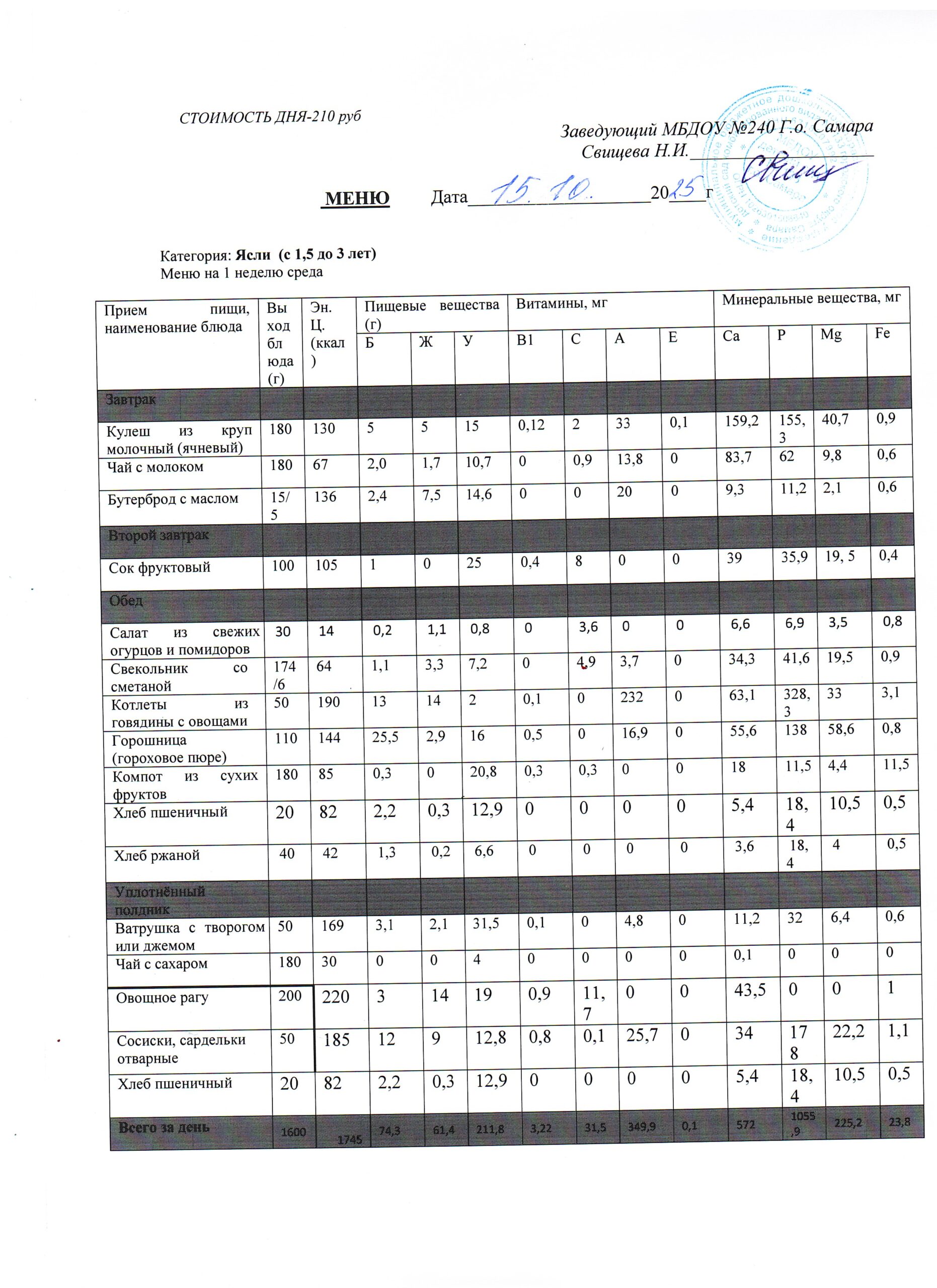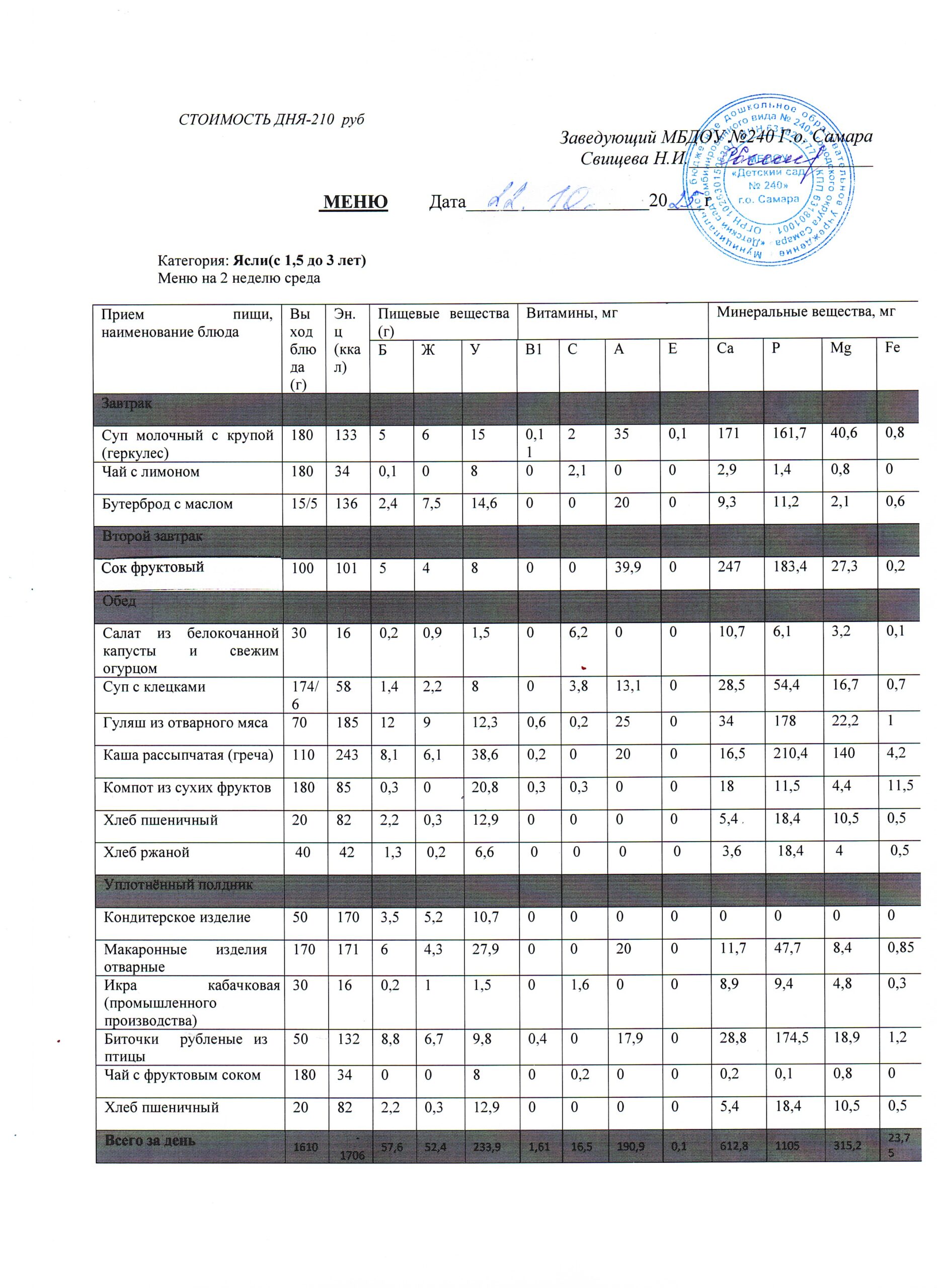 - Меню питания 16.10.2024г. (3-7 лет)