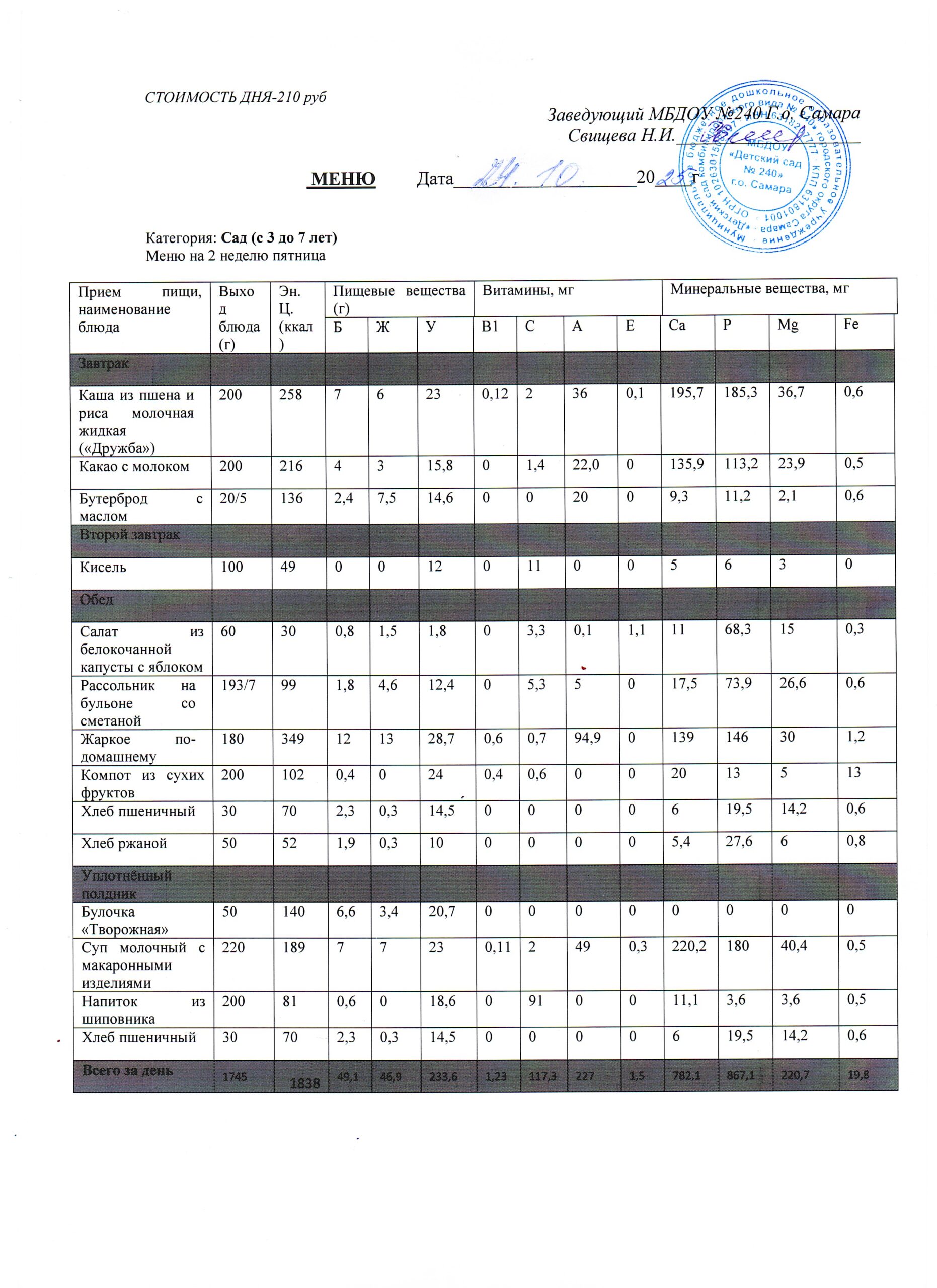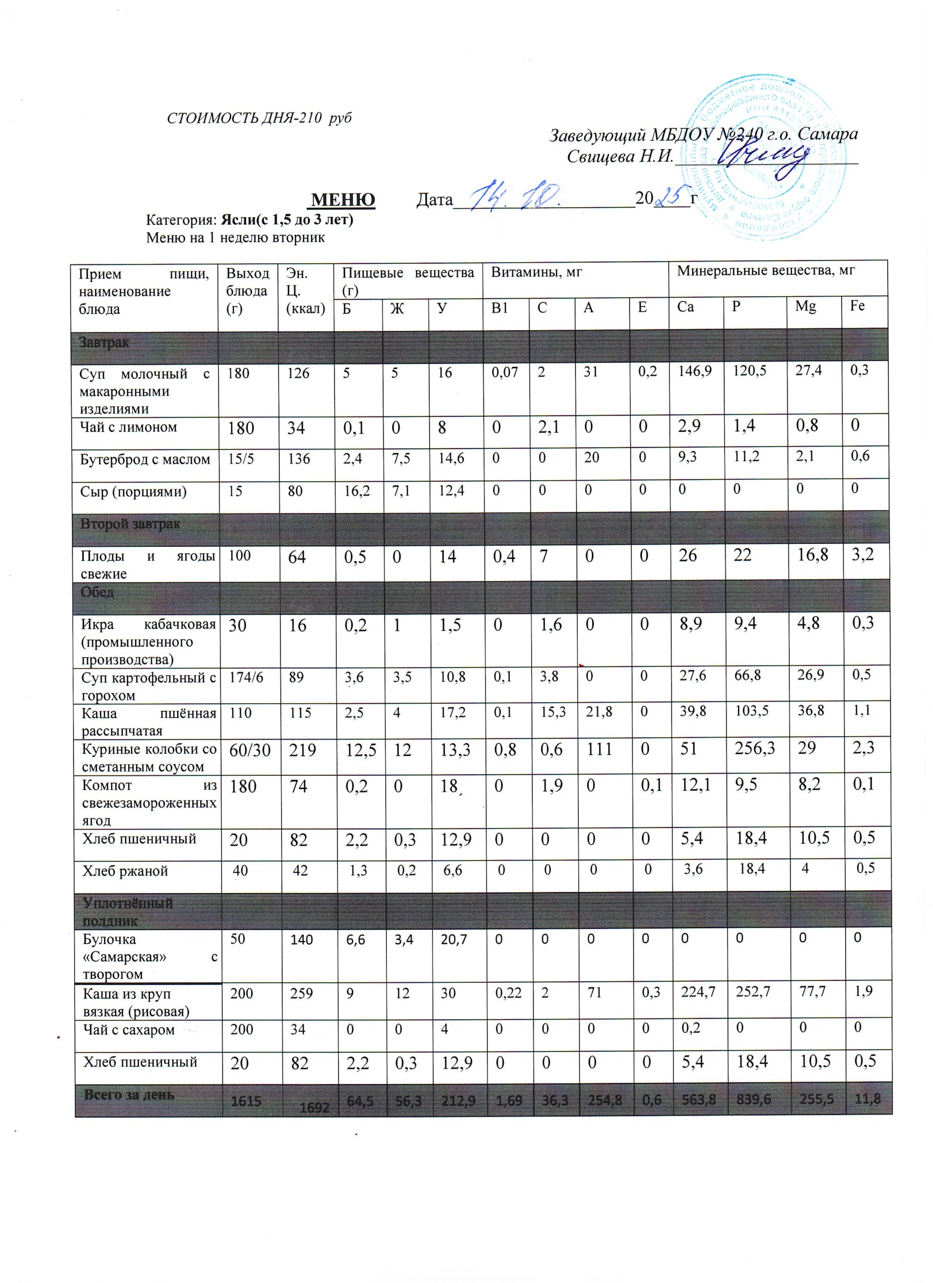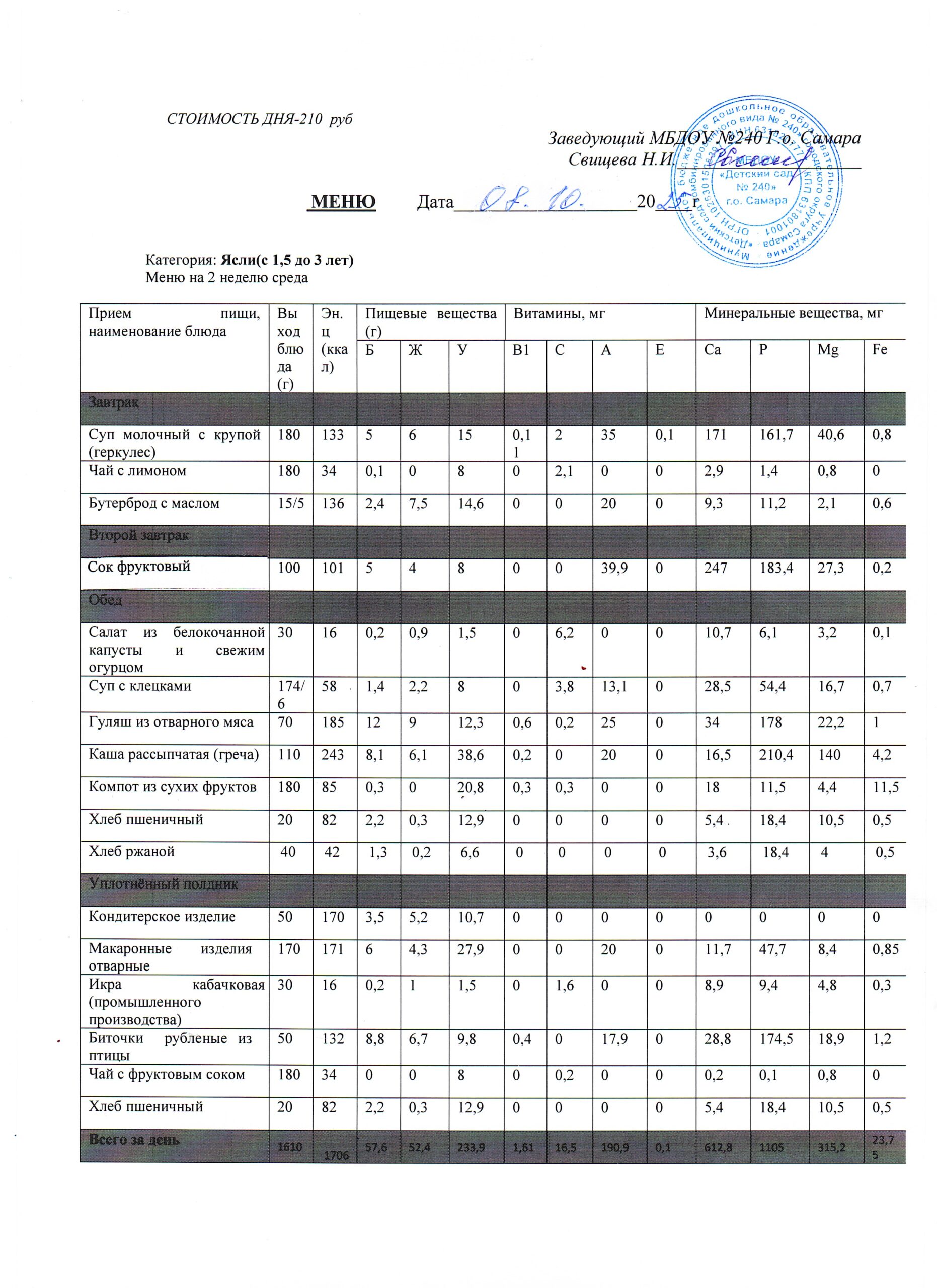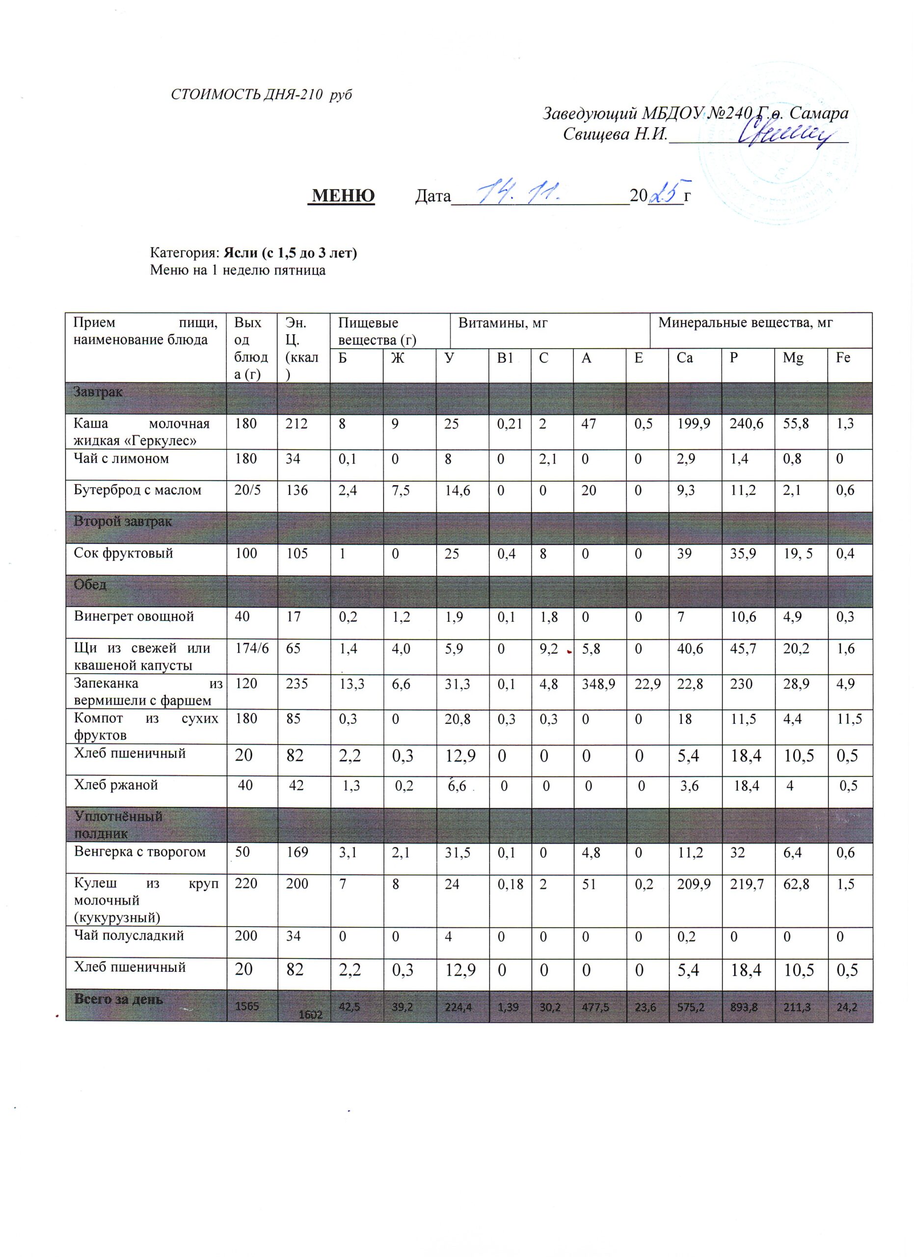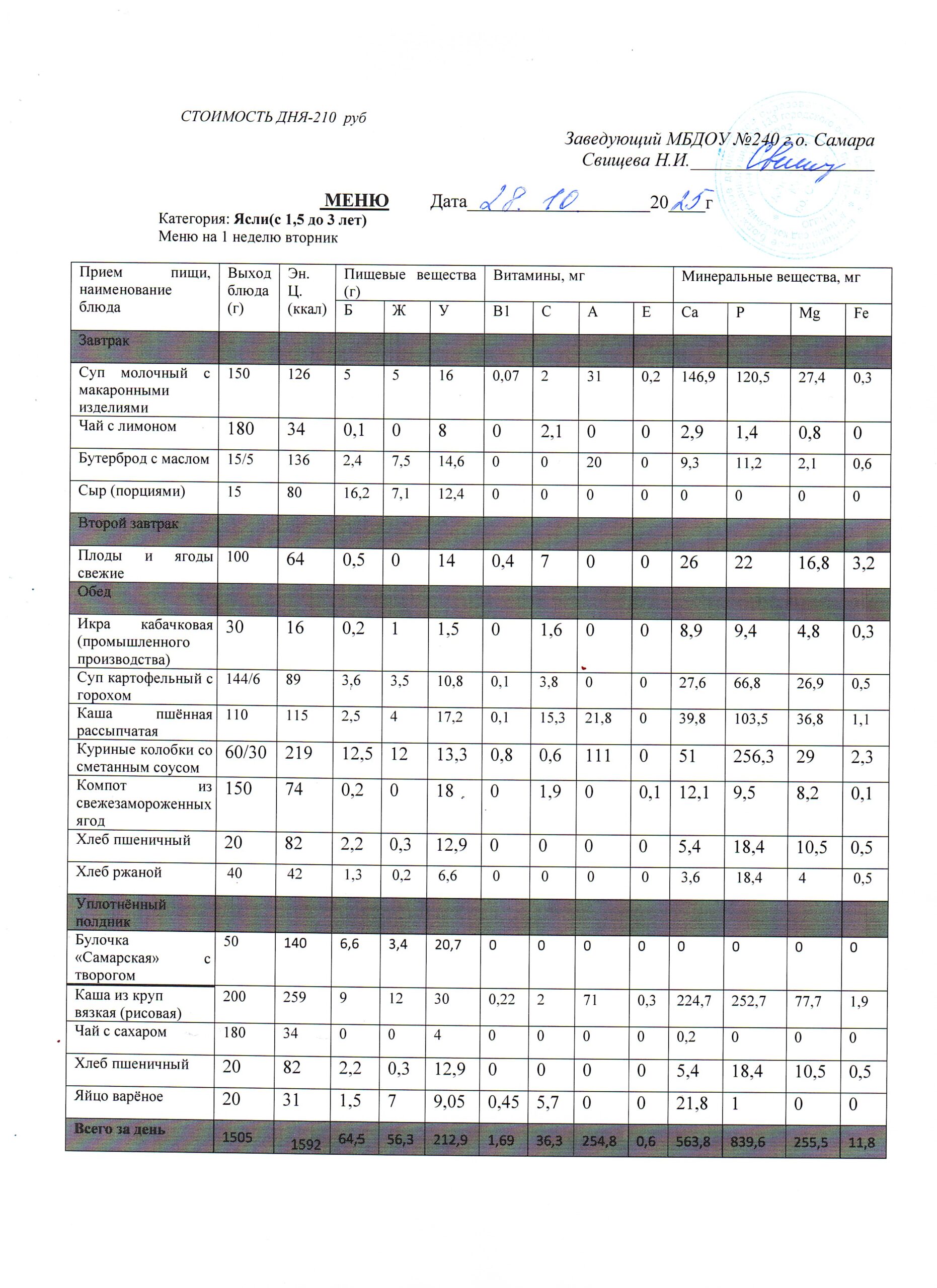 - Меню питания 16.10.2024г. (3-7 лет)