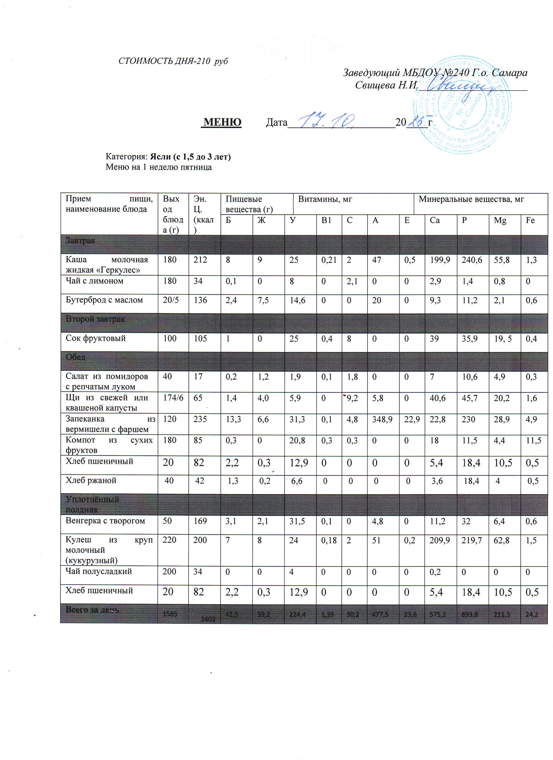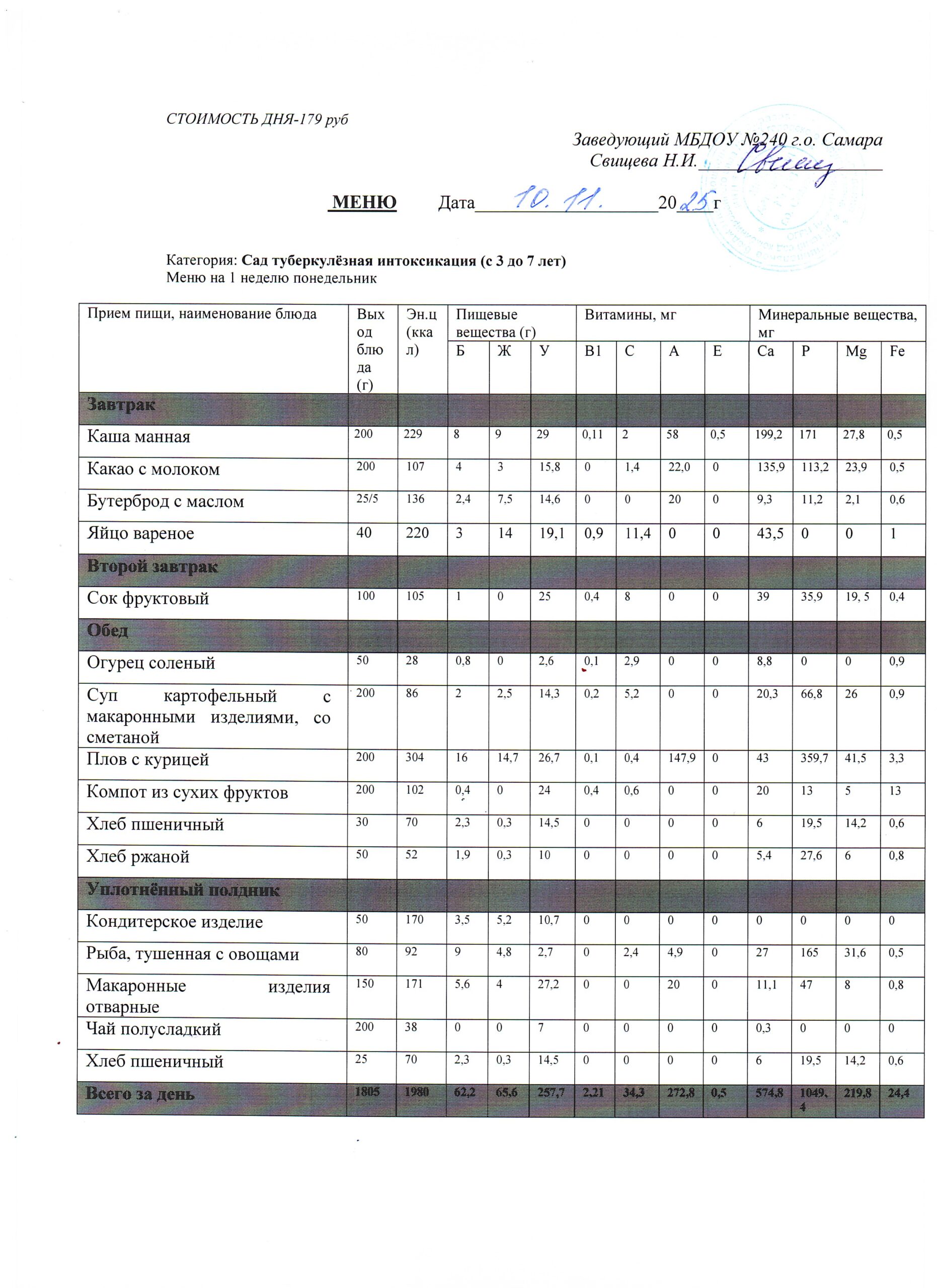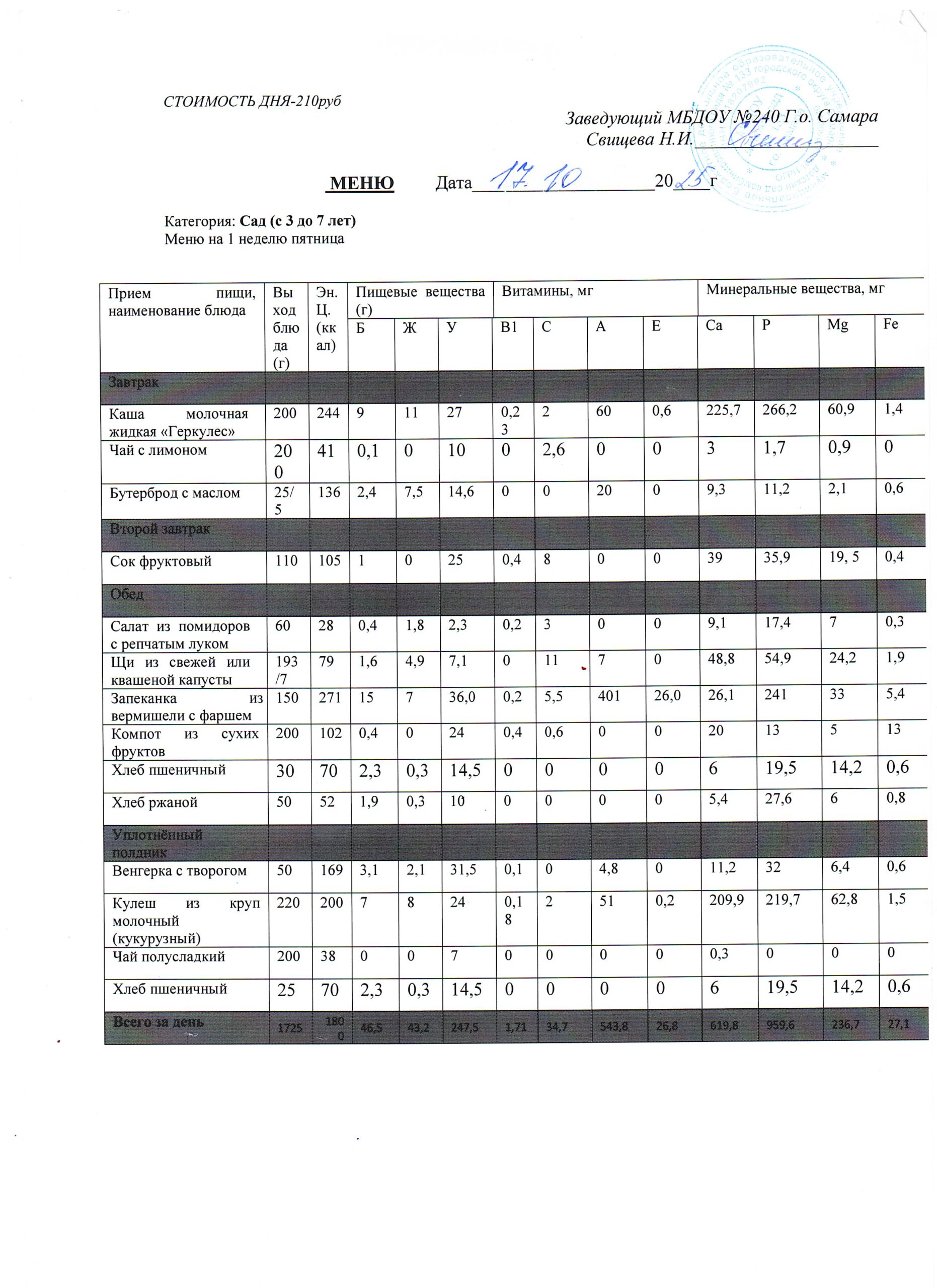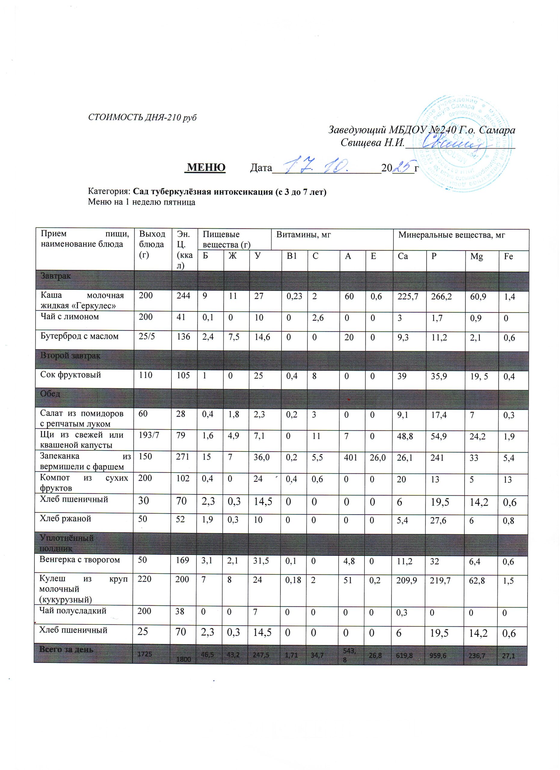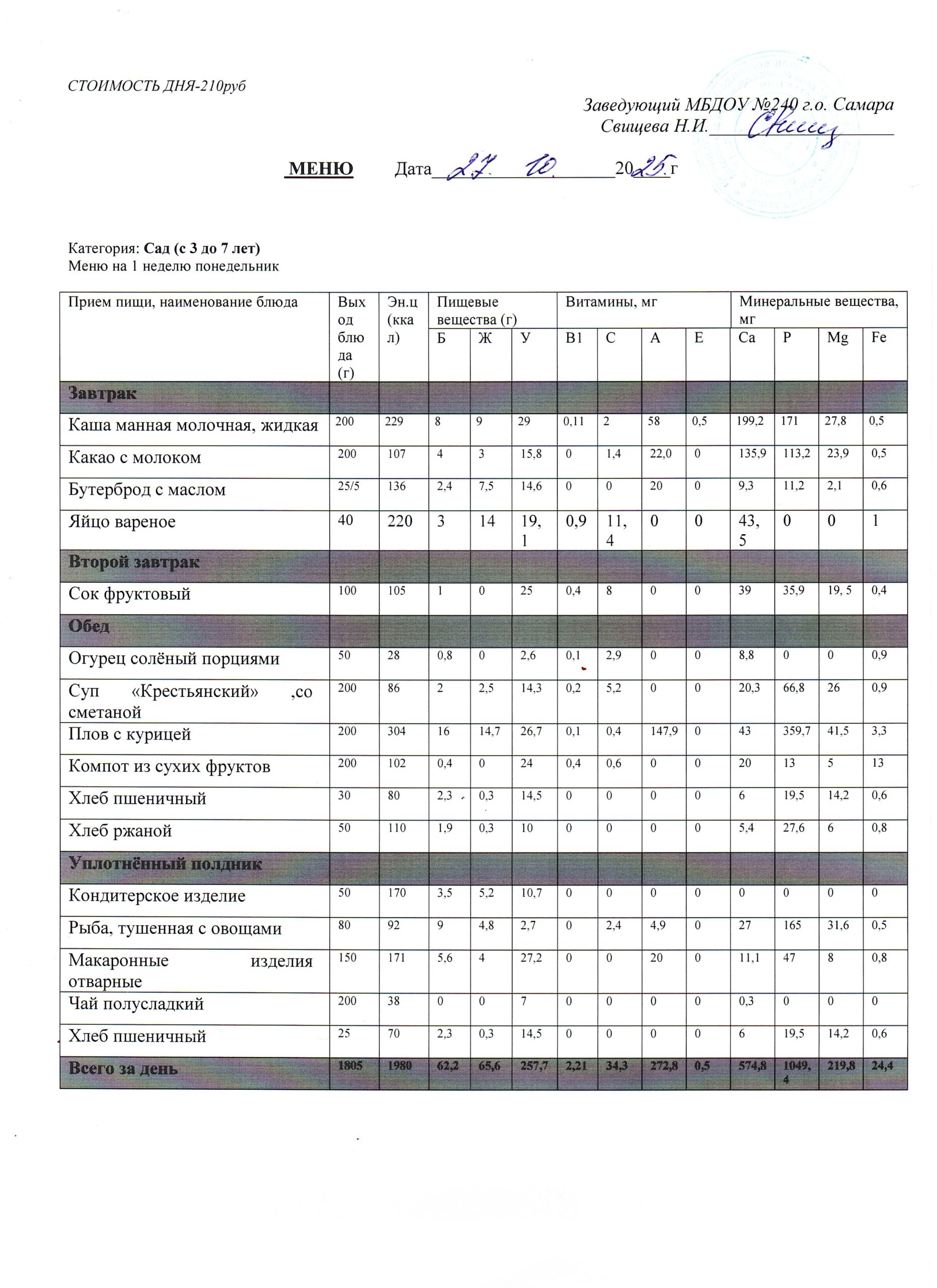 - Меню питания 17.10.2024г. (3-7 лет)