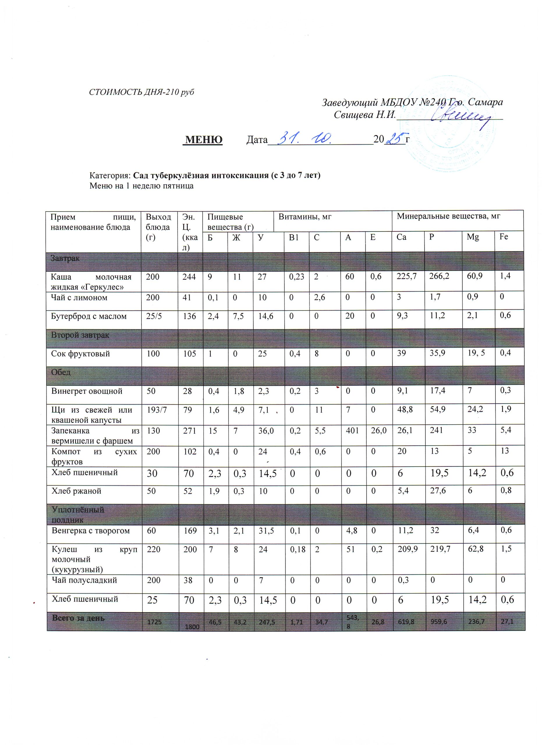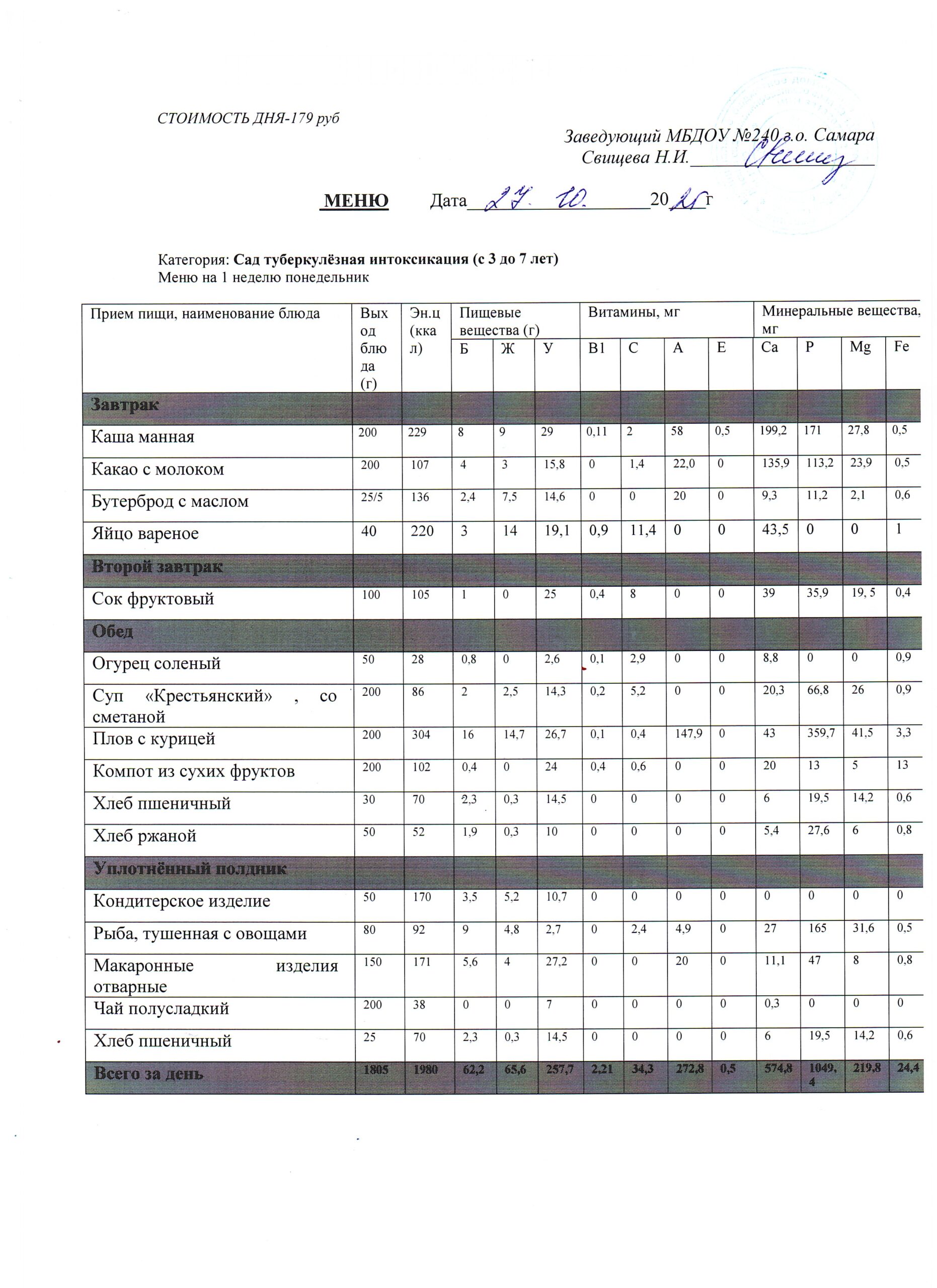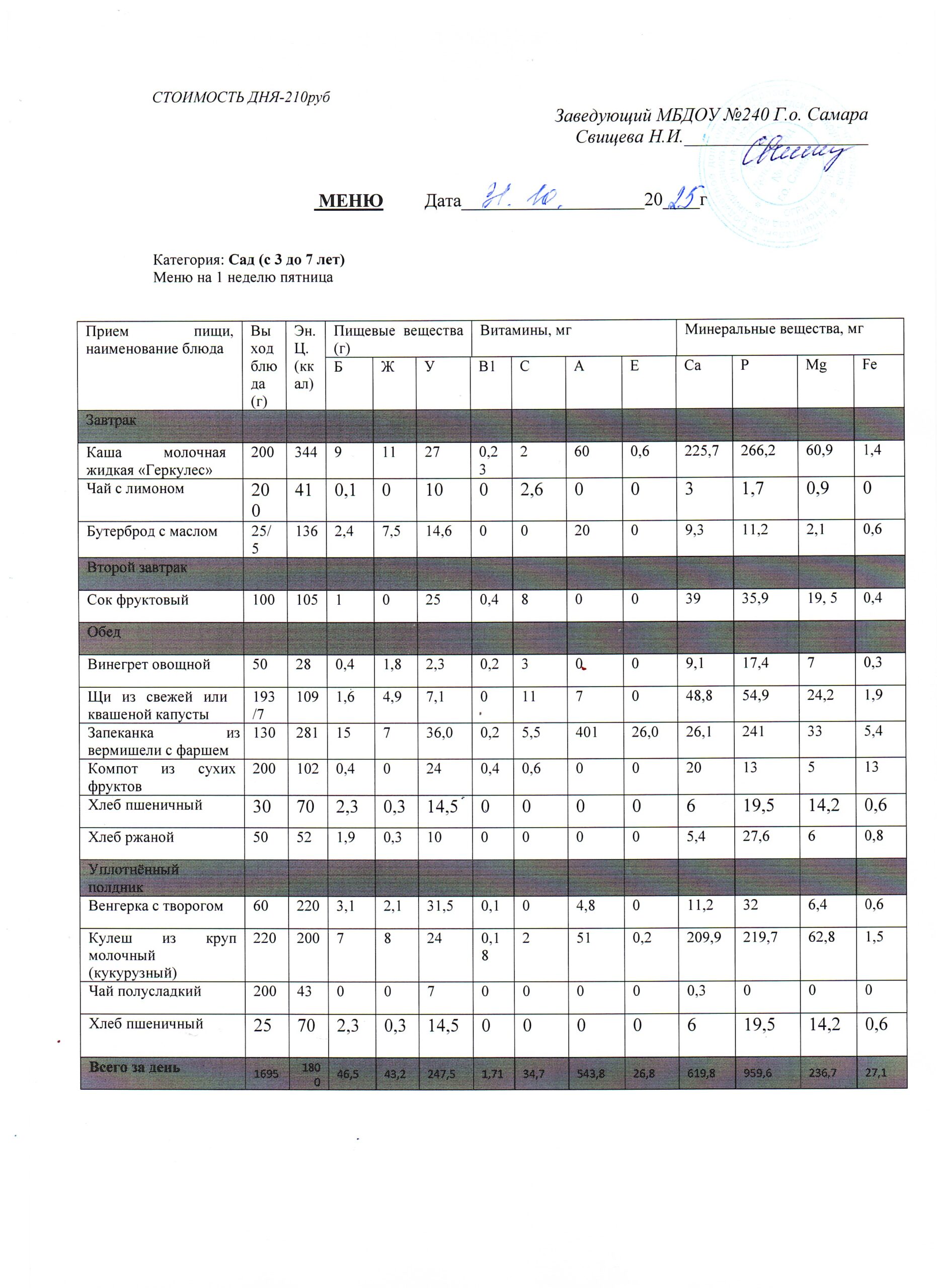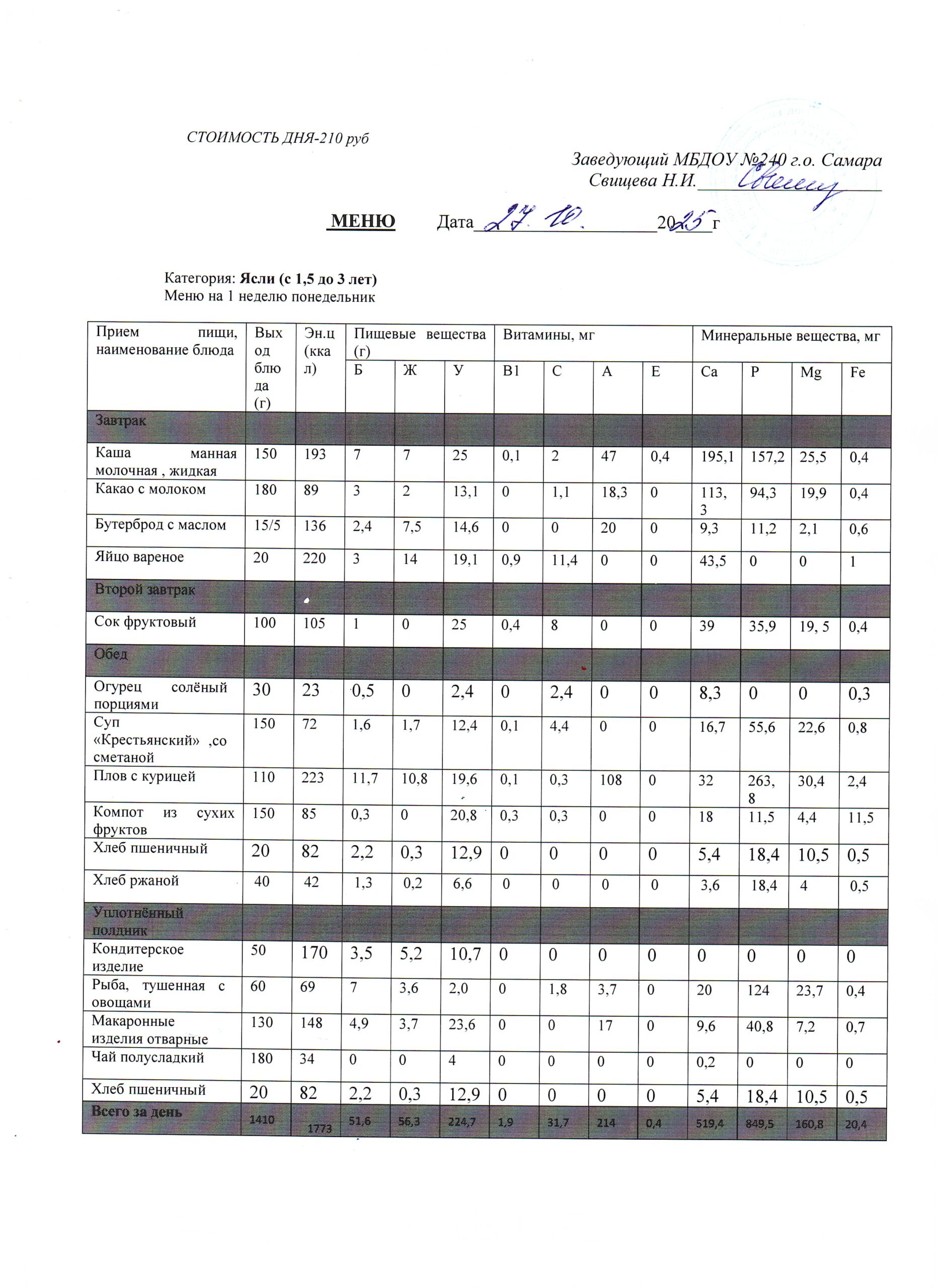 - Меню питания 17.10.2024г. (3-7 лет)