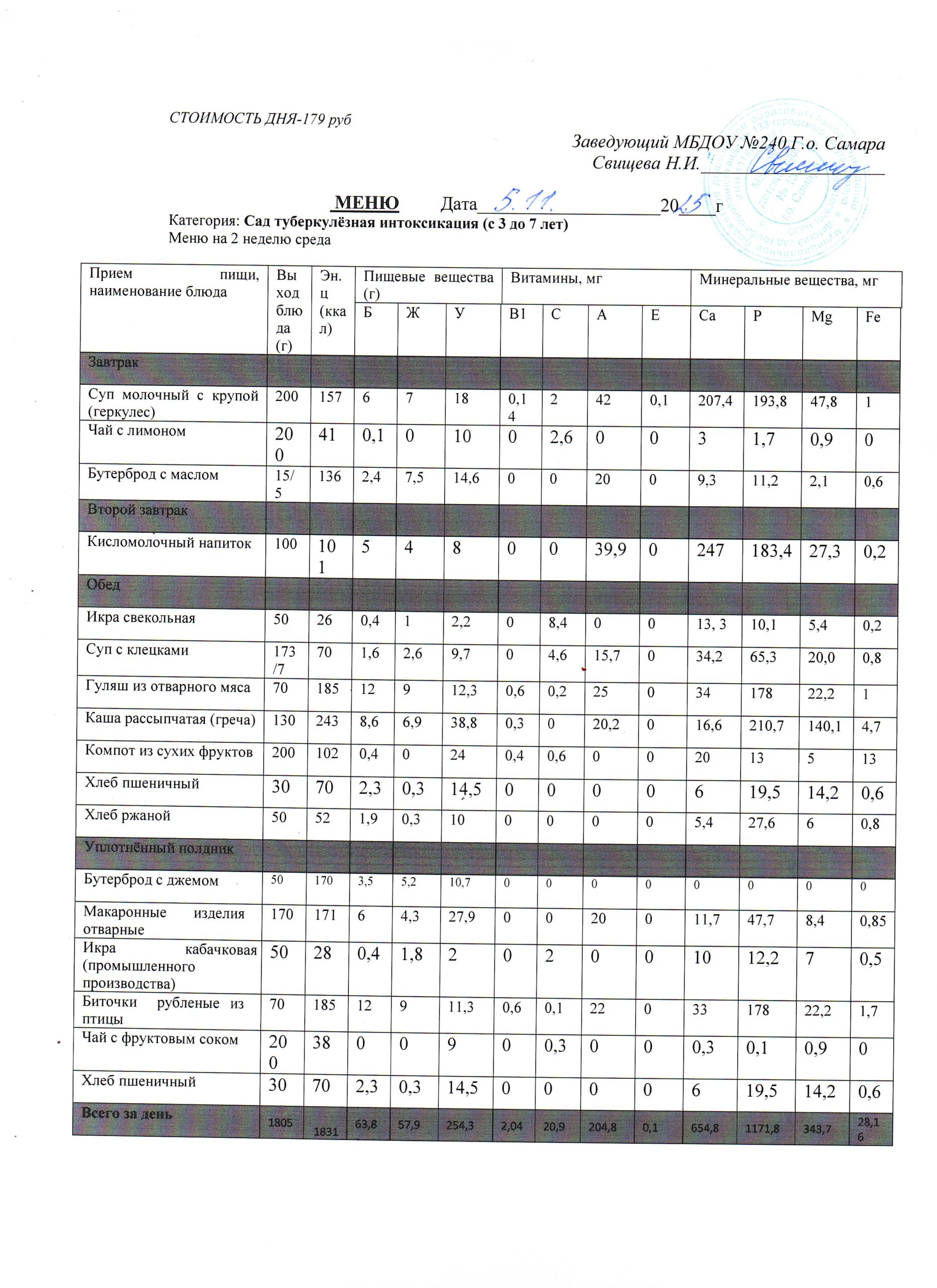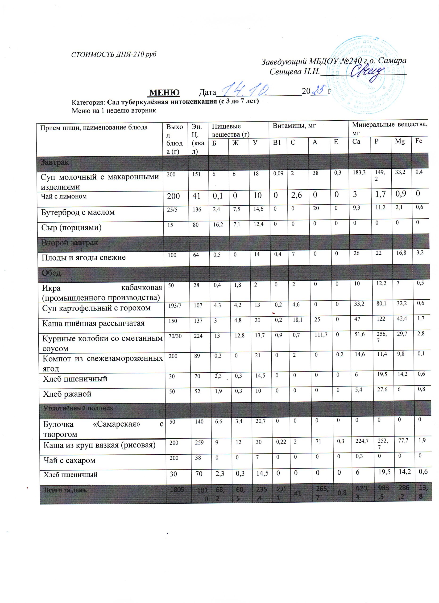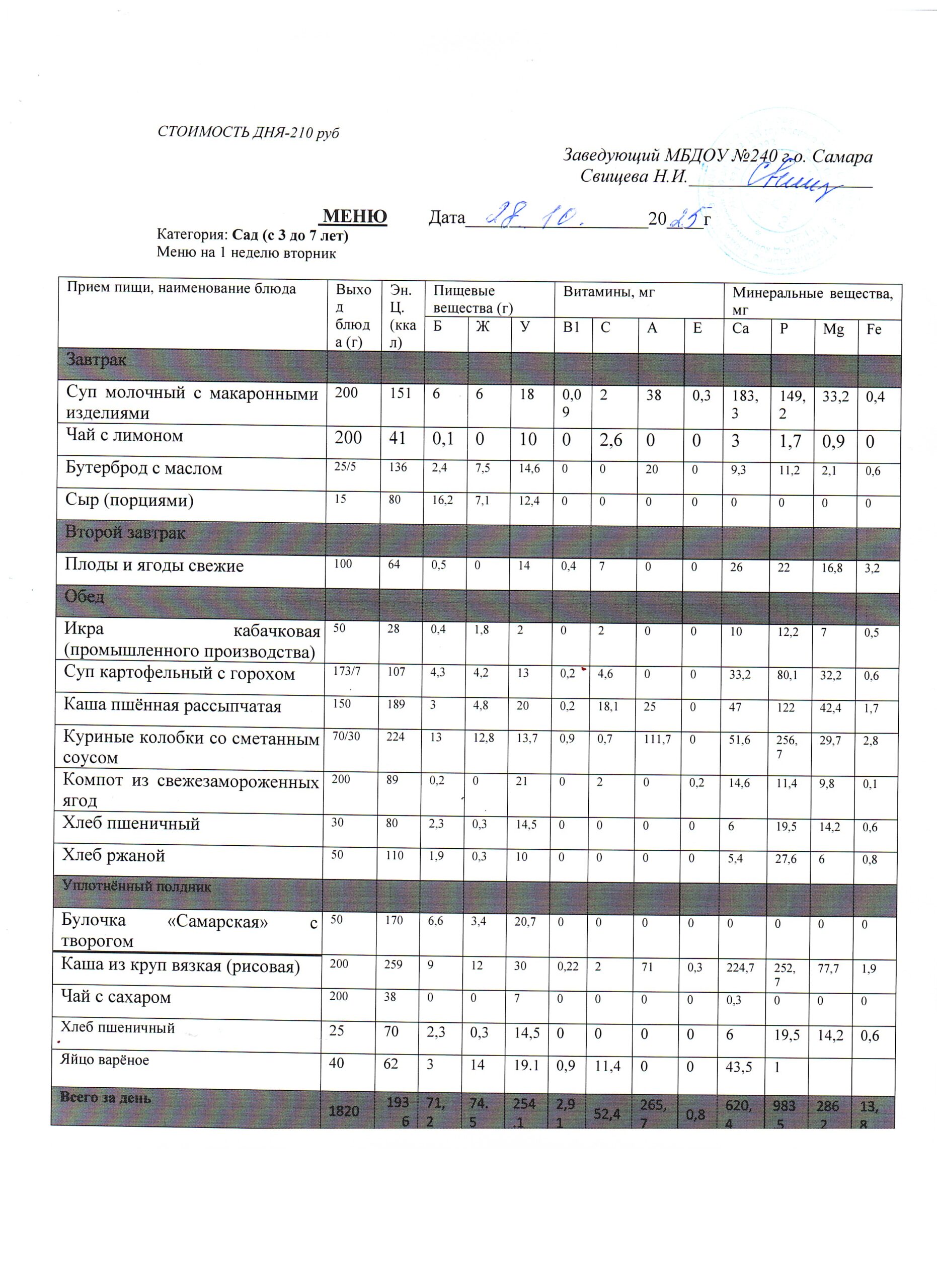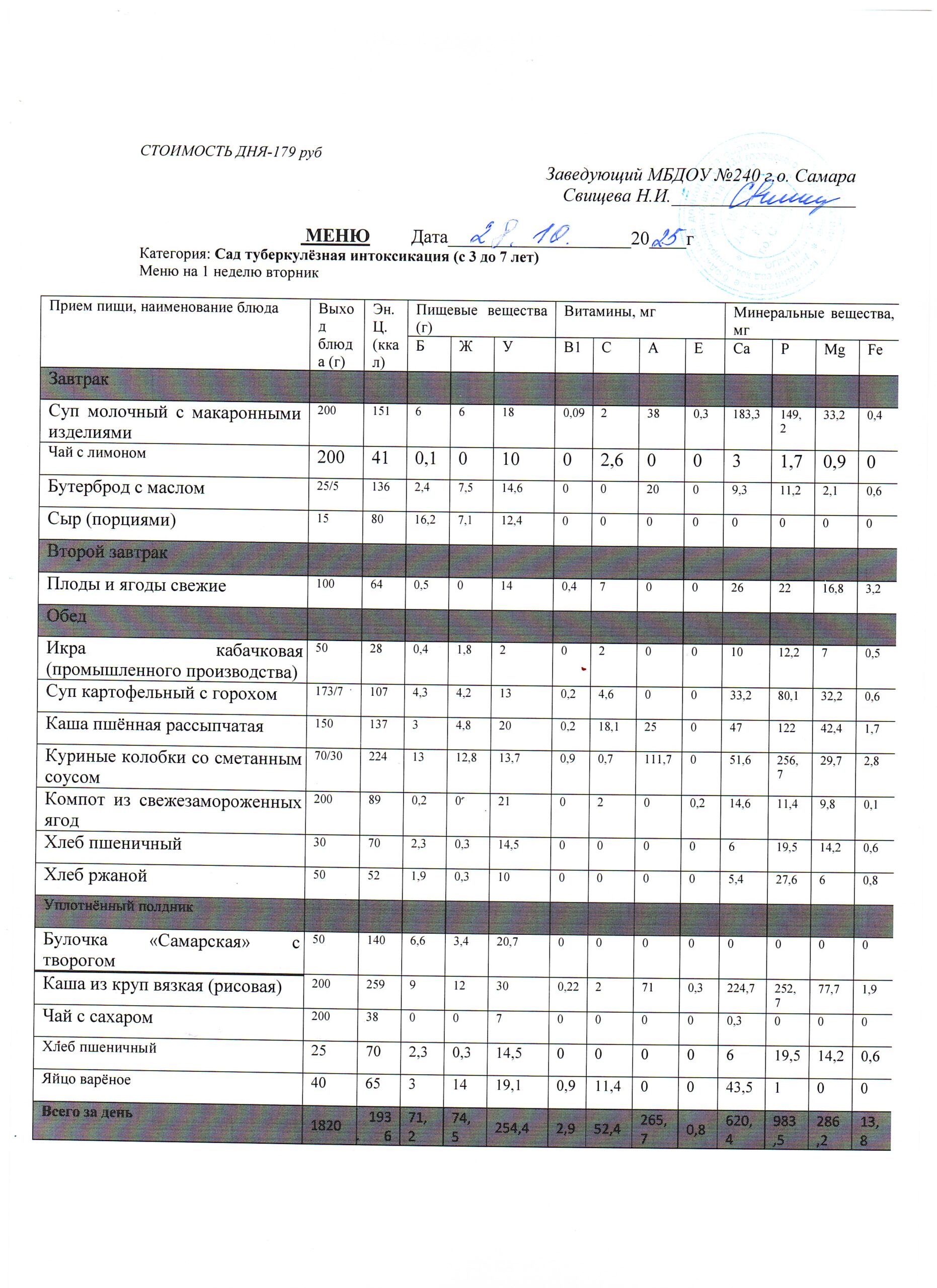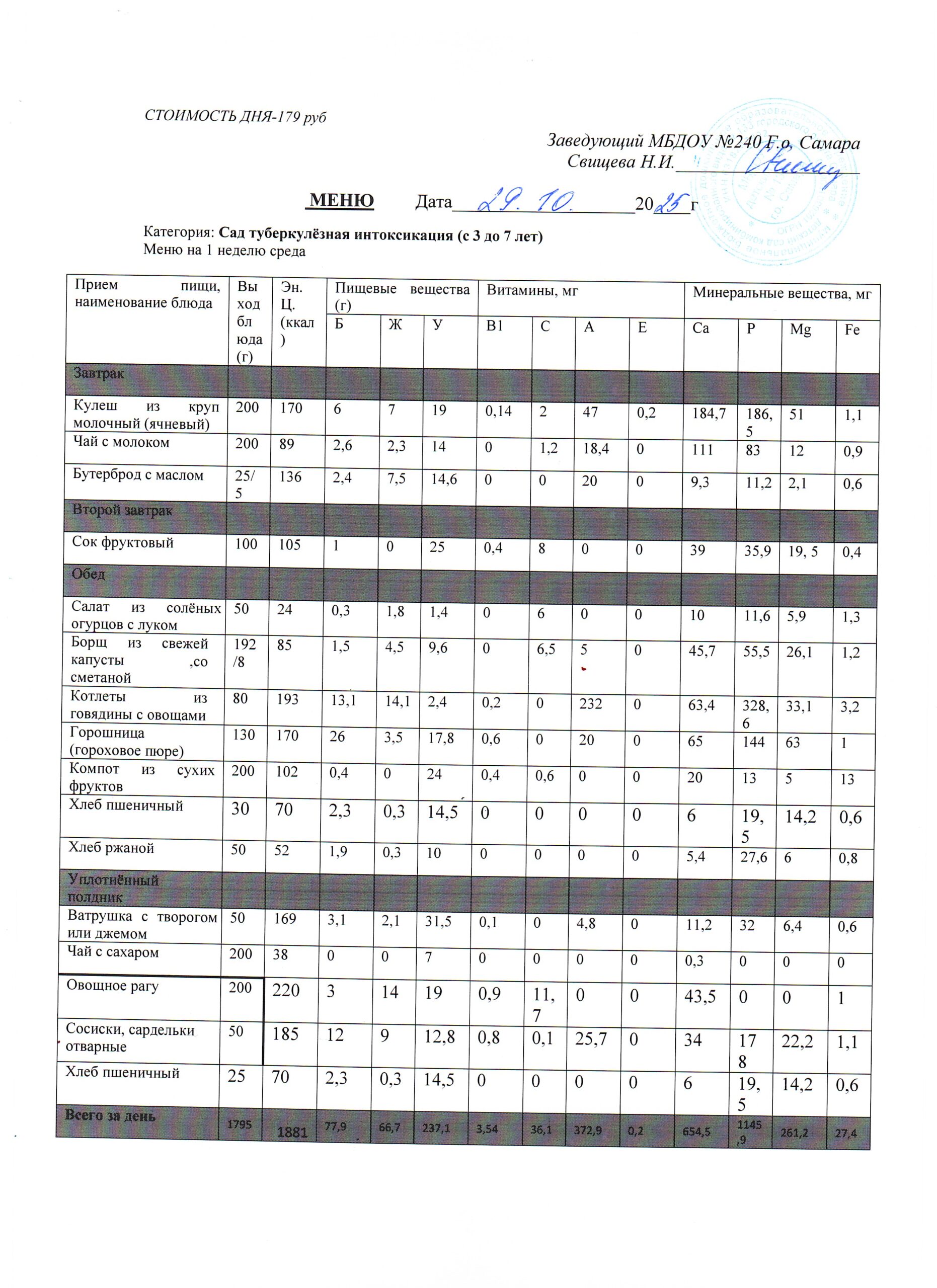 - Меню питания 17.10.2024г. (3-7 лет)