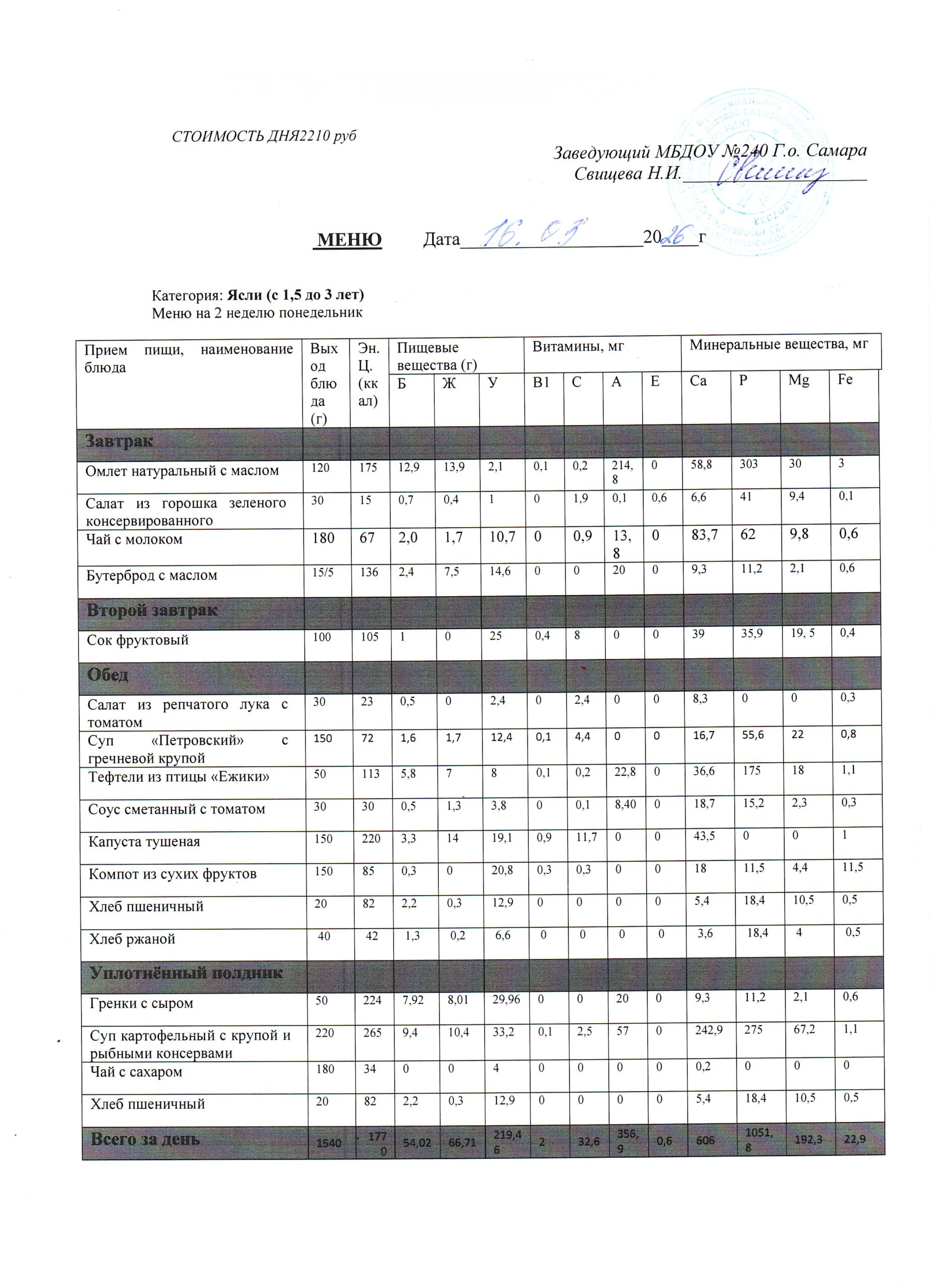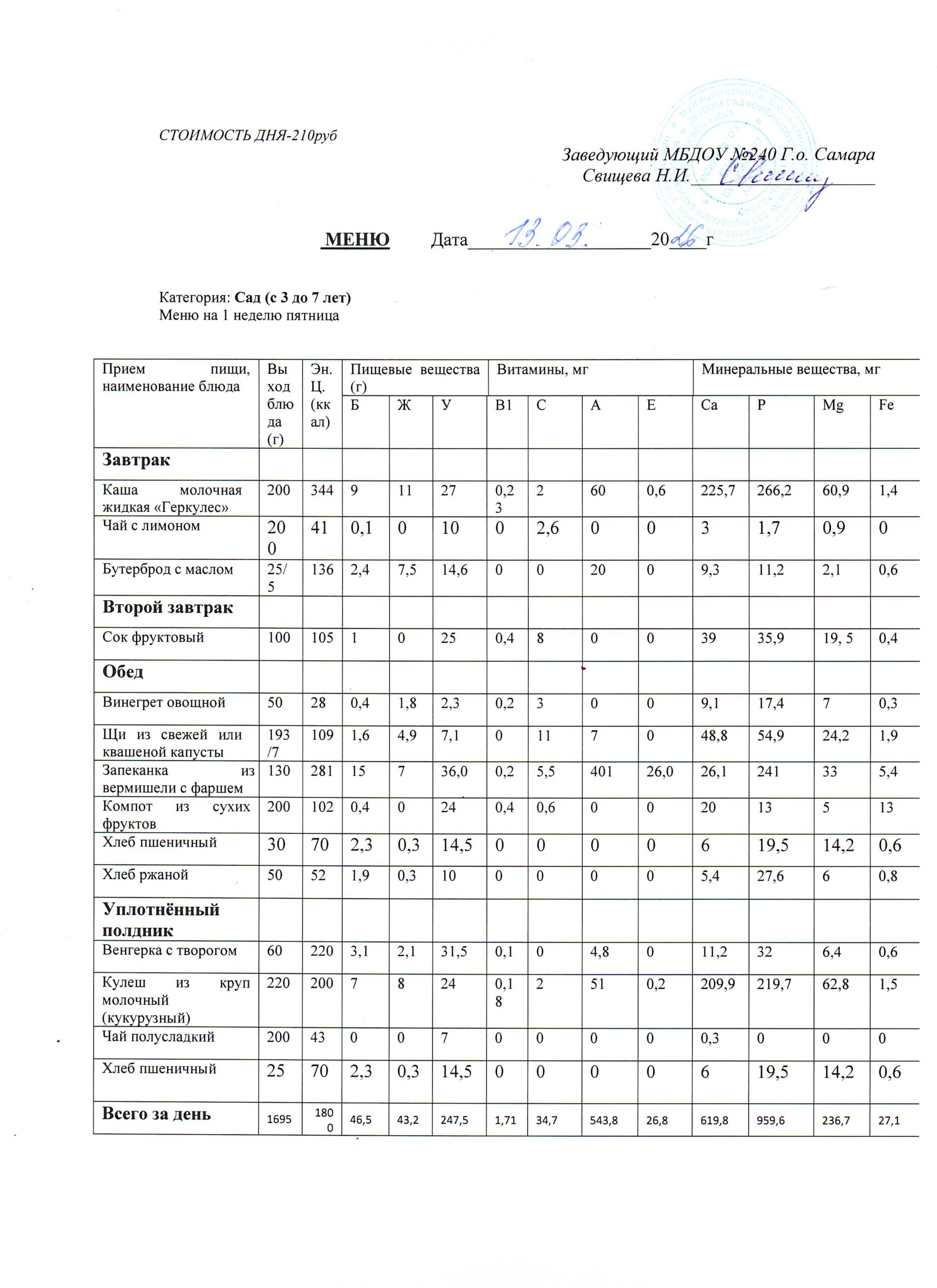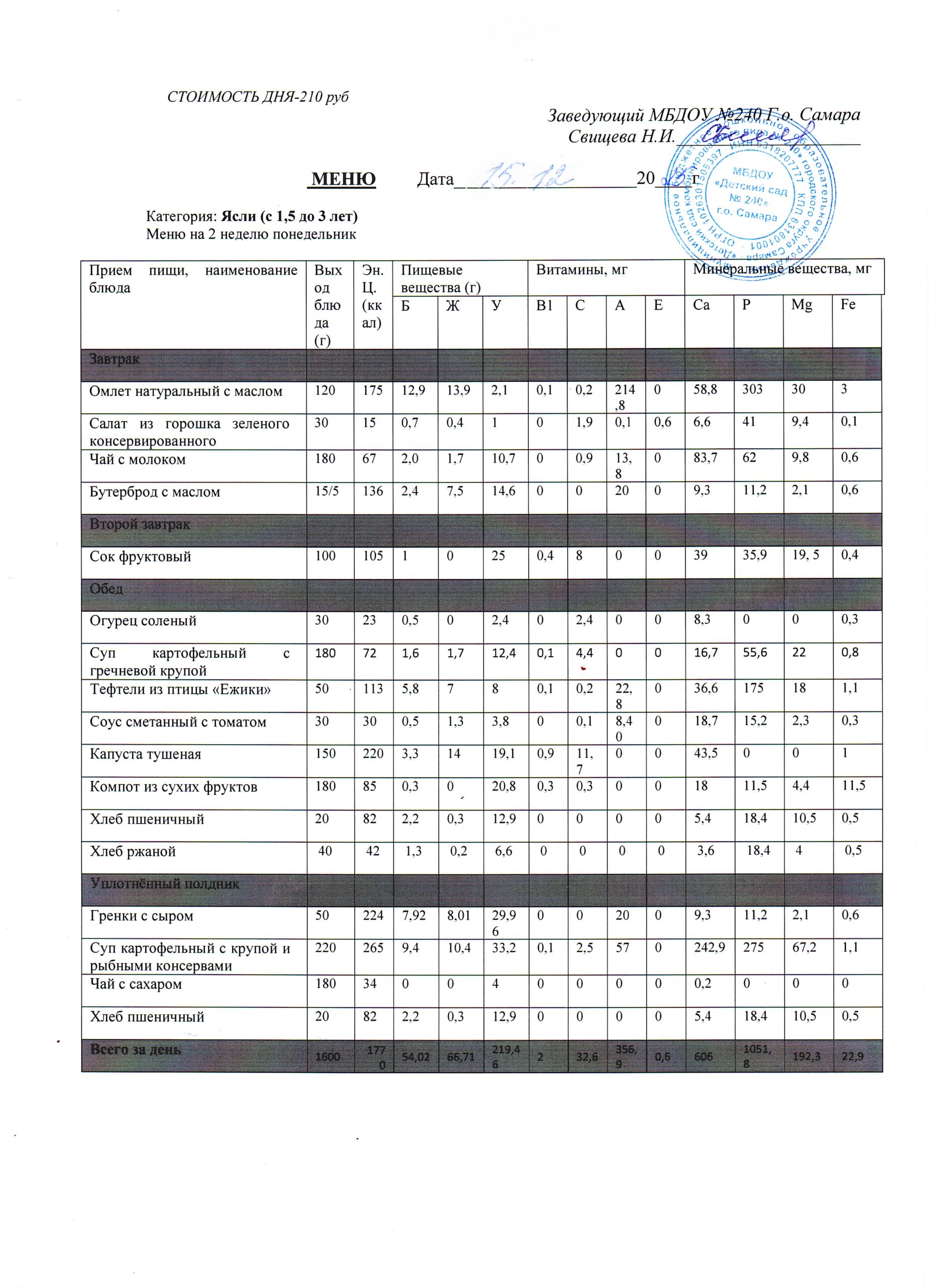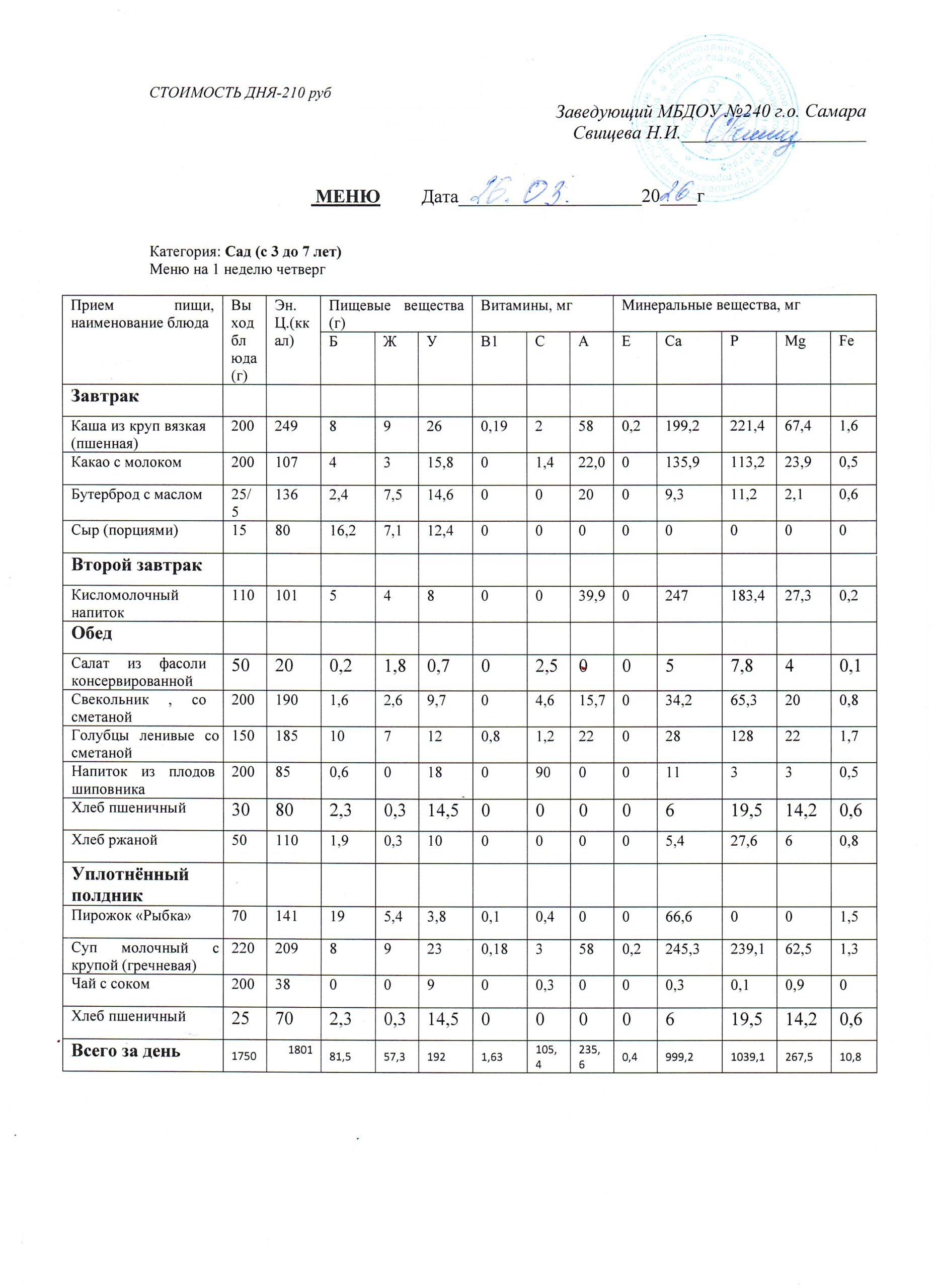 - Примерное цикличное меню (2-х недельное) весенне-летний сезон (3-7 лет)